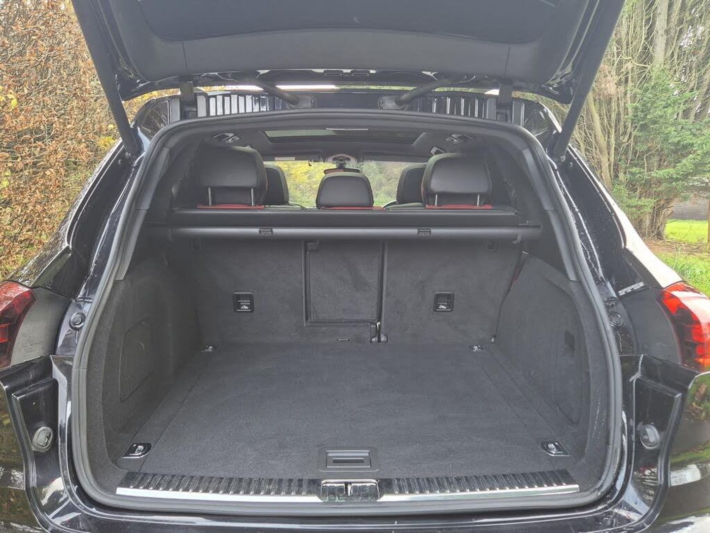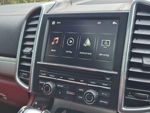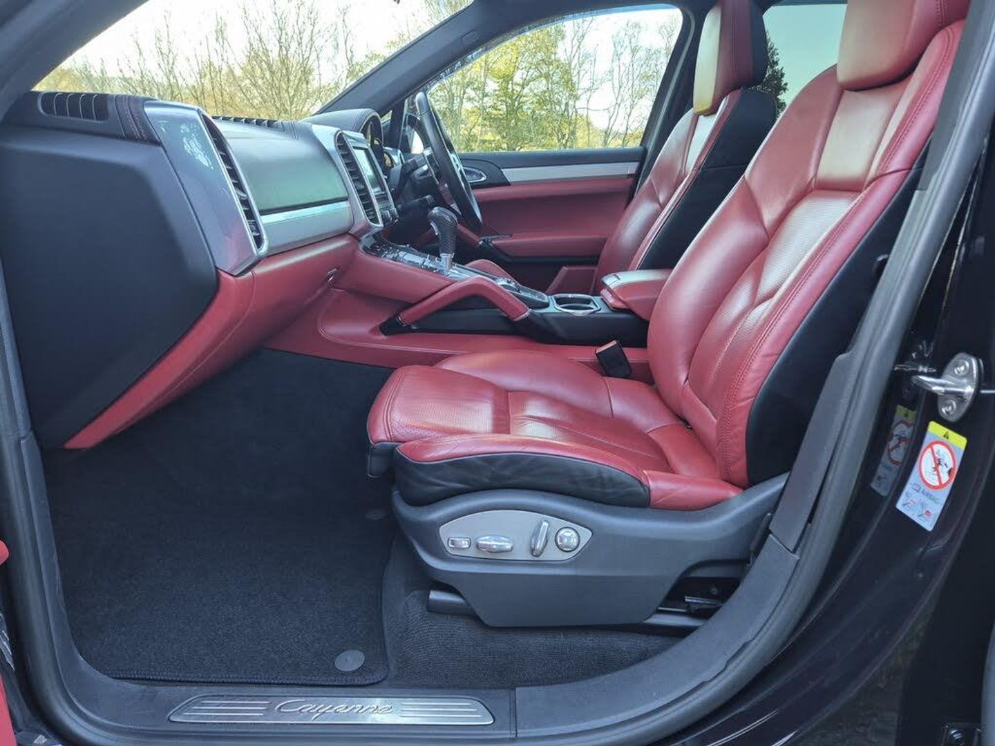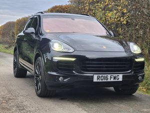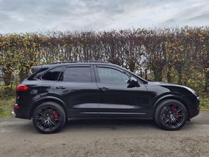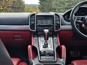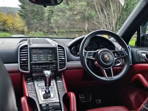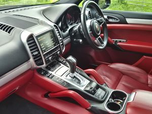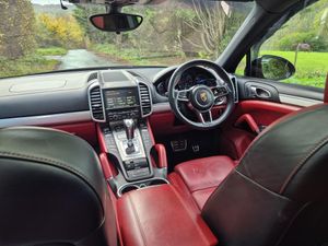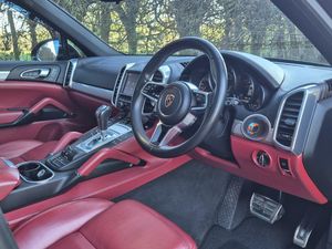 High specification Porsche Cayenne S, finished in Jet Black with smooth-finish two-tone Black and Garnet Red leather interior. Wireless Apple CarPlay and Android Auto fitted. Factory upgrades include BOSE Surround Sound System, 21 911 Turbo Design alloy wheels with wheel arch extensions, Panoramic Roof System, reversing camera, 14-way electrically adjustable seats with memory, privacy glazing, Sports Tailpipes, heated windscreen, Bi-Xenon headlights with Porsche Dynamic Light System (PDLS), heated front seats and heated steering wheel. Further features include PASM (Porsche Active Suspension Management), DAB digital radio, power tailgate, front and rear parking sensors, Bluetooth, and multi-function steering wheel. Supplied with full service history, 2 keys, and a new MOT through to November 2026.