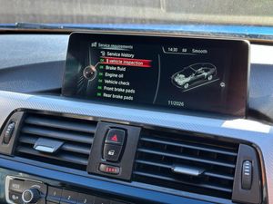 Gloss Black Body Enhancement Kit, 19in Fox BMA Diamond Cut Alloy Wheels, 12V Power Socket - Centre Console, 12V Power Socket - Passenger Footwell, 18in Alloy Wheels - M Double Spoke - 400M, 20GB Memory, ABS - Anti Lock Braking System, ASC - Automatic Stability Control, Air Breather - Black High Gloss, Air Conditioning - Automatic with Two-Zone Control, Air Conditioning and Radio Control Panel in High Gloss Black, Airbags - Driver, Airbags - Front ITS Head, Airbags - Front Side, Airbags - Passenger, Airbags - Passenger Deactivation, Airbags - Rear ITS Head, Alarm System Thatcham 1 with Remote Control, Ambient Lighting - Switchable BMW Classic Orange - Cold White - LED, Armrest - Front and Rear Integrated into Door Trim, Armrest - Front with Storage Compartment, Armrest - Rear Centre, Automatically Dimming Rear View Mirror, Auxiliary Input, BMW Apps Interface, BMW ConnectedDrive Online Services, BMW Emergency Call, BMW Professional Radio - Single CD and MP3, BMW Remote Services, BMW TeleServices, Battery Safety Cut Off, Bluetooth Hands Free with Audio Streaming, Bluetooth Hands Free with USB Audio Interface, Bottle Holders - Front Door Storage Compartments, Brake Assist, Brake Drying, Brake Pad Wear Indicator, Brake Pre-Tensioning, Bumpers - Body Colour, CBC - Cornering Brake Control, Central Locking - Remote, Central Locking Switch - Doors - Fuel Filler Cap - Luggage Compartment, Check Control Warning System, Child Seat ISOFIX Attachment - Rear, Concierge Service, Crash Sensor - Activating Central Locking-Hazard Warning Lights-Fuel Cut Off, Cruise Control with Brake Function, Cup Holders - Front x2, Cup Holders - Rear x2, DAB - Digital Radio, DBC - Dynamic Brake Control, DSC - Dynamic Stability Control Plus, DTC - Dynamic Traction Control, Daytime Running Lights, Display - 8.8in Colour Screen, Door Handles - Body Colour, Door Mirrors - Body Coloured, Door Mirrors - Electric and Heated, Door Mirrors - Integrated Indicator Side Repeaters, Door Sill Finishers - M Designation, Drive Performance Control - ECO PRO - Comfort - Sport and Sport Plus, Dynamic Brake Lights, Electric Windows - Front Open and Close Fingertip Control, Electronic Differential Lock, Electronic Engine Immobiliser, Exhaust Tailpipes - Dual Left - with Chrome Finisher, Extended Lighting, Exterior Trim - High Gloss Shadowline, First Aid Kit, Floor Mats - Velour, Follow Me Home Headlight Function, Front Fog Lights, Full Black Panel Display, Glove Box Opener with Chrome Trim, Glove Compartment, Handbrake - Leather, Head Restraints - Front and Rear, Headlight Wash, Headlights - Automatic Activation, Headlights - Beam Throw Control, Headlights - LED Eyebrow, Headlining - M Anthracite, Heat Protection Glazing with Green Tint, Heated Windscreen Washer Jets, High Level Third Brake Light, Hill Start Assistant, Illuminated LED Corona Rings, Incorrect Fuelling Protection System, Indicator Lenses - Clear, Interior Lighting - Front and Rear Centre, Interior Trim - Aluminium Hexagon Trim Finishers with Estoril Blue Matt Highlight, Key - Button for Opening Luggage Compartment, Kidney Grille - Chrome with Extra Wide Black - High Gloss Vertical Slats, LED Tail Lights, Launch Control, Lights-on Audio Warning, Luggage Compartment - Lashing Eyes, Luggage Compartment - Light, M Aerodynamic Bodystyling, M Sport Instrument Cluster, M Sport Package, Media Package - BMW Professional, Multifunction Controls for Steering Wheel, Navigation System - BMW Professional Multimedia, Non Smokers Package, OBC - On Board Computer, Oil Sensor For Level and Grade - Warning by Check Control System, Optimum Shift Indicator, Outside Temperature Display, PDC - Park Distance Control - Front, PDC - Park Distance Control - Front and Rear, PDC - Park Distance Control - Rear, Personal Profile, Quick Shift, Rain Sensor, Reading Lights - Front - LED, Real Time Traffic Information, Rear Fog Light, Remote Control with Integrated Key with Insert in Blue, Roof Mouldings - Body Colour, Run Flat Tyres, Seats - Front Electric Adjustment with Driver Memory, Seats - Front Heated, Seats - Front Sports, Seats - Split Rear 60-40, Servotronic Steering, Shark Fin Aerial, Side Exterior M Designation Badges, Side Impact Protection, Speakers x6, Sport Automatic Transmission, Start-Stop Button with Comfort Go Keyless Engine Start, Steering Column - Reach and Rake Manual Adjustment, Steering Wheel - Gearshift Paddles, Steering Wheel - Leather - M Sport, Storage Compartment in Rear Centre Console, Sun Visors with Illuminated Vanity Mirrors and Ticket Holder, TMC - Traffic Information, TPMS - Tyre Pressure Monitoring System, Tool Kit Located in Luggage Compartment, Tyres - Reduced Rolling Resistance, USB Connection, Warning Triangle, Welcome Light, Windscreen Wipers - Two-Speed with Adjustable Intervals, Windscreen with Grey Shade Band, Xenon Headlights, iDrive Controller - 8 Favourite Buttons, Dakota Leather - Black with Black Interior, Enhanced Bluetooth Telephone Preparation with USB Audio Interface and Voice Control, Estoril Blue