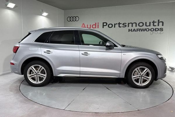 QUATTRO ON DEMAND, S LINE SPORT SUSPENSION, SATELLITE NAVIGATION, REAR PARKING CAMERA, MULTI FUNCTION STEERING WHEEL, HILL HOLD ASSIST, CRUISE CONTROL, AUDI VIRTUAL COCKPIT, LANE DEPARTURE WARNING, APPLE CARPLAY, ANDROID AUTO, DAB RADIO, TINTED WINDOWS - PRIVACY GLASS, FRONT AND REAR PARKING SENSORS, SPLIT FOLDING REAR SEATS, LIGHT & RAIN SENSOR, AUTO DIMMING REAR VIEW MIRROR, SELECTABLE DRIVING MODES, PUSH BUTTON START, FLORET SILVER METALLIC WITH LEATHER/ALCANTARA UPHOLSTERY, 19'' ALLOY WHEELS, DUAL ZONE CLIMATE CONTROL, HEATED FRONT SEATS WITH LUMBAR SUPPORT, MATRIX LED HEADLIGHTS WITH DYNAMIC REAR INDICATORS, VOICE ACTIVATED CONTROLS AND MUCH MORE.All Audi Approved used cars are offered with a 12-month warranty and roadside assistance.Portsmouth Audi are delighted to offer this Audi Q5 in Floret silver over Alcantara/ Leather and has completed just 14623 miles., We are proud to be part of the Harwoods group, a family run business established in 1931. With four Approved Audi retailers within our group, we have access to over 400 vehicles. If this isn't the right car for you, please contact us and we will find it. Our group stock has spec to include Sunroof, Leather, Heated Seats, Apple Car Play, Heated Steering Wheel, Reverse Camera, Rear Entertainment, Towbar, 360-degree camera, Comfort & Sound Pack, Tech Pack, Panoramic Sun Roof, Tow Bar, Black Pack, Air Suspension, Apple Carplay, Adaptive Cruise, Massage Seats, Refrigerator, AWD, Technology Pack, Head up Display, Vorsprung, Technik, Black Edition, S-Line, S Line, Edition 1, TFSI, Quattro, Sportback, LWB. Other colour options including Black, Blue, Green, Silver, White, Red, Grey, Yellow, Orange. Interior options of Ebony, Black, Ivory, White, Tan, Cream, Oyster, & Euro 6 ULEZ compliant drive trains.-VIRTUAL COCKPIT , SAT NAV-Video Presentation available on Request