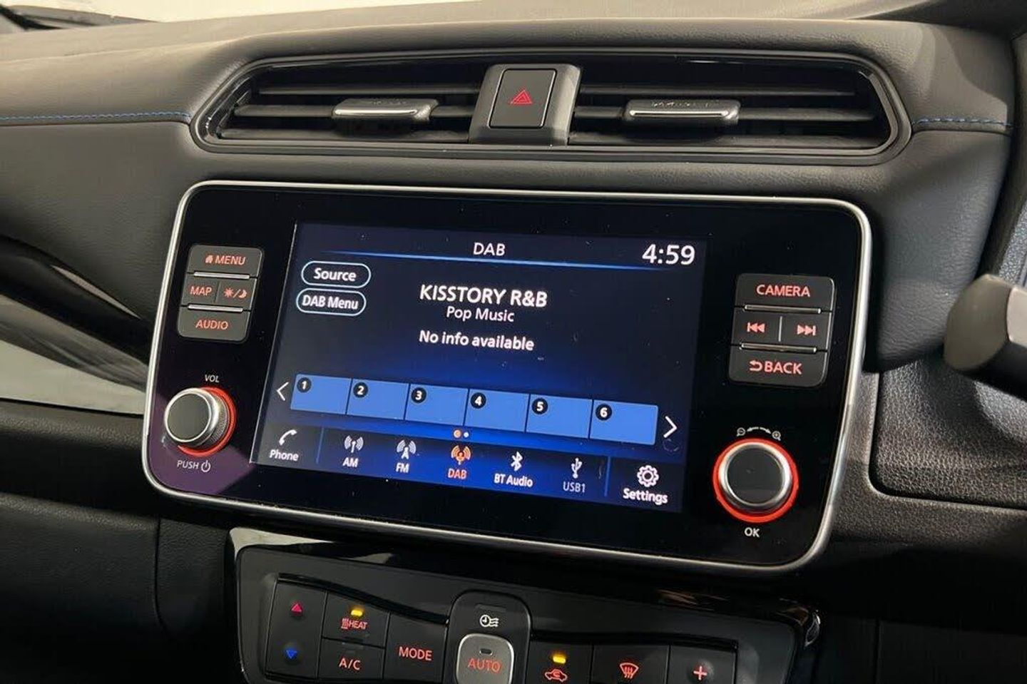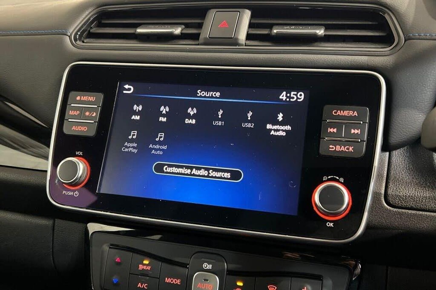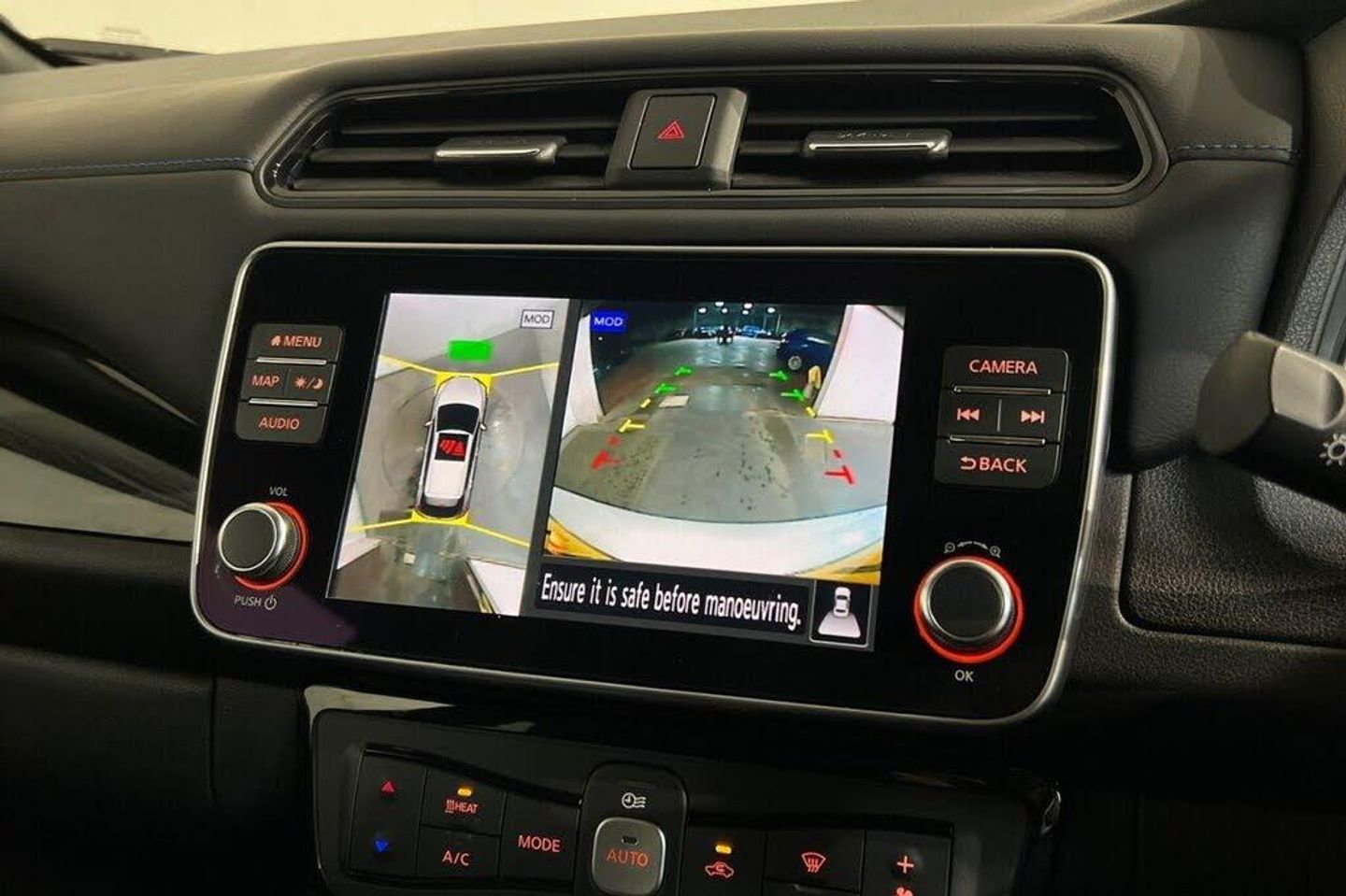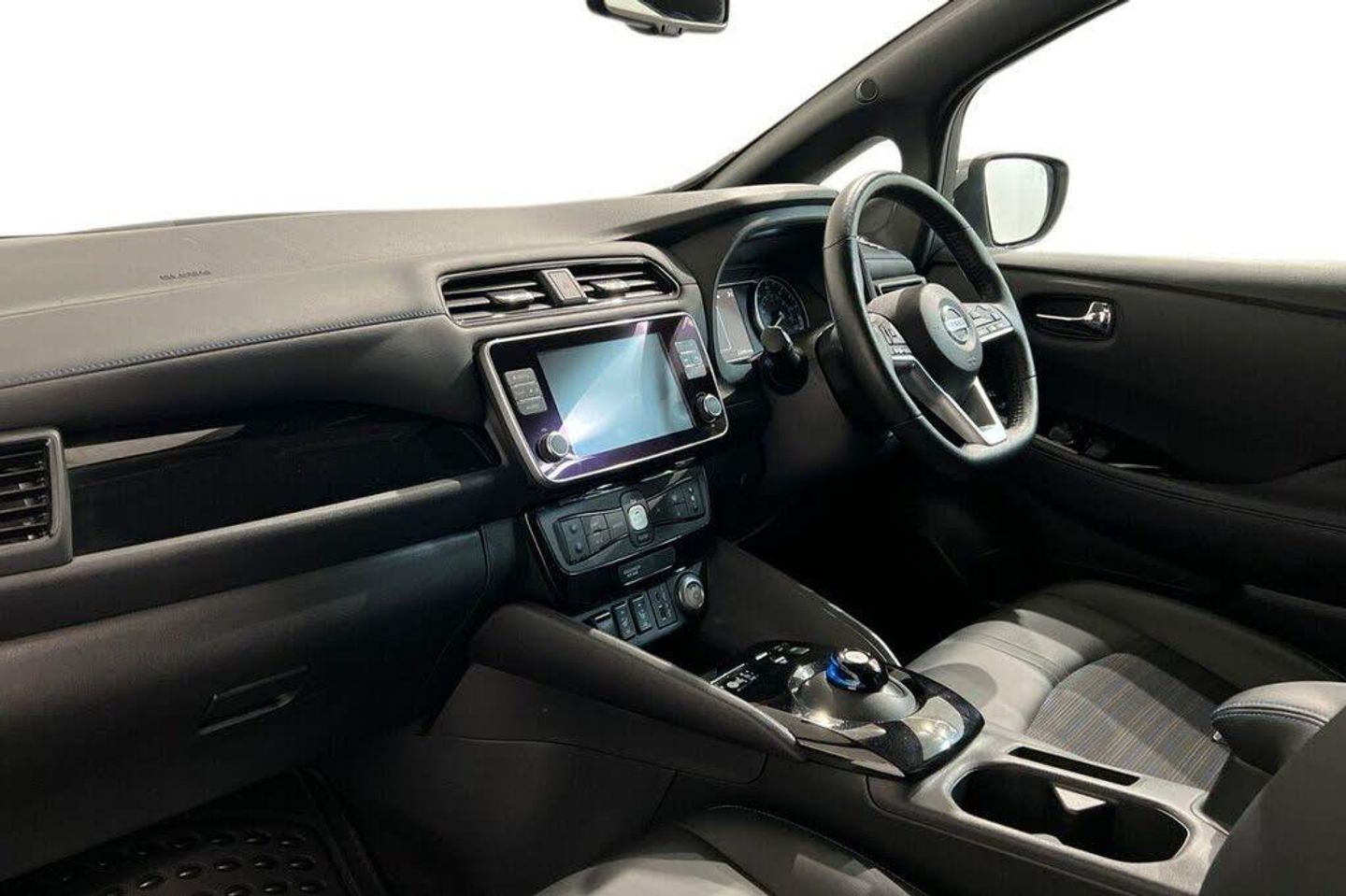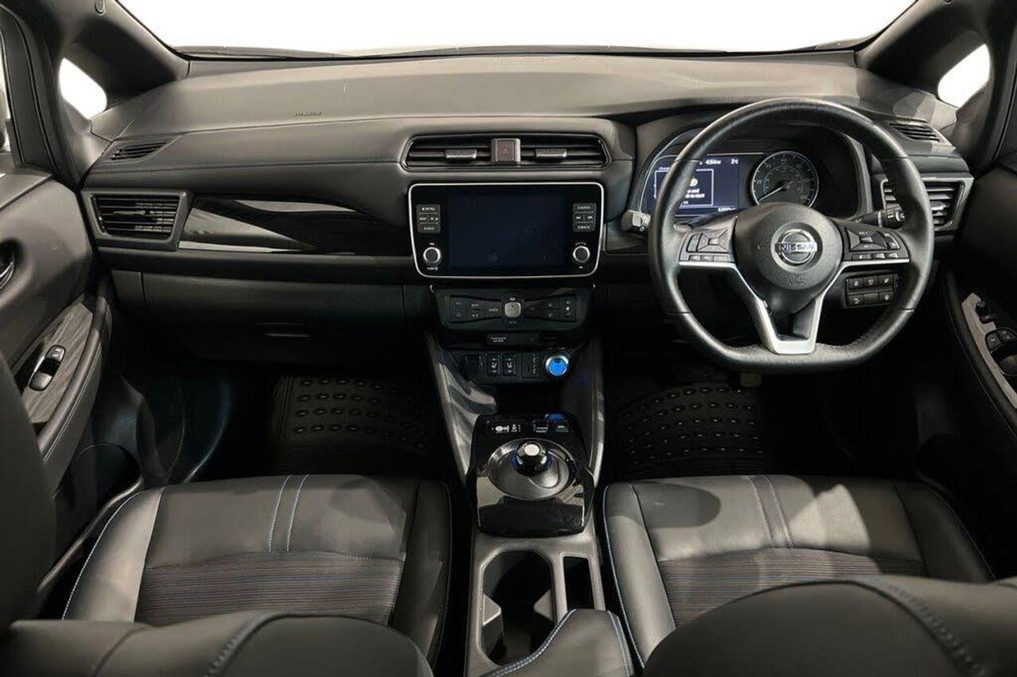 12V Socket, 17in Alloy Wheels, 50kW CHAdeMO Quick Charger, 6 Airbags, 6.6kW AC On Board Charger, 7in Combimeter, Alarm - Thatcham, Anti Lock Braking System - ABS, Audio System with 6 Speakers, Auto Dimming Rear View Mirror, Auto Hazard Lights, Automatic Air Conditioning, Blade Silver, Blind Spot Intervention, Blind Spot Warning, Body Coloured Door Mirrors, DAB Radio with Apple CarPlay and Android Auto, Door Handles - Chrome, E-Pedal, Electric Folding Door Mirrors, Electric Power Steering, EV Connect Telematics System, EVSE 6M or Mode 3 - 6M, Front and Rear Electric Windows, Front Fog Lights, Front Seat Back Pockets, Gloss Black B-pillar, Halogen Headlamps with LED Signature, Headlights - Follow Me Home Function, Headlights - High Beam Assist, Heat Pack, Heat Pump, Hill Start Assist, Illuminated Charge Port, Integrated Turn Signals in Mirrors, Intelligent Auto Headlights, Intelligent Cruise Control, Intelligent Emergency Braking with Pedestrian Recognition, Intelligent Lane Intervention, Intelligent Trace Control, ISOFIX Child Seat Anchoring Points - Front and Rear, Lane Departure Warning, Leather Steering Wheel, LED Signature Tail Lights, Manually Adjustable Drivers Seat - Slide - Recline and Lifter, Manually Adjustable Passenger Seat - Slide and Recline, Metallic Blue Rear Bumper Accents, Nissan Connect EV 8in Touchscreen Navigation and Entertainment System, Nissan i-Key and Start Push Button, Rain Sensing Windscreen Wipers, Rear Cross Traffic Alert, Rear Privacy Glass, Shark Fin Antenna, Speed Limiter, Steering Column - Rake and Reach, Synthetic Leather-Cloth - Black, Tech Pack, Tyre Puncture Repair Kit, USB Port