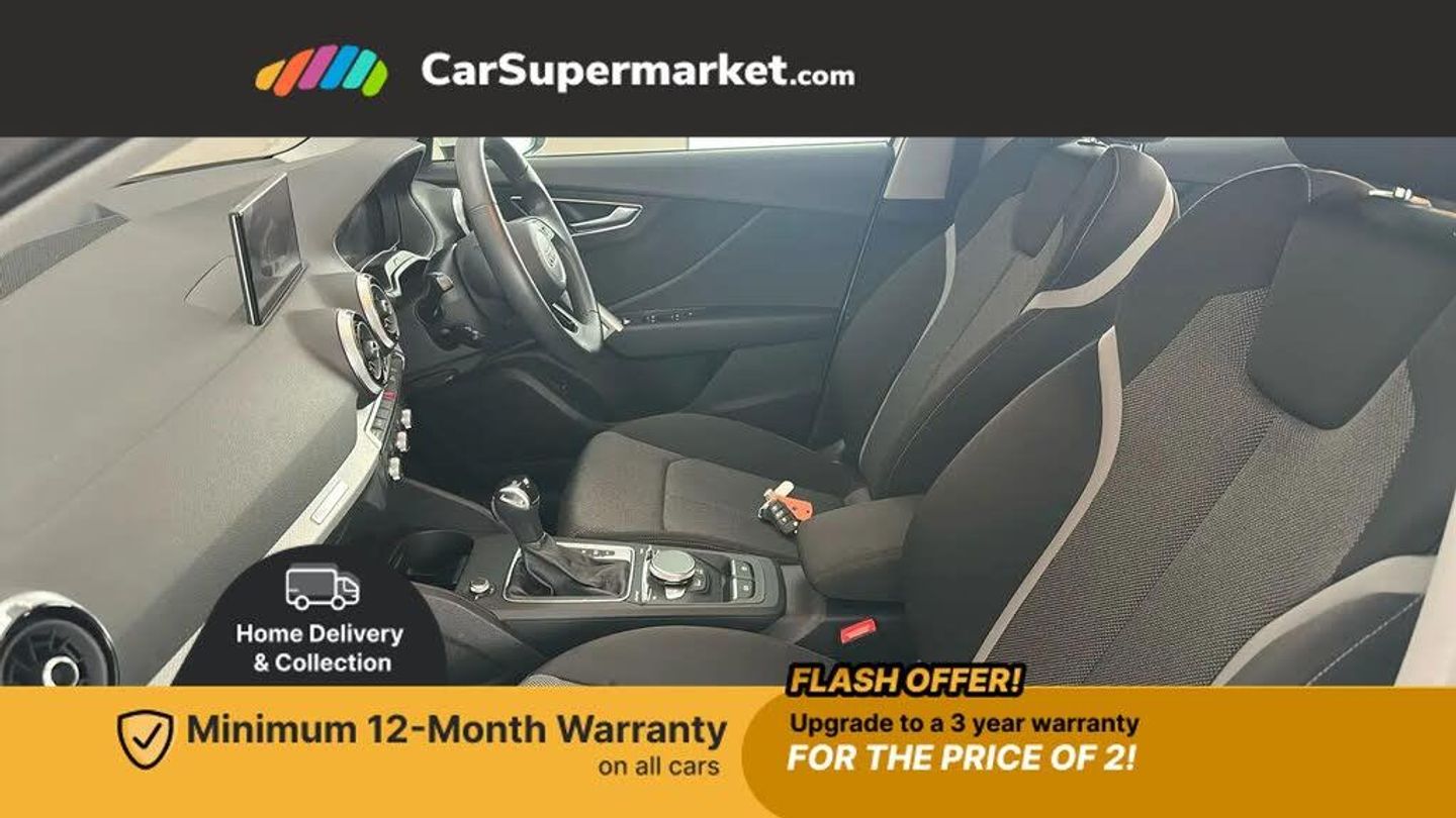 Sat Nav, Apple CarPlay/Android Auto, Audi Virtual Cockpit, Bluetooth, Cruise Control, Parking Sensors, Digital Radio;This 2023 Audi Q2 TFSI Sport boasts a clear vehicle history and a recent service in November 2025 at 25,917 miles, with its MOT valid until February 2026. Inside, you'll find the Audi Smartphone Interface, seamlessly integrating your Android Auto or Apple CarPlay for easy access to your favourite apps. Comfort is assured with manual air conditioning, and parking is made simpler with rear parking sensors.