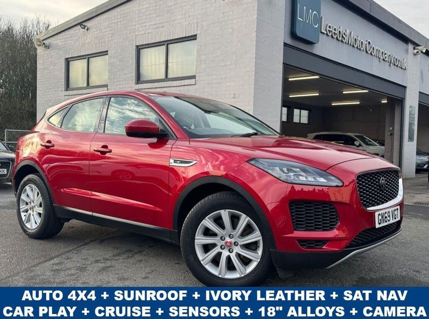 **CURRENT PLATE HJ04 SUZ** PRIVATE PLATE CAN BE RETAINED OR RELINQUISHED. Boasting a Comprehensive service history and an MOT valid until NOV 2026, this 2019 Firenze Red Jaguar E PACE P200 represents a superb example of this versatile SUV. Powered by a 2.0L Euro 6 Petrol engine and featuring a four wheel drive drivetrain, this model offers a robust towing weight of 2400 kg. With only 49,000 miles on the clock, this vehicle is exceptionally low mileage for its age and comes with a clear vehicle history check. The trim level enhances the driving experience with desirable features such as 18in Alloy Wheels, panoramic glass sunroof with the sunblind, a comprehensive Park Pack including front and rear parking sensors, and camera system for effortless manoeuvring. This Jaguar E Pace is designed to impress, with its impressive 0-60mph acceleration time of just 6.8 seconds indicating a more responsive performance compared to many similar vehicles. Further elevating its appeal is the Touch Pro Navigation Pack, Oyster leather interior with electric seats, Parking sensors, cruise control, Apple Car Play, Electric Tailgate and much much more. This combination of strong provenance, excellent condition, and premium features makes this F PACE a compelling choice for those seeking a capable and luxurious SUV. FAMILY RUN BUSINESS FOR OVER 30 YEARS -- OVER 150 CARS ACROSS 3 SITES 1/2 MILE APART -- £2000 TO £20,000 STOCK -- ALL OUR CARS COME PDI SERVICED AND MECHANICALLY INSPECTED BY OUR WORKSHOP -- FREE WARRANTY AND 1 YEAR AA BREAKDOWN COVER -- HOME DELIVERY -- ALL CARS HPI CLEAR -- COMPETITIVE PRICE FOR ANY PART EXCHANGE -- LOW RATE FINANCE AVAILABLE -- £99 ADMIN FEE -- RESERVE YOUR CAR TODAY -- VISIT LEEDSMOTORCOMPANY.CO.UK