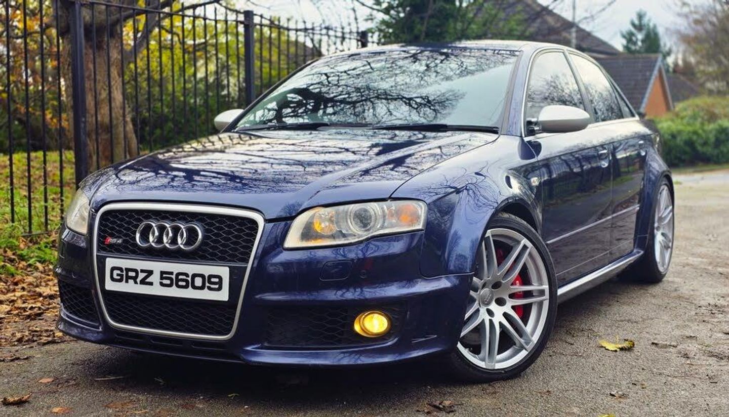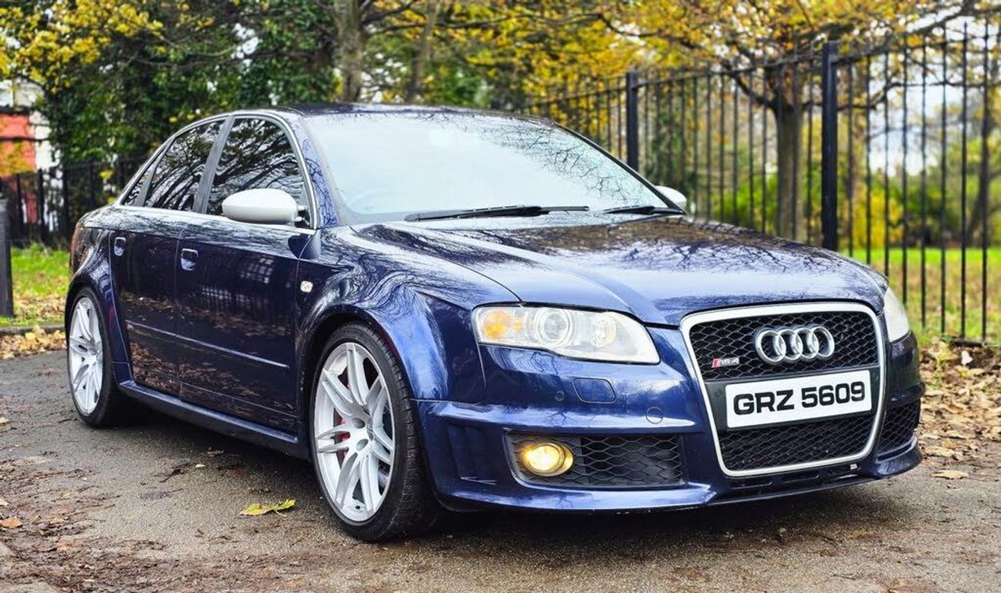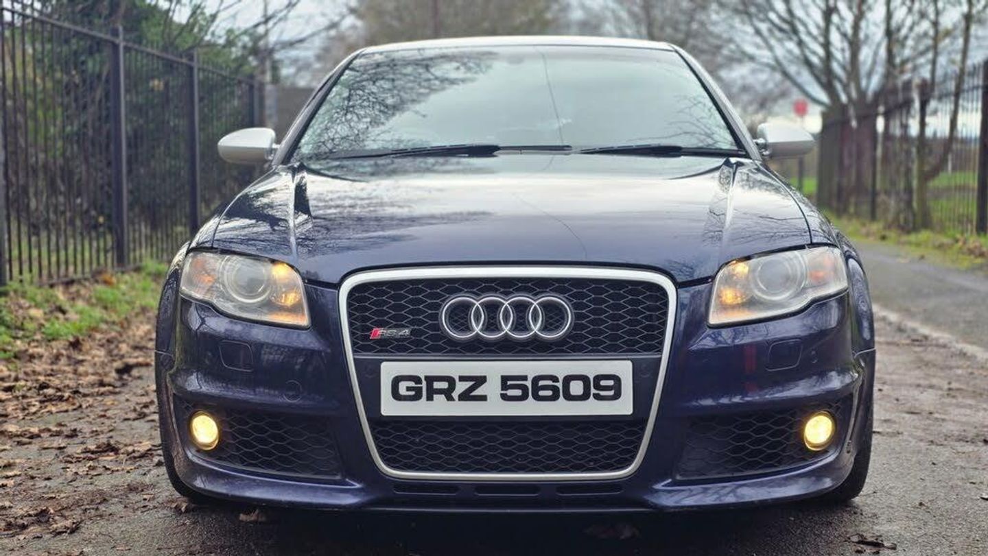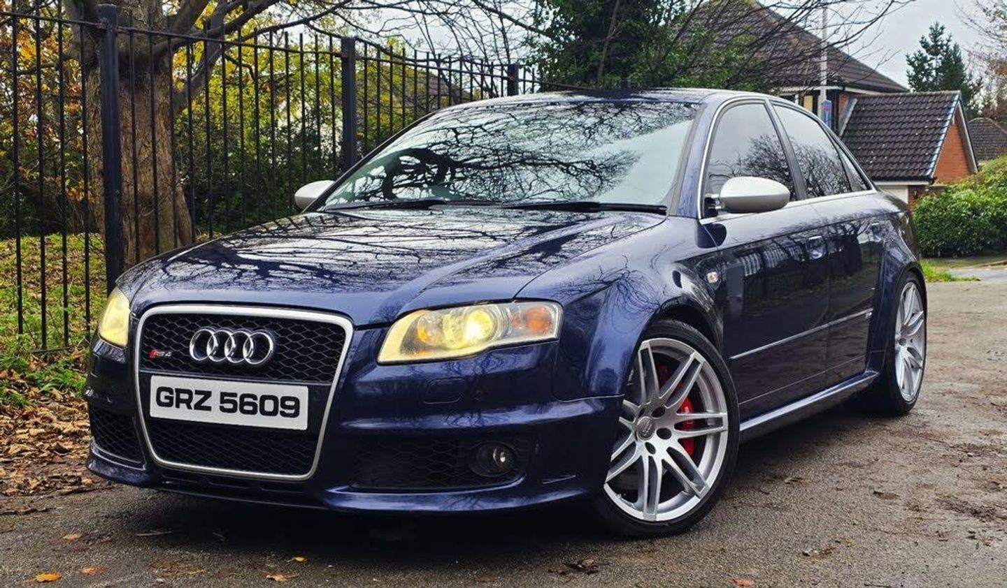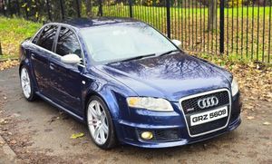 2007 AUDI RS4 4.2 QUATTRO SALOON B7 + STUNNING CAR FINISHED IN BEAUTIFUL MUGELLO BLUE METALLIC WITH CONTRASTING CREME LEATHER INTERIOR WITH BLUE PIPING + INTERIOR IS TOTALLY UNMARKED AND NO WEAR OR TEARS ON SEATS + SUPERB LOOKS AND PERFORMANCE + AN APPRECIATING CLASSIC + RS4 EMOBOSSED SEATS + FULL MILLTEK EXHAUST SYSTEM WHICH SOUNDS AMAZING + MUST BE HEARD AND DRIVEN TO BE APPRECIATED + FULL SERVICE HISTORY + LOTS OF BILLS + NO EXPENSE SPARED + ELECTRIC COMFORT SEATS + FLAT BOTTOM STEERING WHEEL + UNMARKED 19 INCH TWIN 5 SPOKE ALLOYS + + CLIMATE CONTROL + XENON HEADLIGHTS + FRONT FOGS + SATELITTE NAVIGATION SYSTEM + MEDIA PACK + PRIVACY GLASS + PUSH START BUTTON + CRUISE CONTROL + LOOKS AND DRIVES BEAUTIFULLY + 12 MONTHS MOT + NATIONWIDE DELIVERY (Please ask for a quote) + NO TEST PILOTS + YOU WILL NOT BE DISAPPOINTED ++ 14990 ++ (Whilst every care is taken in providing an accurate description, errors may still occur. Please check details that are important to you before buying. Thank you).