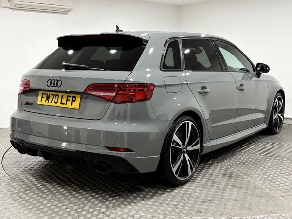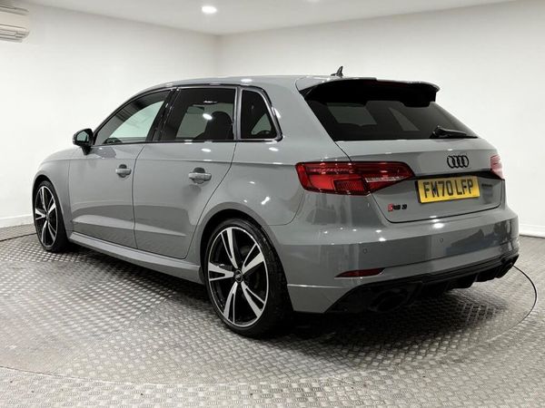 19in Alloy Wheels - 5-Arm Blade Design Audi Sport - Glossy Anthracite Black - Diamond Cut Finish, 6-Airbag System with Knee Airbag for Driver, Aluminium Interior Elements, Anti Theft Locking Wheel Bolts, Anti-Theft Alarm, Audi Beam, Audi Connect Infotainment Services (3 Month Subscription From New), Audi Drive Select, Audi Parking System Plus, Audi Phone Box with Wireless Charging, Audi Smartphone Interface, Audi Sound System, Audi Virtual Cockpit with RS Specific Display, Auto-Dimming Rear-View Mirror, Black Styling Package, Bluetooth Interface, Brake Calipers Painted in Black with RS Logo at the Front, Cruise Control, DAB Digital Radio, Door Mirrors - Black Housing, Door Mirrors - Electrically Adjustable and Heated with Integrated LED Side Indicators, Door Sill Trims - Inlays in Aluminium and Illuminated with RS3 Logo, Dual-Zone Electronic Climate Control, ESC - Electronic Stabilisation Control inc ABS - ASR and EDL, Electric Windows - Front, Email and Text Messages can be Displayed on your Vehicles MMI, First Aid Kit and Warning Triangle, Front Centre Armrest, Headlights Washers, Hill Hold Assist, ISOFIX Child Seat Mounting and Top Tether, Inlays - Carbon, Interior Light Package, LED Headlights with LED Rear Lights and Dynamic Rear Indicators, Light and Rain Sensor, MMI Navigation Plus with MMI Touch, Manual Seat Adjustment, Online Media Streaming, Panoramic Glass Sunroof, Pedals in Stainless Steel, Privacy Glass, Progressive Steering, RS Body Styling, RS Brake System, RS Flat Bottomed 3 Spoke Leather Multi-function Sport Steering Wheel with Alcantara Inserts and Gear Shift Paddles in Aluminium Look - Contrast Stitching and RS Badging, RS Gear Lever Knob in Alcantara with Leather Gaiter with Contrast Stitching, RS Sports Exhaust System, RS Sports Suspension, RS3 Badge on Grille and on Luggage Compartment Lid, Seat Belt Monitoring, Seats - Heated Front, Split Folding Rear Seat Bench - 60-40 or Fully, Storage Package, Tool Kit, Tyre Pressure Warning Light, Tyre Repair Kit, Door Mirrors - Heated-Electrically Adjustable-Folding-Auto-Dimming, Comfort and Sound Package, Fine Nappa Leather - RS Embossed Super Sports Seats - Black with Crescendo Red Stitching