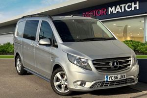Alloys, Aux In, Bluetooth, AC/Climate, Sat Nav, Cruise Control, Advanced Safety;This Mercedes-Benz Vito 2.1 116 CDI BlueTEC Sport Crew Van arrives in a sleek silver finish and offers a strong blend of comfort, practicality, and premium build quality. Powered by a 2.1-litre diesel engine delivering 163 PS and paired with a smooth manual transmission, it?s designed to provide dependable performance for both daily business and family use. The exterior features halogen headlights, body-coloured bumpers, and twin glazed sliding side doors that make passenger access effortless. At the rear, the heated window with wash?wipe system ensures year-round visibility. The spacious boot area benefits from a durable wood-composite floor and securing rings, making it easy to load, protect, and organise tools, luggage, or equipment. With split-folding flexibility available from the rear seating configuration, there?s plenty of room to adapt the space for changing needs. Inside, the cabin offers comfort seats with armrests, luxury interior trim, and a clear 5.8-inch TFT display that presents key vehicle information at a glance. Manual air conditioning with Tempmatic temperature control keeps the cabin cool and comfortable?ideal as warmer months approach. The multifunction steering wheel and intuitive dashboard layout add to the refined driving experience. Technology includes Bluetooth audio streaming, hands-free calling, Radio/Media playback, and system settings via the Audio 15 unit. Pre-wiring for Becker Map Pilot navigation means you can add sat-nav functionality wi...