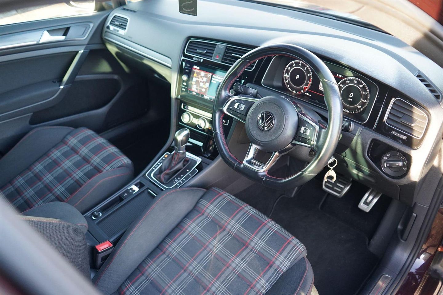 Stunning Gold GTI DSG Finished In Ruby Black Metallic With GTI Specific Jacara Cloth Interior. Fantastic Spec Inc: 18'' Alloys, Red Calipers, Virtual Cockpit, Discover Sat Nav, DAB Radio, USB Interface, App Connect, Winter Pack, Heated Front Sports Seats, Adaptive Cruise Control, Emergency Braking System, Electric Folding Mirrors, Auto LED Headlights, Front & Rear Parking Sensors, Dual Climate Control, Auto Dimming Mirror, Rear Tinted Glass. Full Service History.