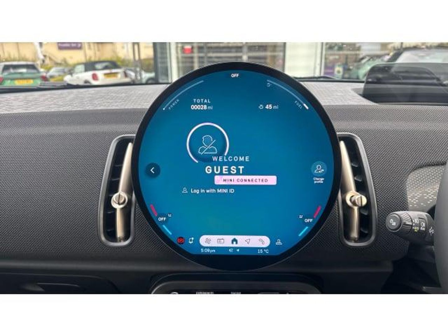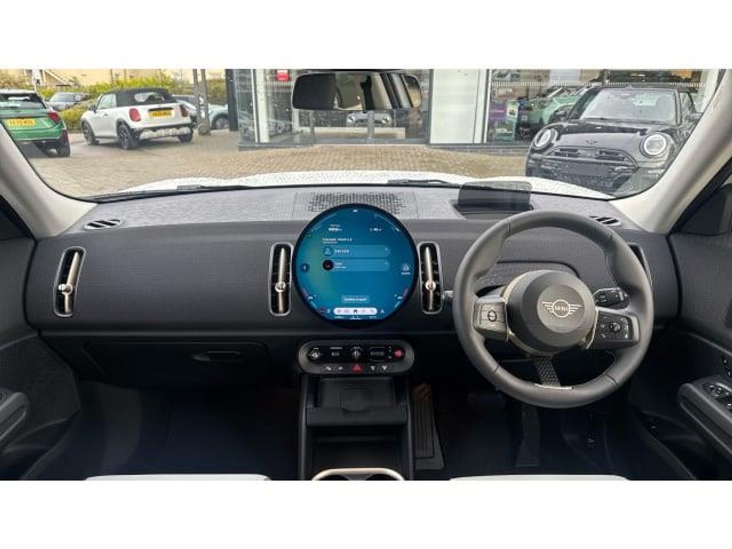 Floor mats, Heated rear window, Front and rear electric windows, Rain sensor with auto headlights, Rear window wiper, ABS, DSC - Dynamic Stability Control, Hill start assist, Electronic handbrake, Traction control, Electronic Stability Programme (ESP), Hill descent control, Compatible mobile phone bluetooth with audio streaming, E-call, Bluetooth connection, Rear view camera, Electro-mechanical speed dependant steering assistance, Parking assistant, MINI Experience Modes, Cruise Control (DCC), Hill hold assist, Parking assistant in camera and ultrasound based assistance system, rear view camera, parking aid and distance control, Driving assistant, Driving Assistant Plus Preparation, Digital dashboard display, MINI TeleServices, MINI Head up display, Mini navigation system, Circular OLED Screen, Electric folding mirrors, Interior rear-view mirror with automatic anti-dazzle function, Electric adjustable heated door mirrors, Black/Blue dashboard knit