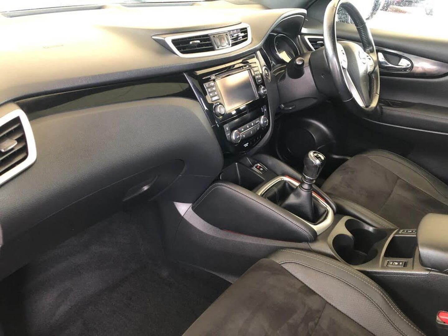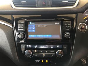 5" TFT driver information centre, 7" touch screen, Around View Monitor, Bluetooth phone integration system, Cruise control, Front and rear parking sensors, Lane departure warning system, Nissan connect sat nav system, Push button starter, Service interval indicator, Speed limiter, Speed sensitive power steering, Traffic sign recognition, Trip computer, Diesel particulate filter, 6 speakers, DAB radio/CD player, Steering wheel mounted audio controls, USB/aux input socket, 2 speed wipers+variable intermittent wipe, Automatic headlamp activation, Black honeycomb front grille, Body colour bumpers, Body colour door mirrors and handles, Chrome window surround, Electric folding and heated door mirrors, Electric front/rear windows, Front fog lights with chrome surrounds, High beam assist, Interior mirror with auto anti dazzle, LED daytime running lights, Panoramic sunroof with one touch shade, Rain sensor windscreen wipers, Rear privacy glass, Rear wiper, Satin silver roof rails, 12V socket, 60/40 split folding rear seat, Ambient interior lighting, Dark headlining, Driver's lumbar support, Driver/passenger front seatback pockets, Dual zone climate control, Electric adjust driver's seat, Footwell ambient lighting, Front armrest, Front cupholders x 2, Front headrests, Front seat belt pre-tensioners with load limiters, Heated front seats, Height adjustable passenger seat with lumbar support, Illuminated glovebox, Isofix child seat preparation, Leather gearknob, Leather steering wheel, Luggage area divider, Map reading lamp, Pollen filter, Rake/reach adjustable steering wheel, Rear armrest with 2 cupholders, Rear headrests, Sports leather/Alcantara upholstery, ABS, brake assist and EBD, Active Trace Control, Child locks on rear doors, Curtain airbags, Driver/front passenger airbag, Electronic parking brake, ESP + traction control, Forward emergency braking, Height adjustable front seatbelts, Hill start assist, Side airbags, Three 3 point rear seatbelts, Tyre pressure monitoring system, Warning triangle and first aid kit, Alarm, Immobiliser, Intelligent Key, Remote central locking, 18" Diamond cut alloy wheels, Tyre puncture repair kit