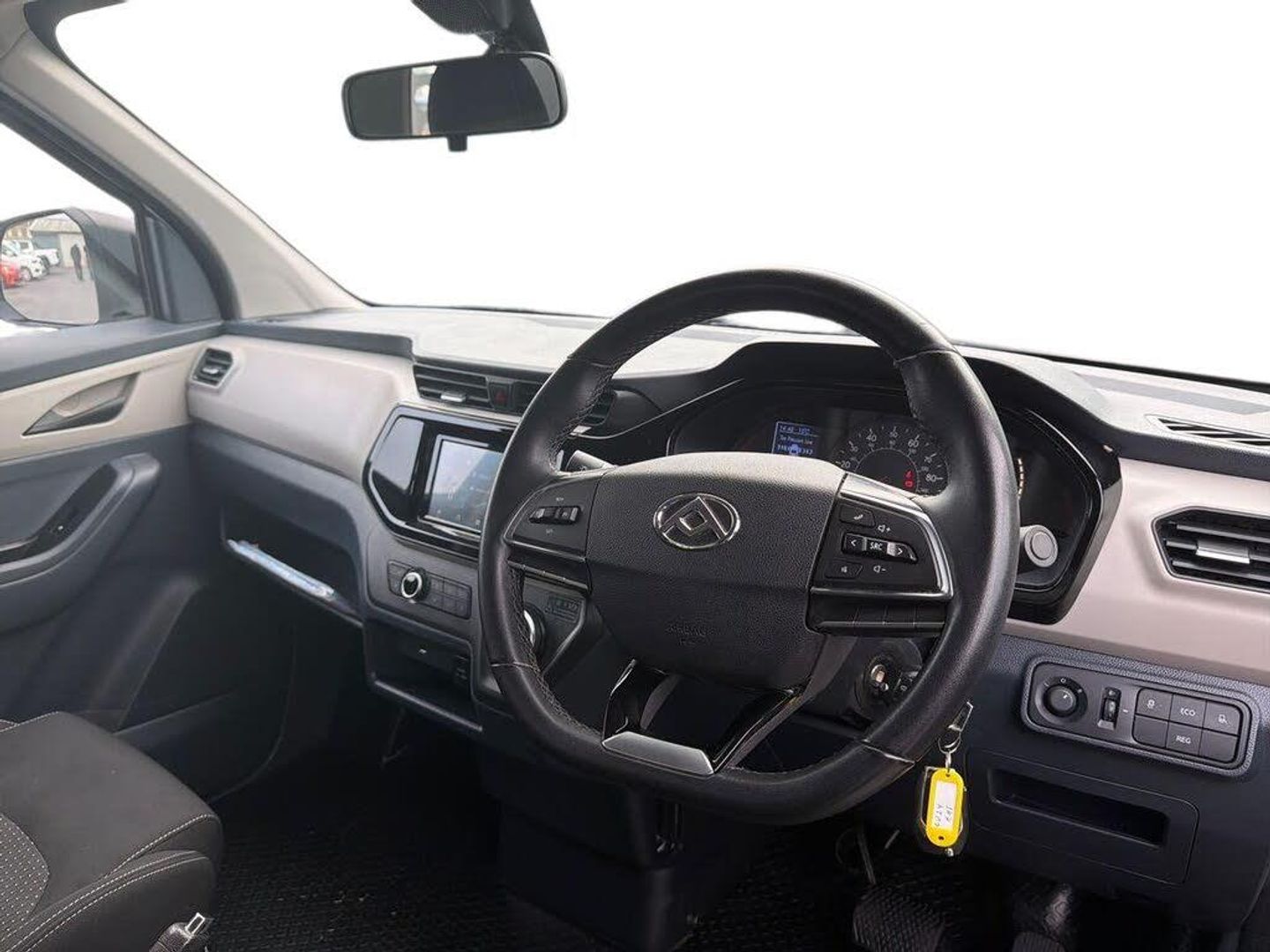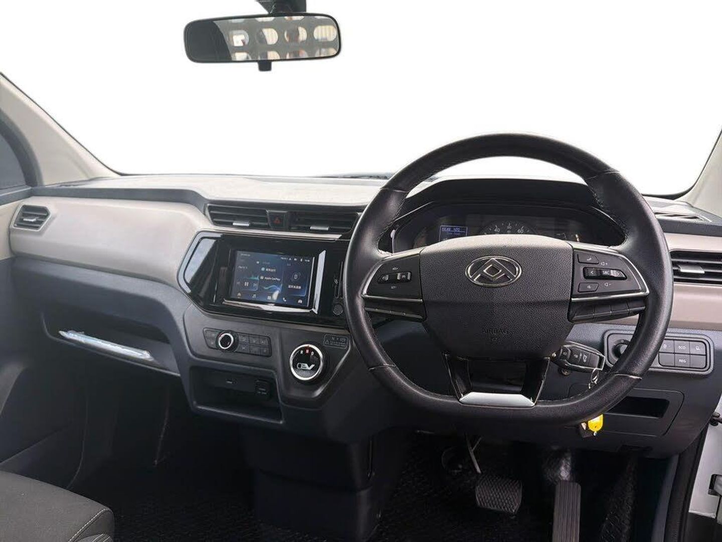 2 Driver mode, 3 energy recovery modes, Apple Carplay and QDLink, Automatic power failure collision, Bluetooth, Cruise control, Electric power steering, Infotainment system, Mobile phone mapping, TPMS (Tyre pressure monitoring system), 7" touchscreen, Radio with MP3 player, USB port and mini jack port for driver and passenger, Automatic headlights, Crystal diamond headlights, Daytime running lights, Electric adjustment of outside mirror, Electric front windows, Nature colour rear bumper, Solid paint, 12V socket, 4 direction adjustable driver's seat (Front/back, seat up/down), Cloth upholstery, Front cup holders, Front manual air conditioning, Handbrake, Heated seats, Height adjustable steering wheel, Multi function steering wheel, Rake adjustable steering wheel, Storage compartments in front doors, Storage space under bench seat, Storage under front seats, Driver seatbelt lock reminder, Driver's airbag, Front passenger airbag, Passenger seat safety belt untied alarm, Reversing image, Reversing radar, Foldable remote control key - 1 pieces, Immobiliser, Speed sensitive automatic lock, Electronic Stability Control (ESC), Front and rear ventilated discs, Front McPherson independent suspension, Leaf spring rear suspension, PTO - Interface, Speed limiter, Ternary polymer lithium battery, 15" steel wheels