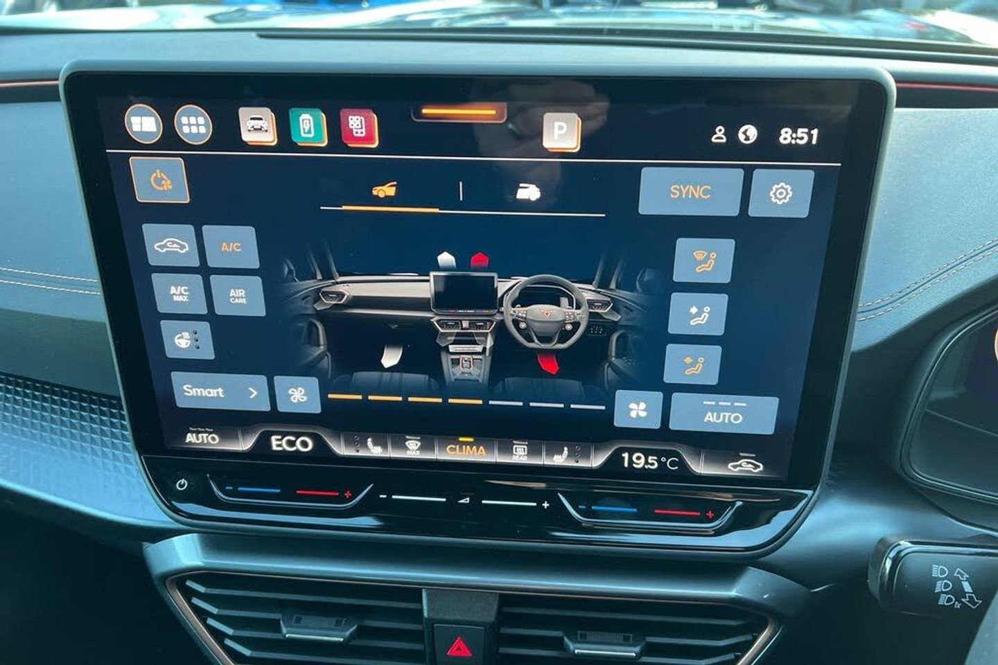 10.25in Digital Cockpit and Configurable Dashboard, 12V Socket, 19in Alloy Wheels - Sandstorm - Machined Sport - Black and Silver, 60-40 Rear Seats with Central Armrest and Mechanical Seat Release, Adaptive Cruise Control with Follow-to-Stop and Speed Limiter, Advanced Driver Alert System, Airbag on Driver and Front Passenger Side with Front Passenger Airbag Deactivation, Anti-Theft Alarm, Auto Dimming Rear View Mirror, Brake Control System - ESC and Brake Booster, Breakdown Kit and Toolkit for Tyre Puncture, CUPRA Connect - Safety - Service - Remote and Online, Charging Cable - Mode 2 - 10amp, Charging Cable - Mode 3 - 32amp, Copper and Aluminium Interior Detailing, Cupra Sport Pedals, Daytime Running Lights with Automatic Headlight Control and Coming-Leaving Home Lights, Disc Brakes Front and Rear, Driving Profile Selection, Dynamic Headlight Range Control, Dynamic Road Sign Display, Electrically Adjustable - Folding and Heated Door Mirrors with Memory Function, Electronic Locking Differential with Dynamic Traction Support, Electronic Parking Brake, Emergency Steering Support with Turn Assist, Front Assist - Forward Collision Warning with Automatic Braking, Front Centre Armrest, Front Fog Lights with Cornering Function, Front Side Curtain Airbag, Front and Rear Head Restraints, Gloss Black Roof Rails and Window Surrounds, Headlining - Black, Heated Front Seats, Heated Supersports Multifunction Leather Steering Wheel with Satellite Buttons and Gearshift Paddles, High Beam Assist, ISOFIX, Illuminated Interior Front Door Sills, Illuminated Sunvisor with Mirror, Kessy - Keyless Entry and Start with Safelock, LED Headlight, LED Taillights with Dynamic Indicator, Lane Assist, Locking Wheel Bolts, Media System with Navigation, Parking Sensors - Front and Rear, Rain Sensing Wipers, Reading Lights - 2x Front - 2x Rear, Rear Diffuser with Copper Simulated Exhaust Pipes, Rear Fog Lamps, Rear View Camera, Seat Belt Reminder, Smart Wraparound Interior Lighting, Start Stop with Regenerative Braking, Storage Pockets on Rear of Front Seats, Three Zone Climate Control with Control Panel in the Rear, Tinted Rear Windows, Tyre Pressure Monitoring System, USB Type C x4 - x2 Front and x2 Rear, Virtual Pedal and Electric Tailgate, Welcome Lights, Wireless Phone Charger
