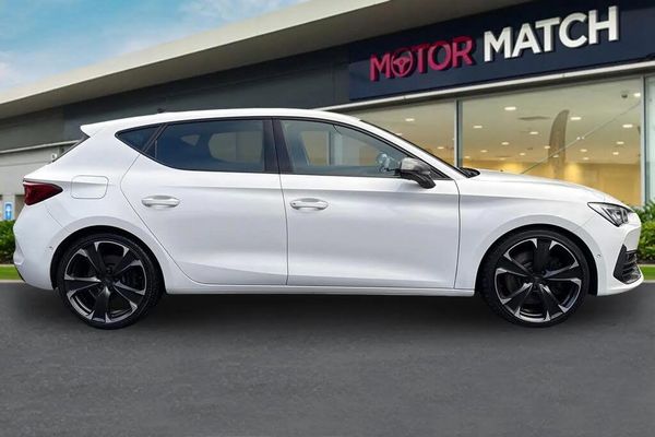 Alloys, Cruise Control, Advanced Safety, Collision Detection, Isofix, Ambient Lighting, Keyless Entry, Lane Assist, Sat Nav, Park Assist, Automatic Wipers, AC/Climate, Tiredness Sensor;Boasting exceptionally low mileage for its age, this 2022 CUPRA Leon TSI VZ2 presents a superb ownership opportunity. This Euro 6 compliant vehicle is equipped with a 2.0 litre petrol engine. Inside, you'll find a wealth of technology designed for convenience and connectivity, including Park Assist with front and rear sensors, making maneuvering easier than ever, Full Link Smartphone Integration supporting both Android Auto and Apple CarPlay for seamless smartphone integration, and a Three Zone Climate Control system, for ultimate comfort for you and your passengers. The Media System Plus comes complete with navigation and Bluetooth, while KESSY Advanced allows for keyless entry and keyless start. Furthermore, the generous boot space ensures practicality for all your needs, making this a suitable vehicle for all drivers. The combination of its low mileage, single owner provenance, and comprehensive list of modern features, such as the integrated navigation and keyless entry, makes this particular Leon a compelling choice for those seeking a well maintained and feature rich hatchback. ?This car is ULEZ Compliant? This Vehicle has been prepped to our exact preparation standards with a 100 point multi point inspection. This car is part of our Motor Match Approved Cars which includes 30 days or 1,000-mile warranty. We also offer RAC Extended warranties, as well as flexible finance packages* Terms & conditions apply.