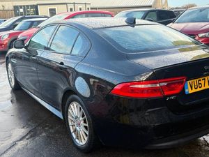 12V Power Sockets, 17in Alloy Wheels - 15 Spoke - Style 1016 - Lightweight, 2-Zone Climate Control, 3 Rear Headrests, 3-Flash Lane Change Indicators, 5in Instrument Display with Analogue Dials, 8-Way Manual Front Seats with Electric Recline, ABS - Anti-locking Braking System, AEB - Autonomous Emergency Braking, AM-FM-DAB Radio, Air Distribution Speed, Airbags - Driver and Front Passenger with Seat Occupant Detector for Passenger, Ambient Interior Lighting, Approach Illumination, Auto-Dimming Interior Rear View Mirror, Automatic Headlights, Bi-function Xenon Headlights with LED J Blade Daytime Running Lights, Bluetooth Streaming, Bluetooth Telephone Connectivity, Body-Coloured Extended Side Sills, Boot Lid Spoiler, Brake Pad Wear Indicator, Carpet Mats, Centre Console with Armrest, Concealed Tailpipes, Cruise Control with Speed Limiter, Dynamic Stability Control and Traction Control, Dynamic Volume Control, EBA - Emergency Brake Assist, ECO Driving Style Assistant, EPAS - Electric Power Assisted Steering, EPB - Electronic Parking Brake - Drive Away Release, Ebony Morzine Headlining, Electric Windows - Front and Rear with One-Touch Open-Close and Anti-Trap, Electronic Active Differential with Torque Vectoring by Braking, Etched Aluminium Trim Finisher, Fixed Rear Seat, Forward Facing Stereoscopic Camera, Front Door Storage Space, Glove Compartment Lockable, Grained Black Radiator Grille with Satin Chrome Surround, Green Tinted Glass, Hazard Lights Under Heavy Braking, Heated Door Mirrors, Heated Front Seats, Heated Rear Window, Hill Launch Assist, ISOFIX Anchor Points for Rear Child Seat, InControl Apps, InControl Protect, InControl Remote Premium for Warranty Period, Interior Front Door Handles with Separate Locking Switches, Interior Lighting, Interior Mood Lighting, Jaguar Script and Leaper, Jaguar Smart Key System with Keyless Start, Jaguar Sound System, Jaguar Tyre Repair System, JaguarDrive Control, LED Tail Lights, Lane Departure Warning, Leatherette Stitched Dashboard, Locking Wheel Nuts, Luggage Tie Downs in Loadspace, Luxtec Wrapped Instrument Panel Topper, Metal Treadplates with R-Sport Branding, Mist Sensing, Morzine Headlining, Navigation System, Optimal Shift Indicator, Outside Temperature Gauge, Overhead Lighting Console, Passive Front Head Restraints - Whiplash Protection, Pedestrian Contact Sensing, Power Operated Child Locks, R-Sport Body Kit, R-Sport Branded Multi-Function Softgrain Leather Steering Wheel, R-Sport Front Bumper, Rain Sensing Windscreen Wipers, Rear Air Vents, Rear Armrest with Twin Cupholders, Rear Door Storage Space, Rear Parking Aid, Remote Control Central Locking with Dead Locking and Drive-Away Locking, Satin Chrome Side Vents with R-Sport Badge, Satin Chrome Touchscreen Surround, Seat Belt Reminder, Seats - Sports, Shopping Bag Hook in Trunk, Speed Proportional Steering, Sports Suspension, Start Up Sequence with Movement - Dials and Lighting, Sun Visor with Illuminated Vanity Mirrors, Sunglasses Holder in Overhead Console, Touch with 8in Touchscreen, Traffic Sign Recognition with Adaptive Speed Limiter, Trailer Stability Assist, Twin Front Cupholders, Tyre Pressure Monitoring System, USB - Auxiliary Socket and iPod Connectivity, Variable Intermittent Wipers, Voice Control, XE Badge