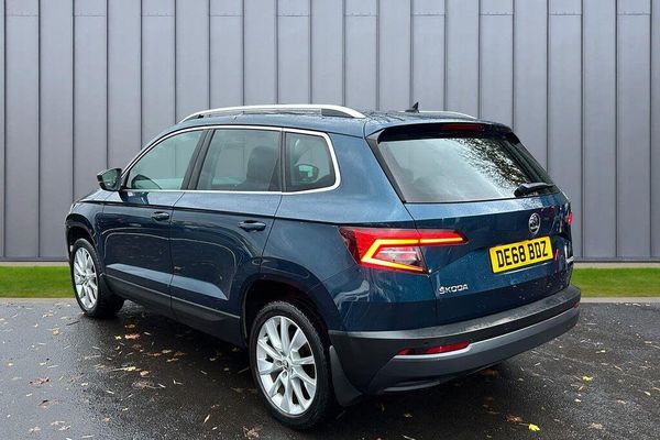 Howards Used Car Centre are happy to offer this 2018 Skoda Karoq SE L, boasting low mileage for its age at just 44,705 miles. This Euro 6 compliant 1.6 litre diesel model offers a refined driving experience, complemented by a 6 month RAC warranty including breakdown cover for your peace of mind. The sat nav ensures you reach your destination with ease, while parking is made easier with front & rear sensors plus a reversing camera for extra confidence. Make long journeys a pleasure with cruise control, and your favourite stations sound crystal-clear through the DAB digital radio with Bluetooth. Youll be comfortable all year round with leather interior, heated front seats and dual zone air conditioning. Completing the modern look are stylish 18'' alloy wheels.At Howards Motor Group, all of our vehicles undergo a minimum 120-point mechanical check.We believe that its not just about what youre buying, but who you buy it from. Howards take a lot of pride in our customer service and as a business, currently hold the highest automotive Reputation score in the UK.Buying your next vehicle from Howards has never been easier. Our Online Specialists are here to help you every step of the way and you can chose which Howards Experience is best for you - The dealership handover experience or our Howards at Home delivery service* - The Howards quality of service from the comfort of your sofa and gives you peace of mind with a 14 day money back guarantee. *Charges apply from £49.-** FREE UK HOME DELIVERY **