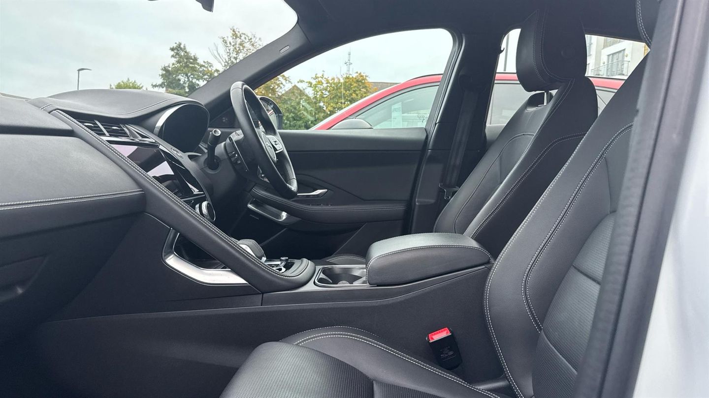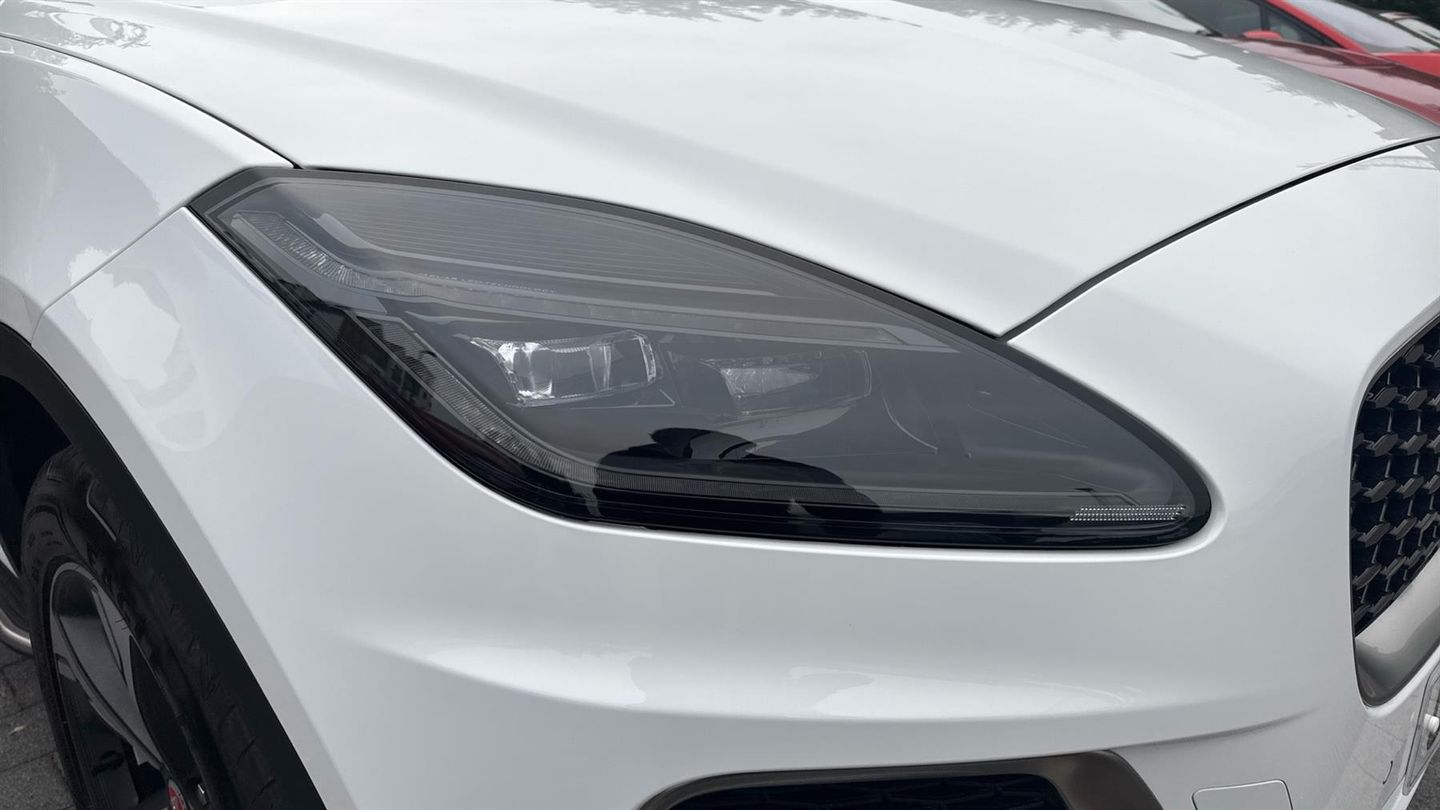 Great looking and sporty E Pace offered in excellent condition throughout and with fixed side steps. Our E Pace is finished in Fuji White with Ebony Hide Seats. Features include 11.4 touchscreen with central ICP, 12.3 full digital instrument panel, ABS, Adaptive cruise control, All surface progress control (ASPC), Android Auto, Apple car play, Auto high beam assist, Automatic headlights, Blind spot assist, Bluetooth connectivity including audio streaming, Configurable dynamics, DAB digital audio broadcast, Driver condition monitor, DSC - Dynamic Stability Control, Dynamic volume control, Electric front/rear windows with one touch/auto up/down, Electric heated/power fold memory door mirrors with approach lights and auto dimming driver side, Electric power assisted steering, Emergency brake assist, Enhanced ambient lighting, Front and rear parking aid, Heated windscreen, Jaguar drive control with adaptive surface response, Jaguar script and leaper, Rain sensor windscreen wipers, Rear collision monitor, Rear traffic monitor, Remote central locking, Satin black grained front outer grille, Satin chrome gearshift paddles, Sunvisors with illuminated vanity mirrors, Torque vectoring brake,Traffic sign recognition with adaptive speed limiter, Trip computer, Twin exhaust tailpipe, Twin front cupholders, Two zone climate control, Tyre pressure monitoring system, Variable front intermittent wipers, Voice control system, Fixed Side Steps..