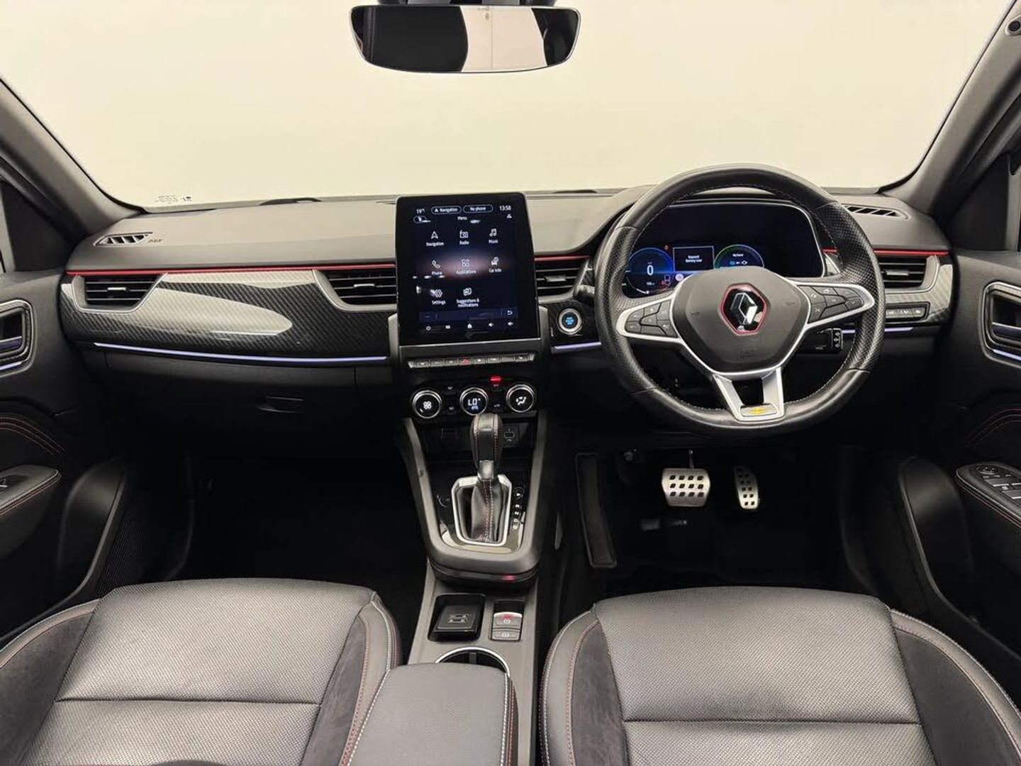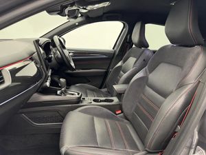 7" TFT Driver information display,Blind spot warning,Bluetooth system,EASY LINK 9.3" portrait touchscreen with navigation, Google search and traffic information,eCall emergency call system,Eco mode,EV button to activate pure mode,Front and rear parking sensors,Gear change indicator,Lane departure warning,Lane keep assist,Multi-sense - 3 driving modes and 8 ambient lighting,Rear cross traffic alert,Rear view camera,Renault automatic emergency assist,Smartphone integration compatible with Apple CarPlay and Android Auto,Traffic sign recognition with over speed prevention,Trip computer,Variable assistance electric power steering,Wireless phone charger,DAB radio,USB port,3rd brake light,Auto dimming rear view mirror,Automatic headlights,Automatic high / low beam,Automatic windscreen wipers with rain sensor,Black side door protection with gun metal insert,Body coloured bumpers,C-shaped LED front signature lighting,Chrome decopart on wing (fender molding) with R.S. Line badge,Double chromed exhaust tailpipes elements,Extra tinted rear windows and tailgate,Frameless rear view mirror,Front and rear electric windows,Front bumper with F1 blade and honeycomb front grille,Front driver window with one touch facility and anti-pinch function,Front grille with chrome on upper part,Full LED headlights,Glossy black door mirror and lower window lining,Gun Metal front and rear skid plates,Heated rear window,R.S. Line badges on front wing and hatch door,Rain sensor,Rear windscreen wiper,Shiny black shark fin antenna,Side mirrors adjustable electrically, electrically foldable, with defrosting and temperature sensor, automatically foldable at vehicle closure,3 seat bench in 2nd row,60:40 split and fixed base rear seats,Aluminium pedals,Automatic climate control with combined filter, humidity sensor and AQS,Black interior roof lining,Carbon style dashboard,Central console with storage,Driver's seat height adjustment,Electrically adjustable front seats,Front and rear head restraints,Height and reach adjustable steering wheel,ISOFIX child seat fixing points on rear outermost seats,LED front and rear roof lights,Passenger seat height adjuster,R.S. line black suede-leather upholstery with red/grey stiching,R.S. Line perforated leather steering wheel with red/black harmony and R.S. Line badge,Rear air vents,Red inserts on air vents,Single front passenger seat,Parking Pack - Hands-free parking & flank protection - Arkana,Winter pack - Arkana,3x3 point rear seat belts,ABS+EBA,Active emergency braking system,B Brake Mode - One pedal driving with increased regenerative braking,Distance warning alert,Driver airbag,Driver and passenger front and side airbag deactivation,Driver and passenger side airbags,Driver height adjustable seat belt,Electronic parking brake with auto hold,ESC (Electronic Stability Control),Front and rear no seatbelt warning sound,Front curtain airbags,Front head airbags,Hill start assist,Passenger airbag,Tyre pressure warning light,Anti drill door locks and locking fuel cap,Central door locking,Deadlocking system,Hands free keycard with Keyless access and start,RAID (Renault Anti-Intruder Device) automatic door locking,Rear side wing door and window child locking function (front driver door control panel),Superlocking,Thatcham alarm,18" Silverstone diamond alloy wheels with red inserts,Black Roof,Grey,RS Line Suede-Leather - Black with Red-Grey Stitching