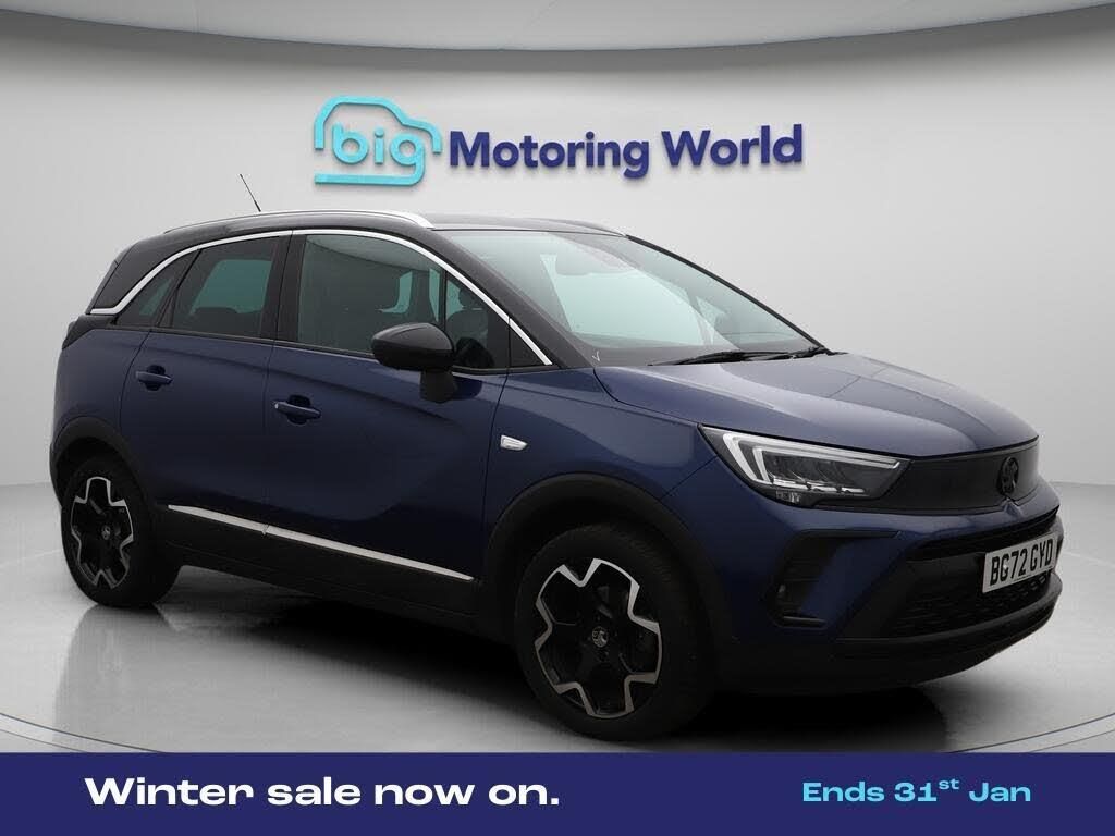 17'' Alloy Wheels,Part Leather-Our Vauxhall Crossland is finished in Blue. Specification includes a range of fantastic features including 17'' Alloy Wheels, Part Leather Seats, Apple CarPlay, Android Auto, Satellite Navigation, Heated Seats, Heated Steering Wheel, Bluetooth, Blind Spot Assist, Parking Sensors Specification information is supplied by CAPHPI and may vary to the actual car. This data does not form any part of a buying contact. Please check specification prior to purchase in-store. The MOT is valid until November 2026, visit bigmotoringworld.co.uk for more photos, a 360 tour, service history and a free HPI report.Were BIG on peace of mind and this Blue Vauxhall Crossland has completed our comprehensive 200 point inspection and passed all checks. Its ready for you to drive away with immediate collection in-store. We include a 90-day warranty as standard plus an option to extend for up to 3 years.Reserve this car exclusively for you, safely and securely at bigmotoringworld.co.uk, with a fully refundable £99 deposit. Test drive before you buy, with no commitment, no hassle and a completely haggle free experience. Still searching and want to see thousands more cars? We are BIG on choice with over 8000 cars to choose from.Visit our award winning web site bigmotoringworld.co.uk.Were Big Motoring World and were BIG on what matters to you.