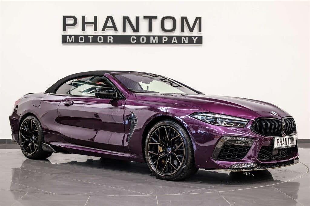 STRICT APPOINTMENT ONLY, 2025 AUTOTRADER HIGHLY RATED AWARD WINNER, LOW RATE FINANCE. Nationwide delivery available. Finished in Twilight Purple we present a simply impeccable BMW M8 Competition. An EXTREMELY special car. This vehicle has just three previous owners and comes with BMW service history present. 5 years guarantee with lifetime MOTs available. As you can see, our M8 comes kitted with a plethora of premium features such as; Forged carbon fibre body kit, Bowers & Wilkins Diamond Surround Sound System, XE FI exhaust system, BMW Laserlights, Full leather 'Merino' Silverstone Black, Carbon fibre interior trim, 360' surround view camera, Soft-close doors, M Sport Differential, Adaptive M Suspension, Air Conditioning Automatic with Two-Zone Control, Ambient Interior Lighting - Dynamic, BMW Live Cockpit Professional, Dynamic Traction Control, Drive Experience Control with Sport - Comfort - Eco - Pro and Adaptive Modes, Dynamic Damper Control, Exterior Mirrors - Folding - Heated - Electrically Adjustable, Favourite Buttons, Soft Close Doors, Soft-Top - Fully Automatic and Lined - Black, Speed Limiting Function, Carbon Core, Cruise Control, M Sport Leather Steering Wheel. The 2021 BMW M8 Competition is a luxurious high-performance grand tourer that blends aggressive styling with a refined, high-quality interior. It delivers a dramatic sense of power and responsiveness, supported by advanced driving technology that helps it feel composed whether cruising or attacking corners. Call or email us to book a viewing at our indoor heated showroom.
