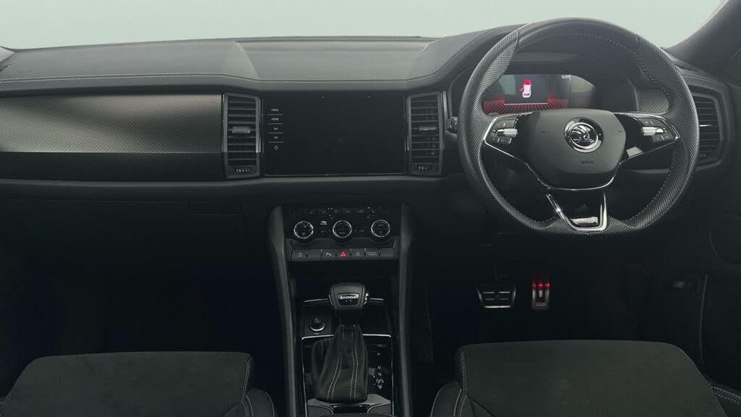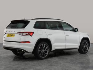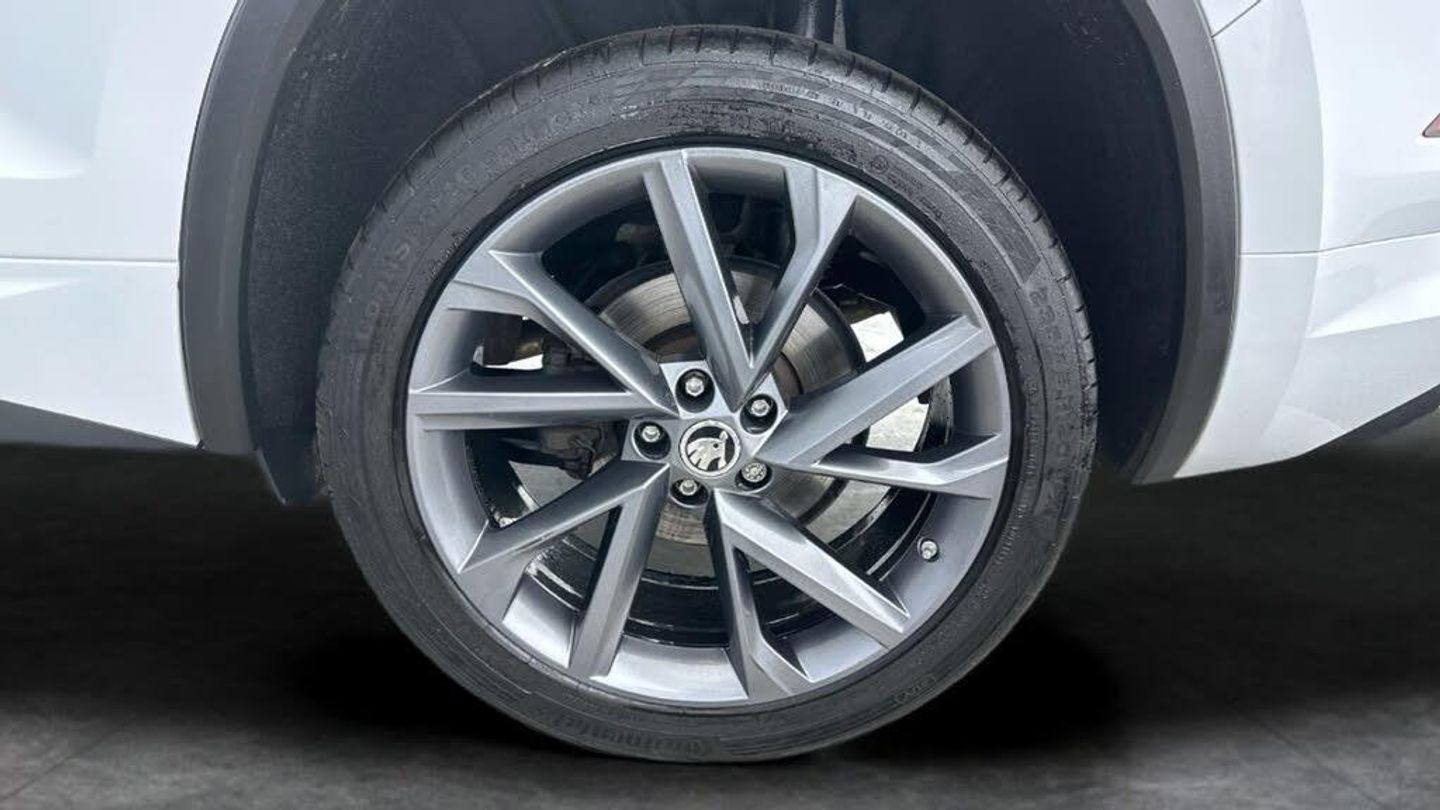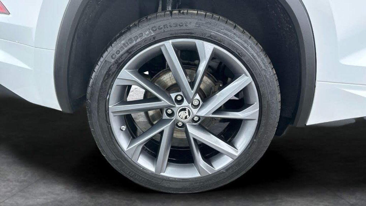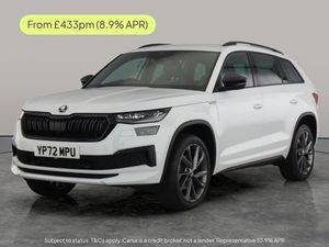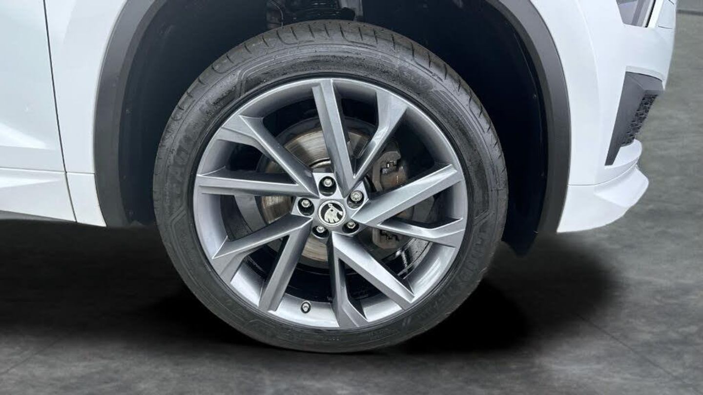 Discover the stylish white Skoda Kodiaq SUV, an automatic petrol 7-seater that blends family versatility with sporty charm. Enjoy effortless journeys with Adaptive Cruise Control, heated electric seats with driver memory, and easy keyless entry. Stay connected using Apple CarPlay and SmartLink on the Skoda Columbus touchscreen navigation, while a wireless charger keeps your devices powered. Parkings a breeze with front and rear sensors plus a reversing camera. Stand out with striking 20in alloys and LED daytime running lights. 4 services recorded, last serviced on 29/07/2025 at 28,103 miles. MOT to 21/07/2026. Visit our website for service history, online valuation, full vehicle specification plus multiple images. Any feature/option specified here is from 3rd party data. We cannot guarantee the accuracy of any specification supplied by a 3rd party. We recommend that you physically check the specification of the vehicle on site prior to purchase. This information does not form part of the buying contract. Terms & Conditions apply. We have over 2,000 cars available from our 10 national branches, check our website to see all our stock. Our Trustpilot rating is 4.4/5 with over 9,000 reviews.