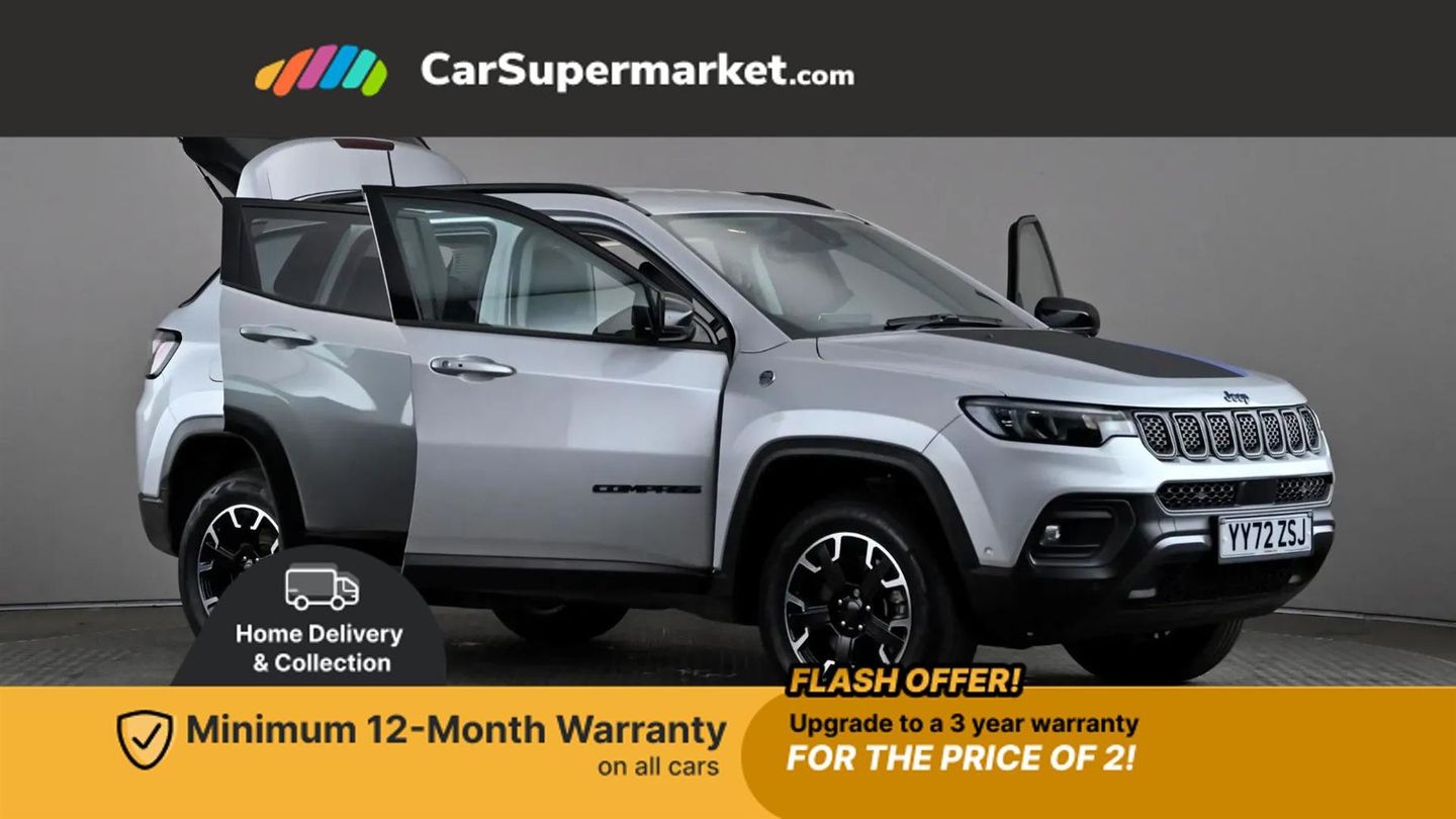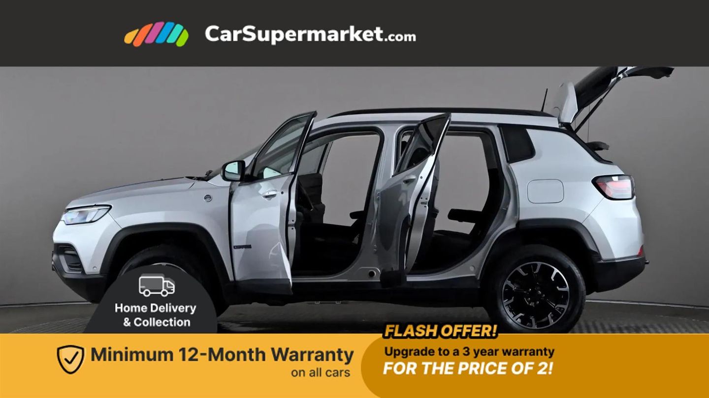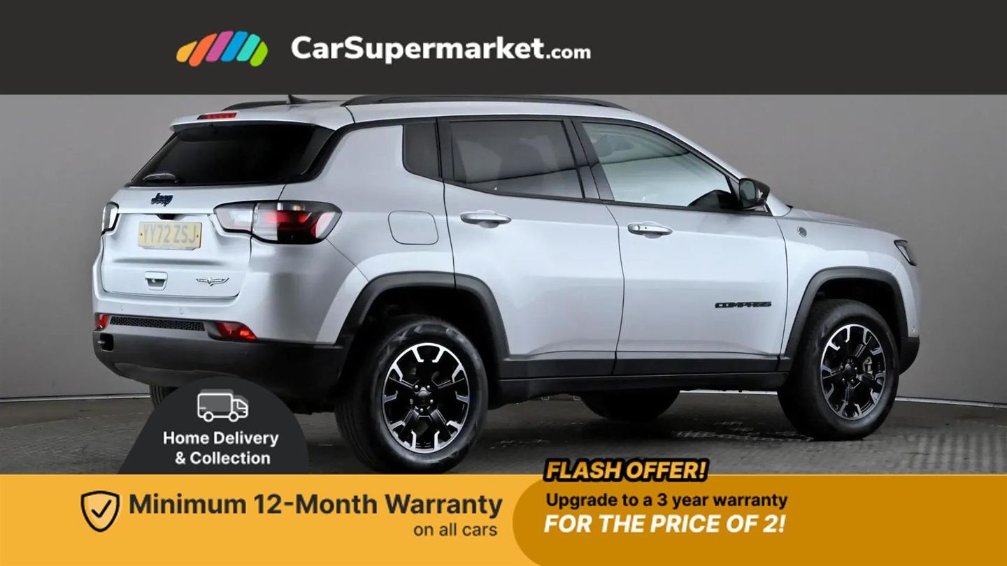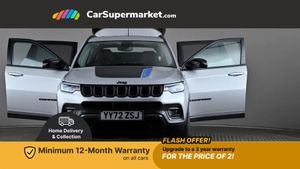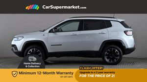 Cruise Control, Adaptive Cruise Control, Traffic Sign Recognition, Wireless Phone Charging, Bluetooth, Digital Radio, Sat Nav, Privacy Glass, Heated Front Seats, Heated Steering Wheel, 17" Alloy Wheels;Boasting a full service history and only one owner from new, this 2022 Jeep Compass GSE T4 Trailhawk presents a superb ownership proposition. Its MOT is valid until December 2025, and the last service was completed on 8th September 2025 at 40322 miles. Inside, you'll find a host of desirable features including a heated steering wheel, adaptive cruise control with stop and go functionality, heated front seats for enhanced comfort, and a convenient wireless charging pad.