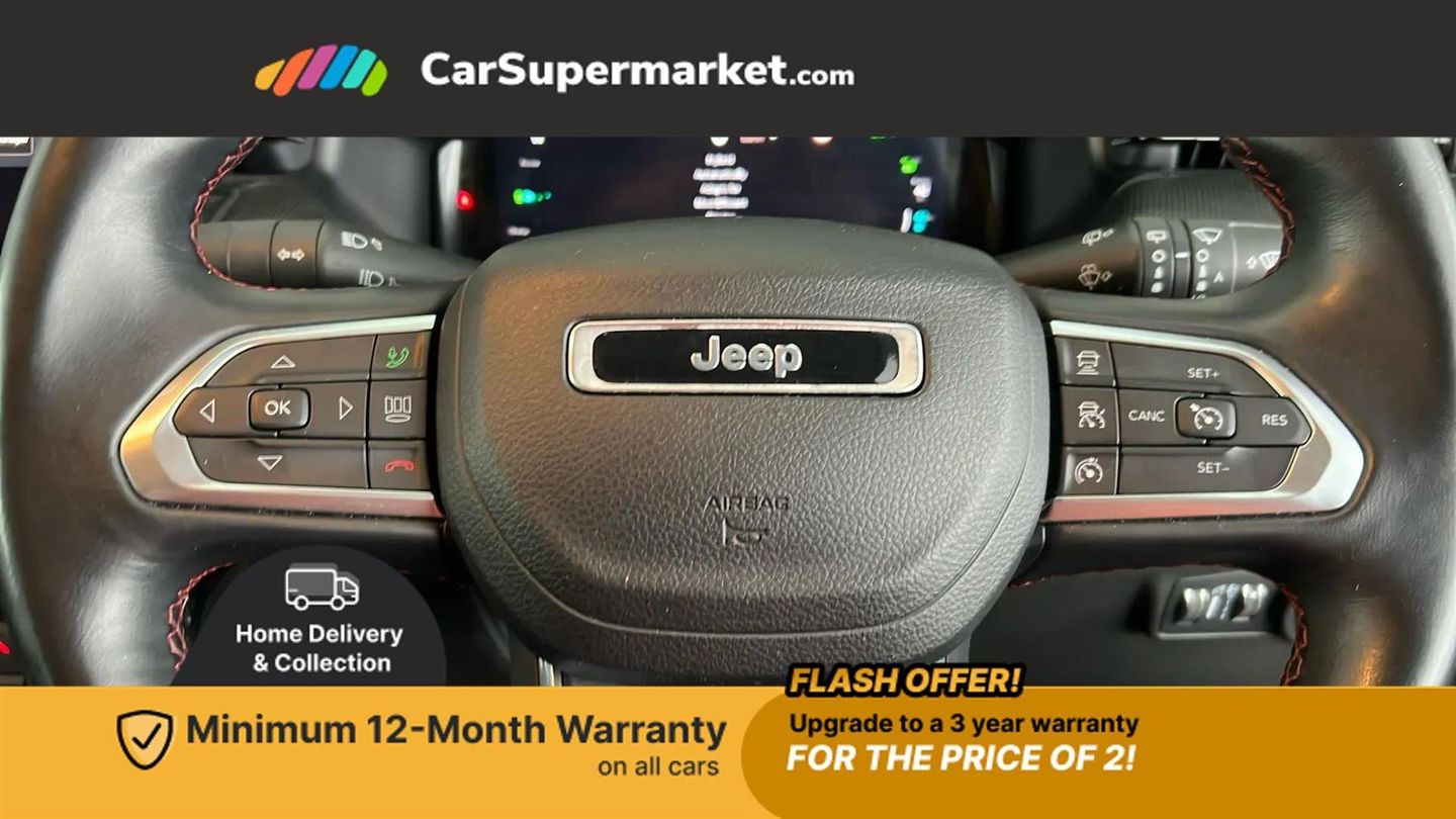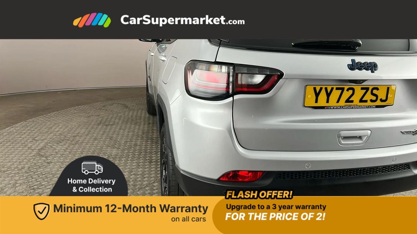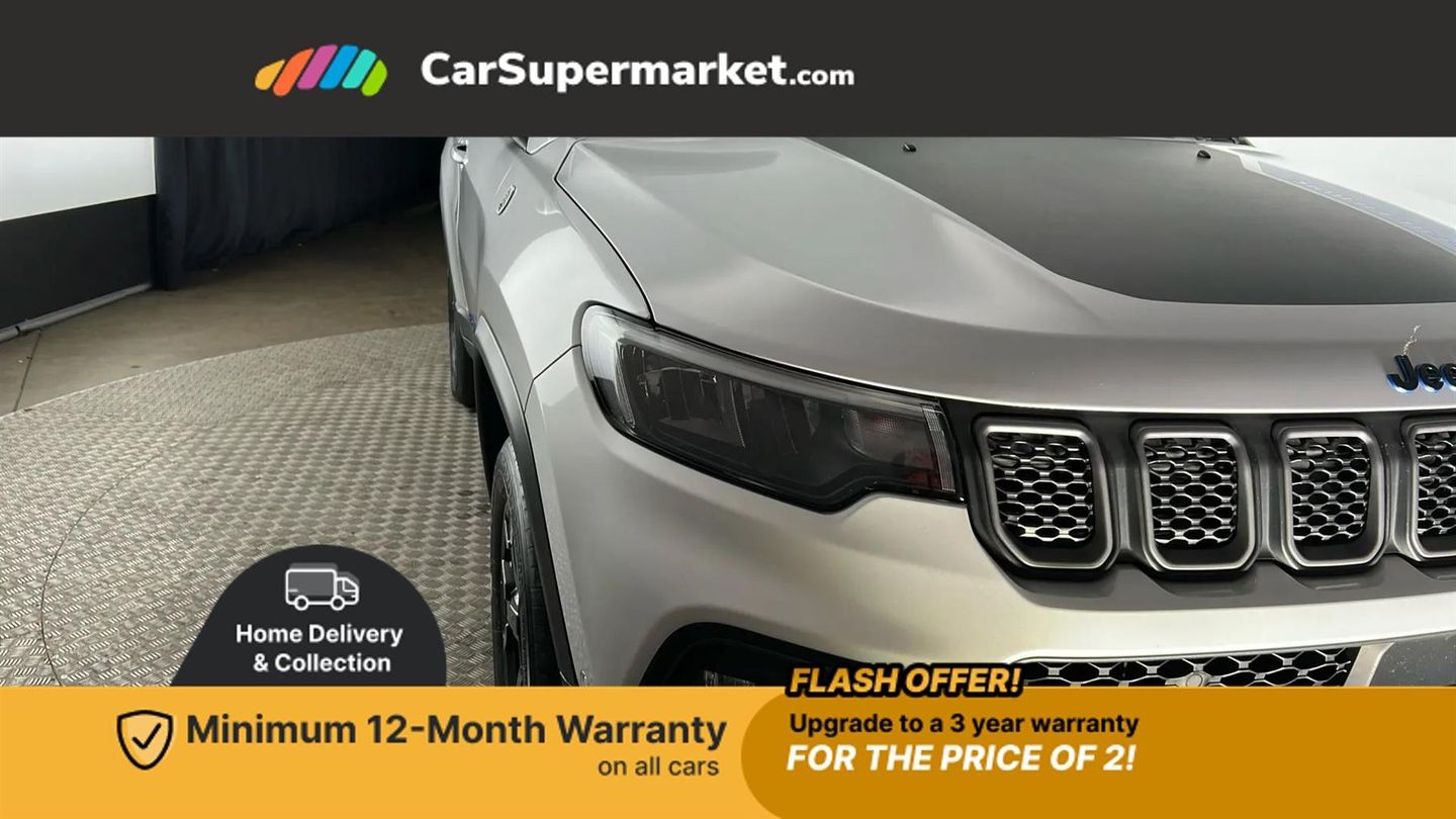 Cruise Control, Adaptive Cruise Control, Traffic Sign Recognition, Wireless Phone Charging, Bluetooth, Digital Radio, Sat Nav, Privacy Glass, Heated Front Seats, Heated Steering Wheel, 17" Alloy Wheels;Boasting a full service history and only one owner from new, this 2022 Jeep Compass GSE T4 Trailhawk presents a superb ownership proposition. Its MOT is valid until December 2025, and the last service was completed on 8th September 2025 at 40322 miles. Inside, you'll find a host of desirable features including a heated steering wheel, adaptive cruise control with stop and go functionality, heated front seats for enhanced comfort, and a convenient wireless charging pad.
