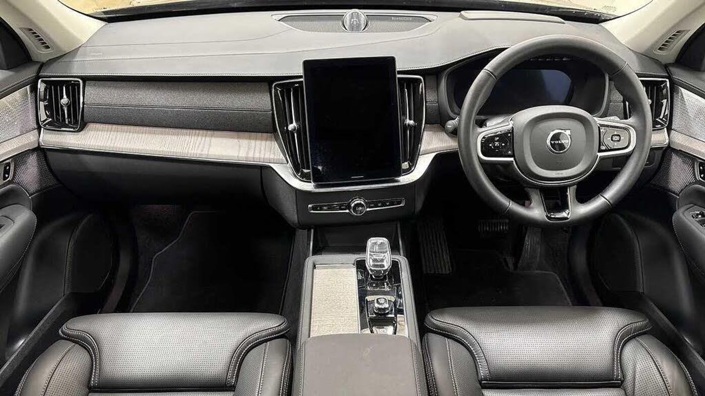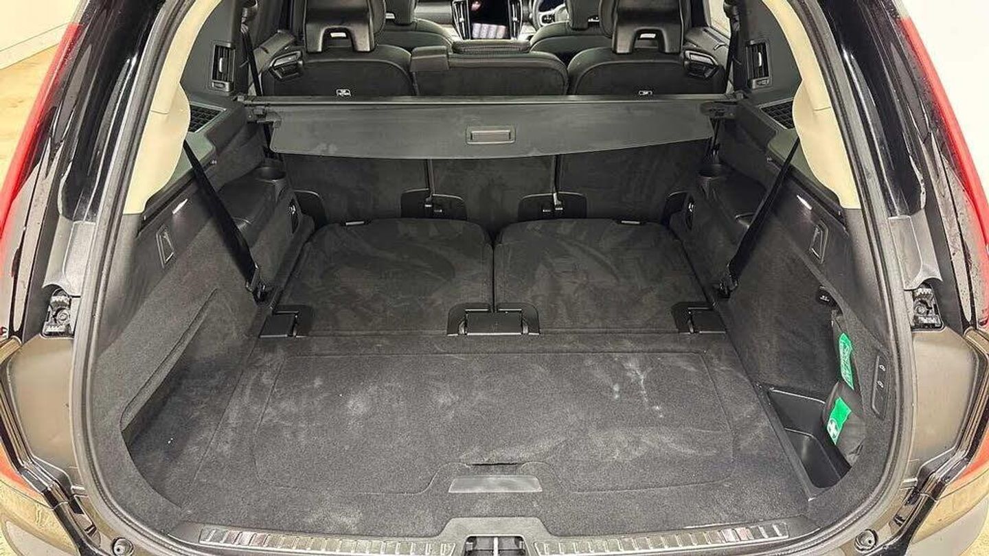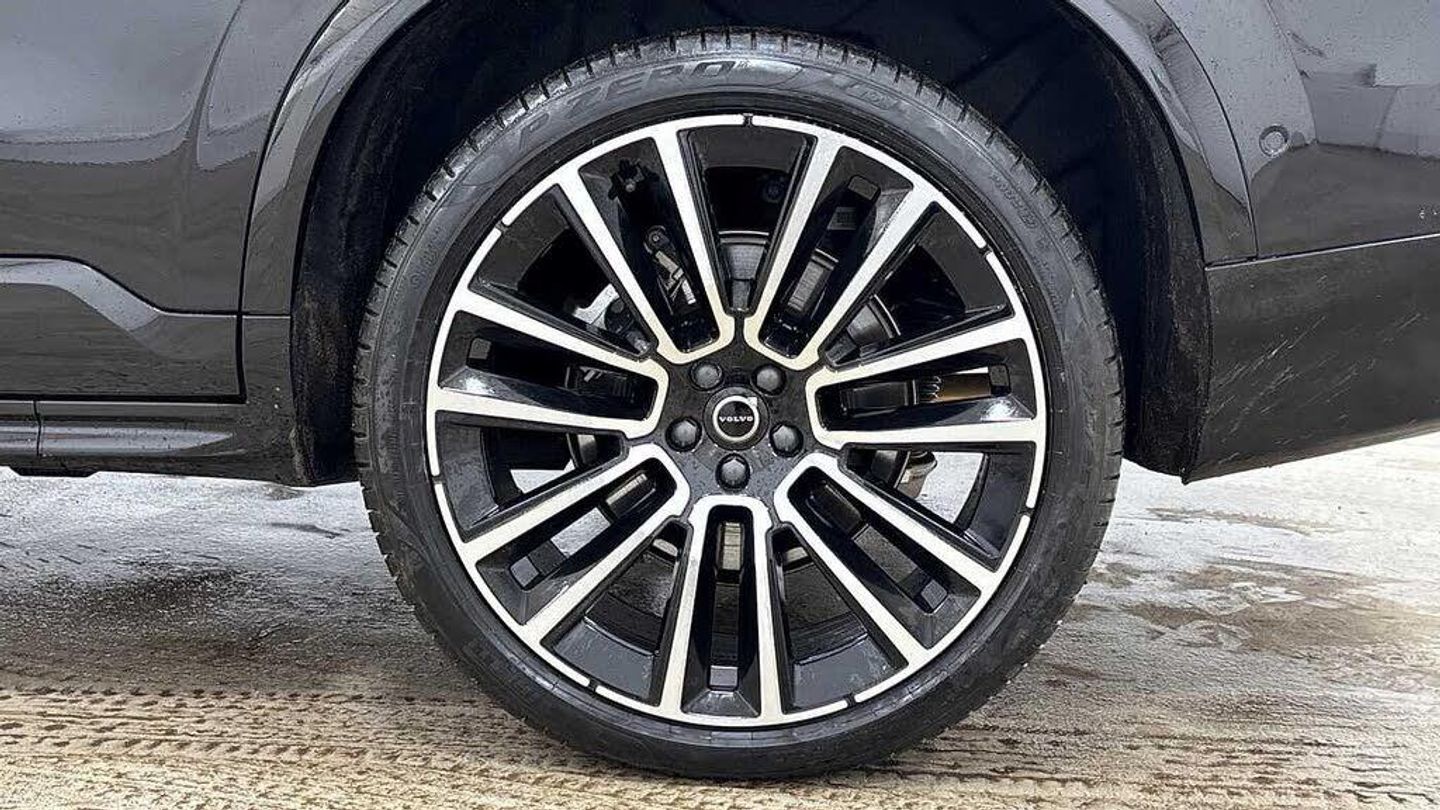 Front seat massage, 22? 7-double spoke glossy black diamond cut, Blond headlining, Grey Ash decor, Tailored sport steering wheel. Charcoal, 8-speed Geartronic? automatic, Pedals, Crystal gear shift by Orrefors®, Third row air conditioning, Four-zone climate system, Afterrun parking climate, Passenger airbag cut-off switch, Dual-stage airbags, Knee airbag. driver side, Panoramic roof, Road Sign Information, Lane Keeping Aid and Lane Departure Warning, Front grille with high-gloss black frame and matt black inserts, Heated grill emblem, Matrix-design LED headlights, Headlight cleaning, Trailer lamp control, 12.3-inch driver display, Google Assistant. Google Maps and Google Play Store, Adaptive cruise control, Head-up display, Pilot Assist, Intelligent Speed Assist (ISA), Volvo Cars App remote functions, Air-ventilated subwoofer, Digital Audio Broadcasting (DAB+), Bowers & Wilkins High Fidelity audio system, Power retractable door mirrors, Power passenger seat with memory, Wireless phone charging, Central locking controls. front and rear doors, Remote key, Door mirror covers. high-gloss black, Double locking, Tinted rear windows, BLIS? and Cross Traffic Alert, Alarm, Power child safety lock, Keyless entry with hands-free power tailgate, Air purifier and remote cabin pre-cleaning, Digital owners manual, Textile mats. third-row, Tailored dashboard and door top panels, Ventilated nappa leather upholstery, Front seat massage, Power driver seat with memory, Power passenger seat, Front seat ventilation, Heated front seats, Heated rear seats, Power folding outer rear head restraints. second row, 7 seats, Mechanical release second seat row, Power side bolsters, Power 4-way lumbar support, Textile interior cabin floor mats, Protection net, Grocery bag holder, Rear centre armrest, Integrated booster cushion, Illuminated vanity mirrors, Interior illumination. high level, Power outlet. load compartment, First-aid kit, Load cover, Rear door sun curtains, Auto-dimmed rear view mirrors, Hidden storage, Power cushion extension. driver, Hill Start Assist, Tyre pressure monitoring, Active air suspension, Oncoming Lane Mitigation, Rear Collision Warning, Hill Descent Control, Slippery road alert, Emergency brake light, Heated steering wheel, Adaptive power steering, 22? 7-double spoke glossy black diamond cut, Temporary mobility kit, Lockable wheel bolts, Wiper blades with integrated washers, Body-coloured door handles with ground lighting, Tailgate scuff plate. stainless steel, Illuminated sill moulding, High-gloss black side window trim, Roof rails. glossy black, Warning triangle, Laminated side and rear windows, Park assist. front. rear and sides, Electric cabin heater and cooler, 360° camera, Alcohol lock software (not available in the UK), Protective cap kit. Matt Tech Grey, Charging station cable. 6m, Apple CarPlay, Comfort front seats, 11.2-inch centre display, Home charging cable. mobile 7m (10A), Whiplash injury protection, Inflatable Curtain, Side impact protection, Intelligent Driver Information System (IDIS), High positioned rear brake lights, ISOFIX mounting points. rear seat, Safety belts, Rain sensor, Steering wheel remote control, Humidity sensor, Start/Stop technology, Bluetooth® connection, Android Auto, 22in Alloy Wheels - 7 Double Spoke Alloy Wheels - Diamond Cut-Black, Nappa Soft Leather Perforated and Ventilated - Charcoal