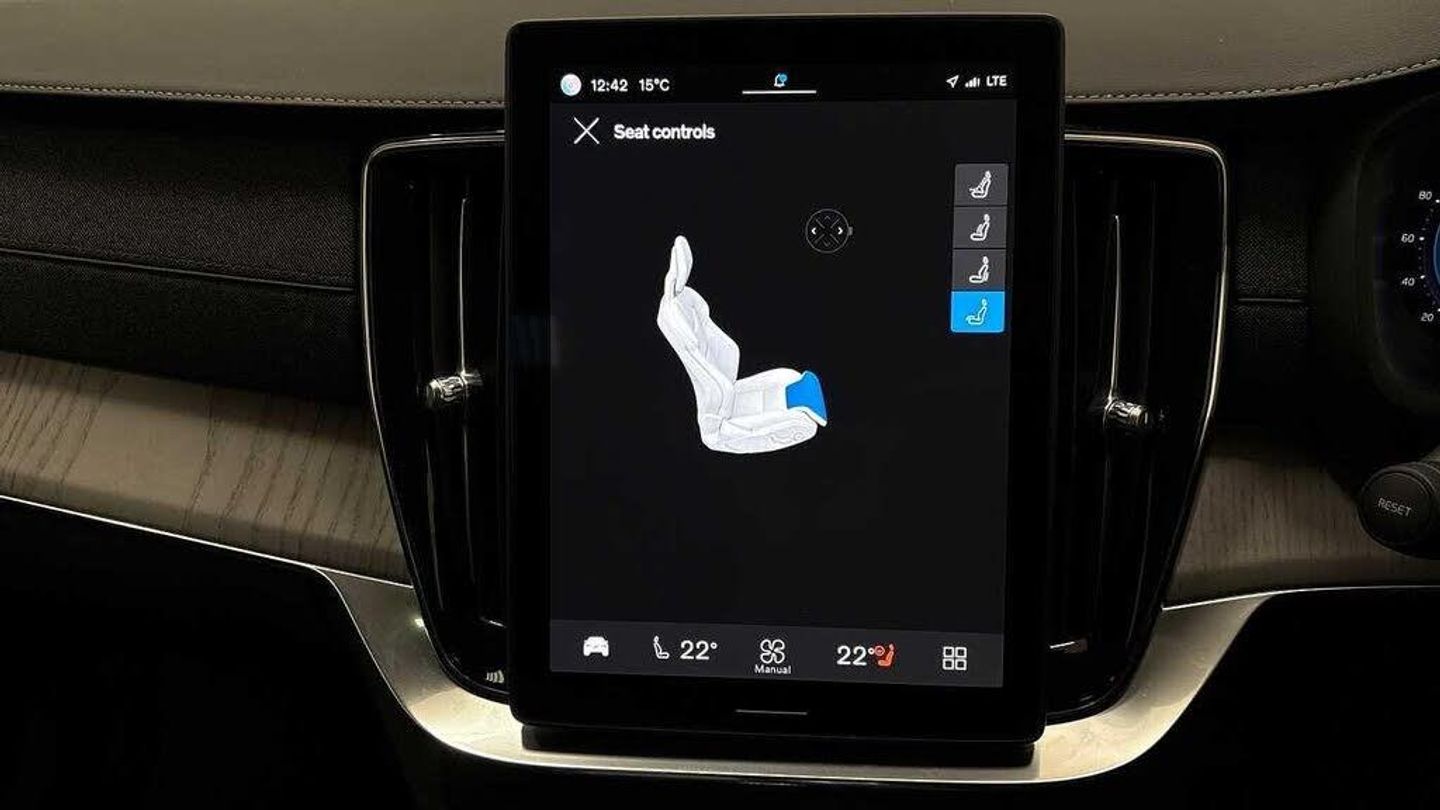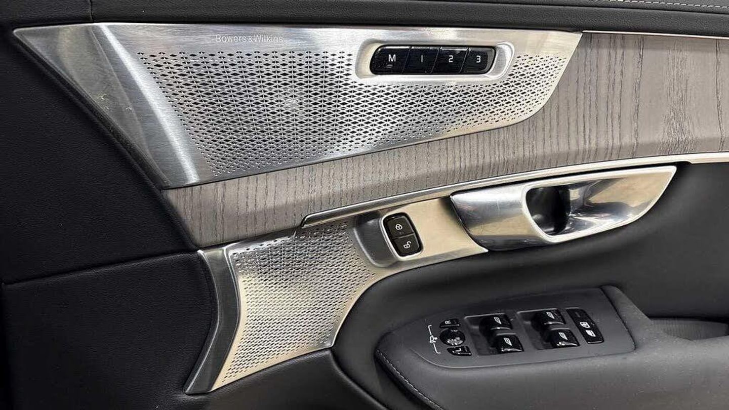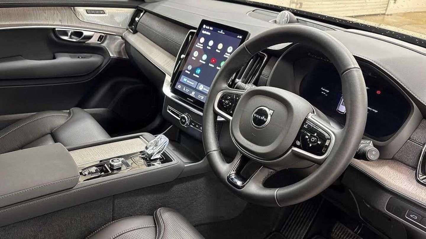 Front seat massage, 22? 7-double spoke glossy black diamond cut, Blond headlining, Grey Ash decor, Tailored sport steering wheel. Charcoal, 8-speed Geartronic? automatic, Pedals, Crystal gear shift by Orrefors®, Third row air conditioning, Four-zone climate system, Afterrun parking climate, Passenger airbag cut-off switch, Dual-stage airbags, Knee airbag. driver side, Panoramic roof, Road Sign Information, Lane Keeping Aid and Lane Departure Warning, Front grille with high-gloss black frame and matt black inserts, Heated grill emblem, Matrix-design LED headlights, Headlight cleaning, Trailer lamp control, 12.3-inch driver display, Google Assistant. Google Maps and Google Play Store, Adaptive cruise control, Head-up display, Pilot Assist, Intelligent Speed Assist (ISA), Volvo Cars App remote functions, Air-ventilated subwoofer, Digital Audio Broadcasting (DAB+), Bowers & Wilkins High Fidelity audio system, Power retractable door mirrors, Power passenger seat with memory, Wireless phone charging, Central locking controls. front and rear doors, Remote key, Door mirror covers. high-gloss black, Double locking, Tinted rear windows, BLIS? and Cross Traffic Alert, Alarm, Power child safety lock, Keyless entry with hands-free power tailgate, Air purifier and remote cabin pre-cleaning, Digital owners manual, Textile mats. third-row, Tailored dashboard and door top panels, Ventilated nappa leather upholstery, Front seat massage, Power driver seat with memory, Power passenger seat, Front seat ventilation, Heated front seats, Heated rear seats, Power folding outer rear head restraints. second row, 7 seats, Mechanical release second seat row, Power side bolsters, Power 4-way lumbar support, Textile interior cabin floor mats, Protection net, Grocery bag holder, Rear centre armrest, Integrated booster cushion, Illuminated vanity mirrors, Interior illumination. high level, Power outlet. load compartment, First-aid kit, Load cover, Rear door sun curtains, Auto-dimmed rear view mirrors, Hidden storage, Power cushion extension. driver, Hill Start Assist, Tyre pressure monitoring, Active air suspension, Oncoming Lane Mitigation, Rear Collision Warning, Hill Descent Control, Slippery road alert, Emergency brake light, Heated steering wheel, Adaptive power steering, 22? 7-double spoke glossy black diamond cut, Temporary mobility kit, Lockable wheel bolts, Wiper blades with integrated washers, Body-coloured door handles with ground lighting, Tailgate scuff plate. stainless steel, Illuminated sill moulding, High-gloss black side window trim, Roof rails. glossy black, Warning triangle, Laminated side and rear windows, Park assist. front. rear and sides, Electric cabin heater and cooler, 360° camera, Alcohol lock software (not available in the UK), Protective cap kit. Matt Tech Grey, Charging station cable. 6m, Apple CarPlay, Comfort front seats, 11.2-inch centre display, Home charging cable. mobile 7m (10A), Whiplash injury protection, Inflatable Curtain, Side impact protection, Intelligent Driver Information System (IDIS), High positioned rear brake lights, ISOFIX mounting points. rear seat, Safety belts, Rain sensor, Steering wheel remote control, Humidity sensor, Start/Stop technology, Bluetooth® connection, Android Auto, 22in Alloy Wheels - 7 Double Spoke Alloy Wheels - Diamond Cut-Black, Nappa Soft Leather Perforated and Ventilated - Charcoal