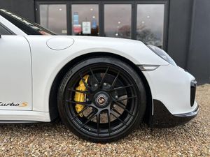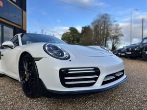 Over £20K of Extras, Aerokit 911 Turbo painted in black (high-gloss),Burmester® High-End Surround Sound-System,Front axle lift system,Electric slide/tilt glass sunroof, Adaptive cruise control including Porsche Active Safe, Dashboard trim package in leather, Porsche Entry & Drive, Seat ventilation, Door sill guards in carbon, illuminated, , Air intake and outlet slats painted, Lane Change Assist, Aluminium PDK gear selector, Rear lid air intake grilles painted, Privacy glass (rear side windows and rear window), Tinted taillights,, Rear side air intakes painted in black (high-gloss), LED main headlights in black including Porsche Dynamic Light System (PDLS), Light design package, Personalised floor mats with leather edging, Speed limit display, Sun visors in Alcantara®, Belt outlet trims in Alcantara® , Pedals in aluminium, Steering column casing in leather, Instrument surround in leather, HomeLink® (programmable garage door opener), SportDesign exterior mirror lower trims painted in Black (high-gloss) , Power steering Plus, 'PORSCHE' logo painted, Lid of storage bin with Porsche crest, Porsche Crest embossed on headrests, Headlight cleaning system covers painted in contrasting exterior colour, ISOFIX child seat mounting points on front passenger seat, Door handles painted in black (high-gloss), 20-inch 911 Turbo S wheels, Black leather interior, , Carrara White Metallic, , Heated multifunction steering wheel, Metallic Paint, Storage net in passenger footwell