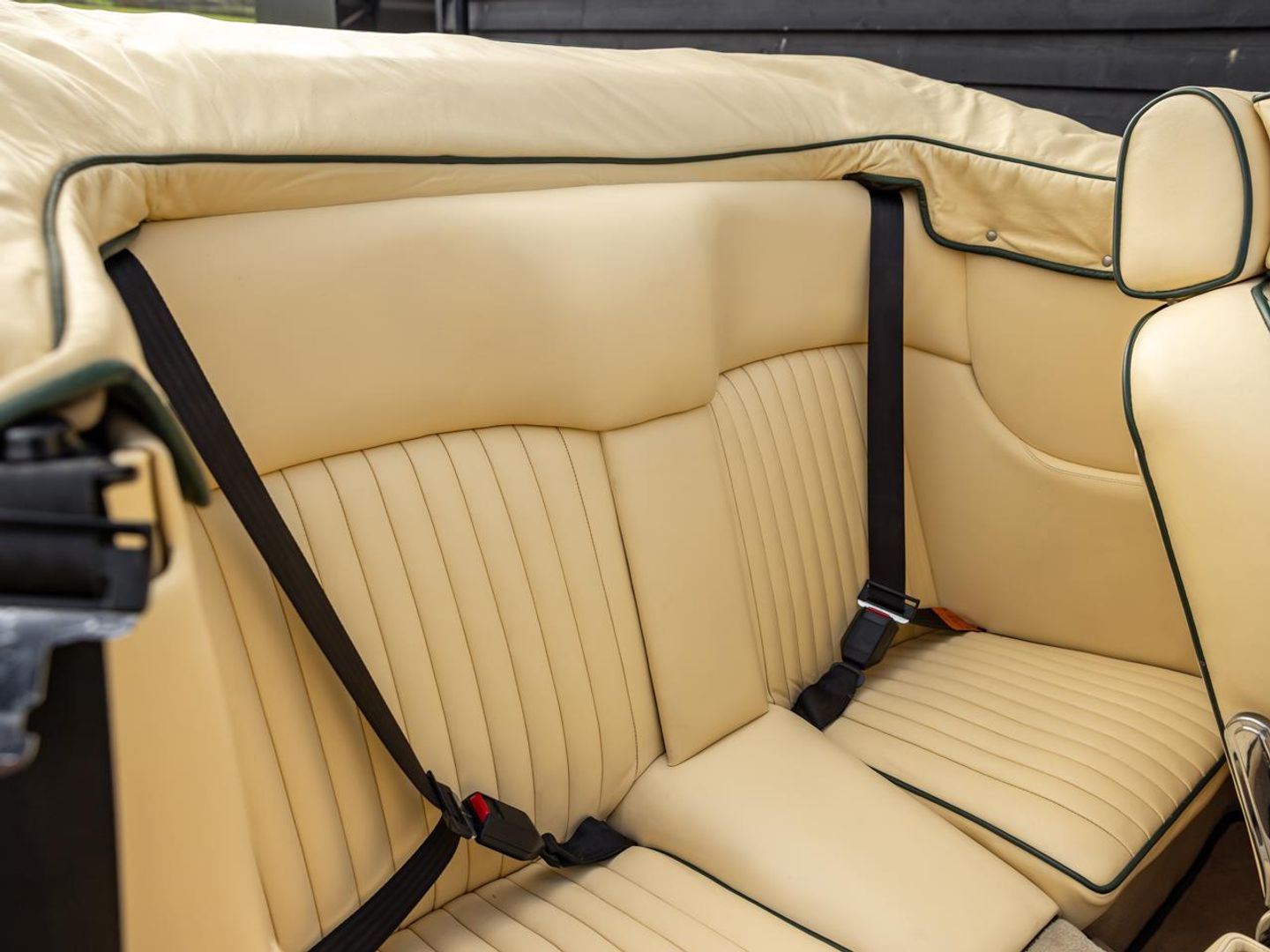 Finished in Balmoral Green with Magnolia hides piped in dark Green and matching mohair type woven fabric hood. Optioned with manual 5 speed transmission.