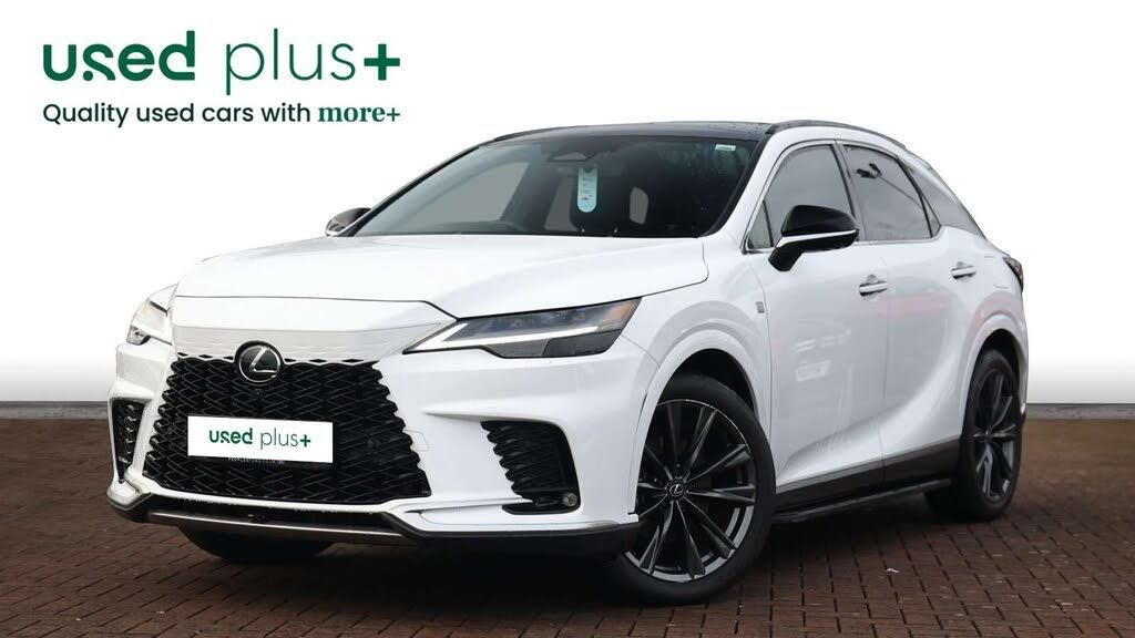 Step into the Lexus RX 450h+ F-Sport, where cutting-edge hybrid efficiency meets dynamic F-Sport design. This plug-in hybrid SUV delivers electrifying performance, with an E-Four automatic transmission, selectable drive modes, and intelligent VSC stability control for confidence on every road. Its striking exterior features F-Sport styling with satin silver and black accents, 21" gloss black alloy wheels, LED headlamps with cornering function, L-shaped rear light bar, and privacy glass all combining sportiness and presence. The power back door with kick sensor, roof rails, and panoramic view monitor add both convenience and safety. Inside, the RX 450h+ offers luxury and tech in harmony: smooth leather F-Sport seats with heating, ventilation, and driver memory function, 64-colour ambient interior lighting, 14" MM21 touchscreen with cloud navigation, wireless Apple CarPlay, wired Android Auto, Lexus Link connected services, 12-speaker audio, and multiple USB-C ports. Three-zone climate control, 40:20:40 split-folding rear seats, and rear ISOFIX anchors make it perfect for families or longer trips. Safety is uncompromising with Lexus Safety System+ 3, featuring pre-collision with day/night detection, lane tracing assist, lane change assist, front/rear cross traffic alert, dynamic radar cruise control, road sign assist, electronic parking brake, hill assist, and extensive airbags including front centre airbag. With wireless phone charging, intelligent clearance sonar, head-up display, and advanced driver monitoring, every journey is connected, comfortable, and safe. The Lexus RX 450h+ F-Sport is luxury, efficiency, and performance in one stunning SUV.-Step into the Lexus RX 450h+ F-Sport, where cutting-edge hybrid efficiency meets dynamic F-Sport design. This plug-in hybrid SUV delivers electrifying performance, with an E-Four automatic transmission, selectable drive modes, and intelligent VSC stability control for confidence on every road. Its striking exterior features F-Sport styling with satin silver and black accents, 21" gloss black alloy wheels, LED headlamps with cornering function, L-shaped rear light bar, and privacy glass all combining sportiness and presence. The power back door with kick sensor, roof rails, and panoramic view monitor add both convenience and safety. Inside, the RX 450h+ offers luxury and tech in harmony: smooth leather F-Sport seats with heating, ventilation, and driver memory function, 64-colour ambient interior lighting, 14" MM21 touchscreen with cloud navigation, wireless Apple CarPlay, wired Android Auto, Lexus Link connected services, 12-speaker audio, and multiple USB-C ports. Three-zone climate control, 40:20:40 split-folding rear seats, and rear ISOFIX anchors make it perfect for families or longer trips. Safety is uncompromising with Lexus Safety System+ 3, featuring pre-collision with day/night detection, lane tracing assist, lane change assist, front/rear cross traffic alert, dynamic radar cruise control, road sign assist, electronic parking brake, hill assist, and extensive airbags including front centre airbag. With wireless phone charging, intelligent clearance sonar, head-up display, and advanced driver monitoring, every journey is connected, comfortable, and safe. The Lexus RX 450h+ F-Sport is luxury, efficiency, and performance in one stunning SUV.