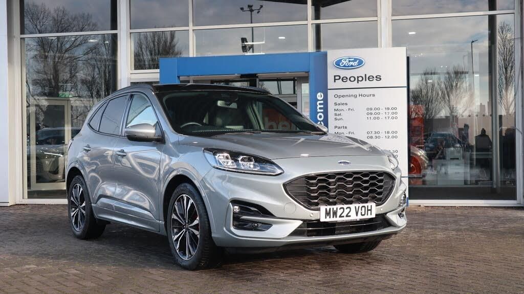 This 2022 Ford Kuga ST Line X Edition offers exceptional value with its remarkably low mileage of just 23,522 miles. This petrol hybrid model boasts a 2.5 litre engine and meets Euro 6 emissions standards. Inside, you'll find a host of desirable features designed for comfort and convenience, including heated rear seats, a heated steering wheel, and a power opening panoramic roof for an airy cabin experience. Parking is made easier with a rear view camera and front and rear parking sensors. This Kuga ST Line X Edition stands out with its impressive fuel economy of 51 miles per gallon, indicating it is more economical than many similar vehicles. Its acceleration from 0 to 62 miles per hour in 9.1 seconds shows a good balance of performance. Furthermore, its low insurance group rating suggests that running costs will be more affordable compared to other vehicles in its class.-This 2022 Ford Kuga ST Line X Edition offers exceptional value with its remarkably low mileage of just 23,522 miles. This petrol hybrid model boasts a 2.5 litre engine and meets Euro 6 emissions standards. Inside, you'll find a host of desirable features designed for comfort and convenience, including heated rear seats, a heated steering wheel, and a power opening panoramic roof for an airy cabin experience. Parking is made easier with a rear view camera and front and rear parking sensors. This Kuga ST Line X Edition stands out with its impressive fuel economy of 51 miles per gallon, indicating it is more economical than many similar vehicles. Its acceleration from 0 to 62 miles per hour in 9.1 seconds shows a good balance of performance. Furthermore, its low insurance group rating suggests that running costs will be more affordable compared to other vehicles in its class.