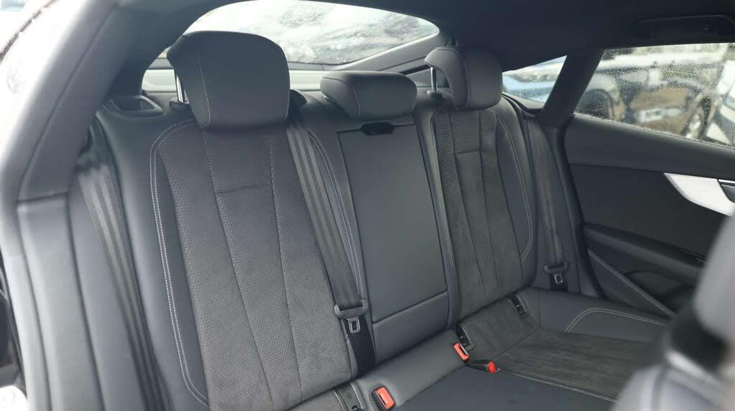 Audi connect safety and service (e-call), Audi drive select (Auto, Comfort, Dynamic, Efficiency and Individual), Audi parking system plus with front and rear sensors, Audi phone box with wireless charging, Audi smartphone interface, Audi virtual cockpit - 12.3" full colour digital instrument cluster,vehicle/engine speed,Radio/media information+Driver assistance systems, Automatic start-stop system with coasting functionality and efficiency programme, Bluetooth interface, Electro-mechanical power steering, Email, calendar and text messages displayed via MMI, MMI nav+ with MMI touch - 10.1" high resolution MMI display, touch sensitive, 3D map, route/country info, dynamic route guide, personal route assist, Power operated tailgate, Rear view camera, Service interval indicator, Voice control system, Diesel particulate filter, Sports suspension lowered by 23mm, 8 passive loudspeakers, CD player, DAB digital radio reception, Two additional USB ports for rear passenger in rear centre console, Two SDXC card slots, Audi matrix LED headlights with LED rear lights + dynamic front and rear indicators, Auto dimming rear view mirror, Body colour bumpers, Body colour door handles, Body colour front spoiler lip, Body colour side sill trim, Body coloured door mirrors, Electric adjustable heated door mirrors, Electric folding door mirrors, Electric front windows, Front fog lights, Honeycomb structure radiator grille in grained matt black, Matt aluminium silver tailpipe trim, Privacy glass, Rain and light sensors, S line badges on front wings, S line front and rear bumpers with side skirts, S Line rear diffuser in matt titanium black with trim strip in matt aluminium silver, Side air inlets in grained matt black with matt aluminium silver inlay, Towbar preparation, Windscreen with acoustic glazing, 4 way electric lumbar support for driver and front passenger, 40/20/40 split folding 3 seater rear bench seat, Adjustable steering column, Black cloth headlining, Black perforated leather gearknob, Contrast stitching on seats, steering wheel and gear lever gaiter, Deluxe 3 zone electronic climate control, Front centre armrest, Front head restraints, Front/rear floor mats, Heated front seats, Illuminated door sill trim with S logo, ISOFIX child seat mounting and top tether, Luggage compartment mat, Manual seat adjustment, Rear headrests, Stainless steel pedals, Sunvisors with vanity mirrors, LED interior light pack - A5/RS5, 3x3 point rear seatbelts, 6 airbags - Driver, front passenger, curtain and side airbags, Electromechanical parking brake, Electronic Stabilisation Control (ESC) including ABS, ASR and EDL, Front passenger airbag deactivation, Height adjustable front seatbelts, Hill hold assist, Multi collision brake assist, Pop-up bonnet for pedestrian protection, Seatbelt monitoring, Tyre pressure warning, Variable restraint system, Warning triangle and first aid kit, Anti theft alarm system, Anti theft wheel bolts, Immobiliser, Keyless Go, Remote central locking, Matt brushed aluminium inlays, Tool kit, Tyre repair kit