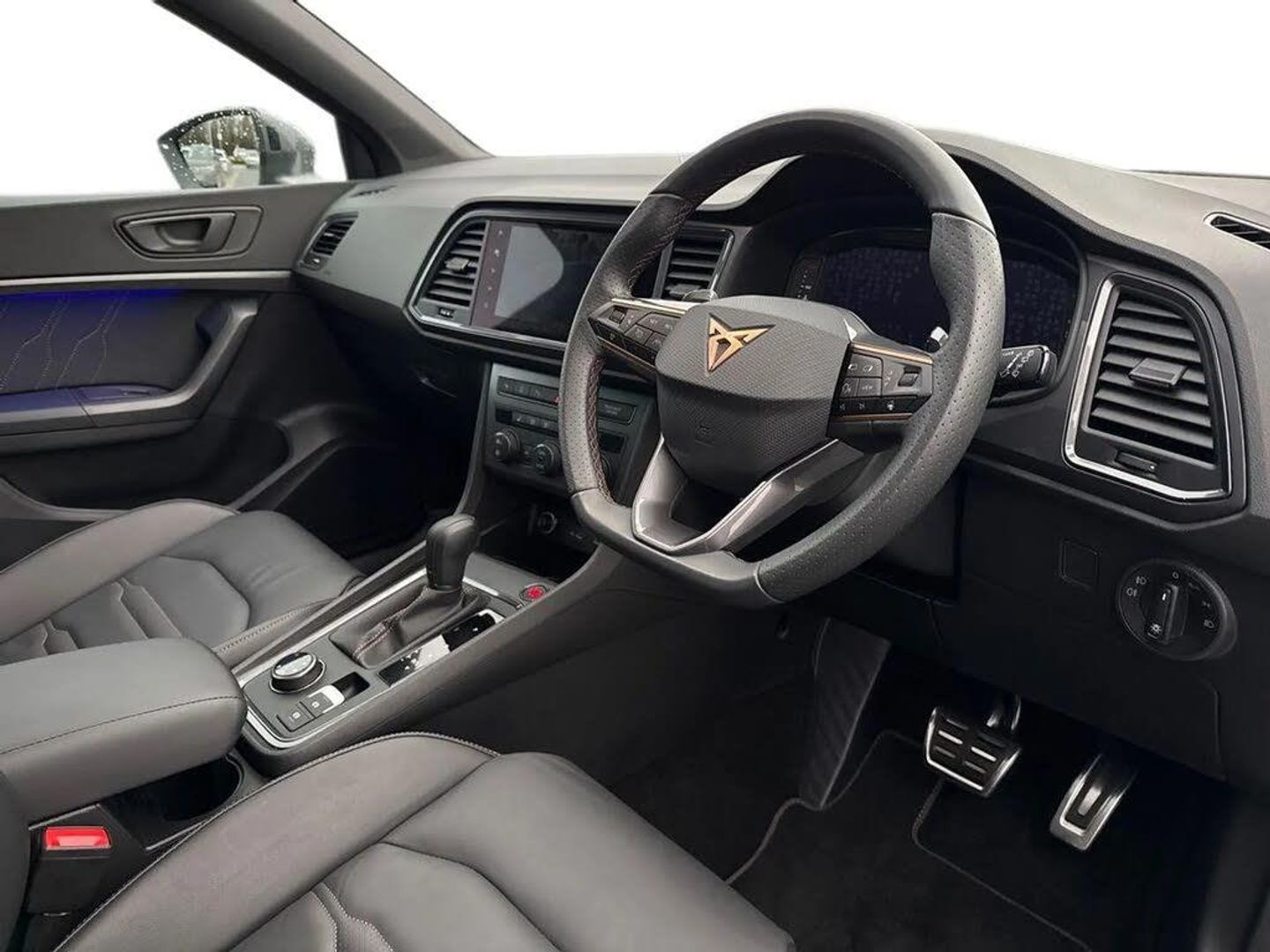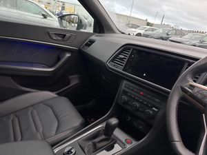 Dark tinted rear windows,Front and rear electric windows,Rear wash/wipe,CUPRA sport suspension,Body colour bumpers with dark aluminium diffusor,Body coloured wheel arch surrounds,Front grille frame in chrome,Gloss black roof rails,Gloss black side mouldings,Gloss black side window trim,Illuminated aluminium front door sill,Rear side wing doors,Rear spoiler,Specific CUPRA design front bumper,Visible twin black exhaust pipes in both sides,Daytime running lights,Dynamic headlight range control with self adjusting whilst driving,Full LED headlamps with lens and LED front fog lamps with cornering function,LED rear tail lights with dynamic indicators,Rear fog lights,Third brake light,ABS,Traction control system (TCS),Electronic stability control (ESC) and Electronic differential lock system (XDS),Black brake callipers with CUPRA logo,Electric parking brake with auto hold function,Hill hold control,CUPRA drive profile - Normal,sport,CUPRA and individual modes and Hydraulic damper control (DCC),Front and rear view camera,Progressive power assisted steering,Self parking functionality (includes front and rear parking sensors),Top view camera,Door mirrors with welcome CUPRA light silhouette,Electric adjustable/heated/folding door mirrors,Gloss black door mirrors,3x3 point rear seatbelts,Airbags - Driver and front passenger airbag with deactivation,front side,two curtain and driver's knee airbags,Attention and drowsiness assist,Front and rear seatbelt reminder,Manual rear child locks,Single tone horn,Tiredness recognition system,Tyre pressure monitoring system,Tyre pressure warning light,E-call,wired and wireless full link smartphone integration,Steering wheel mounted audio/phone controls,Electric tailgate with virtual pedal,Wireless phone charger,Digital cockpit,Outside temperature gauge,Trip computer,Dual zone climate control,12v socket in front,Aluminium pedals,Black roof lining,Cupra steering wheel emblem,Front centre armrest,Heated steering wheel,Leather sport bucket seats,Leather steering wheel and gear knob,Pedal cluster,Sports steering wheel,Steering wheel mounted gearshift paddles,Storage compartment in roof console for sunglass,Storage compartment under driver's seat,Multicoloured ambient lighting with LED interior illumination,Convenience pack - Ateca,Interior lighting pack - Ateca,Navigation system plus pack with DAB - Ateca,Safe and driving pack with High beam control - Ateca,3 seat bench in 2nd row,60/40 split folding rear seat,Electric driver seat with memory function,Front and rear head restraints,Front seat back storage pockets,Heated front seats,Height adjustable driver and passenger seat with lumbar adjustment,ISOFIX points in outer rear seats with top tether anchorage points,Rear armrest and easy back seat release mechanism from boot,Single front passenger seat,Alarm,Keyless entry,Locking wheel bolts