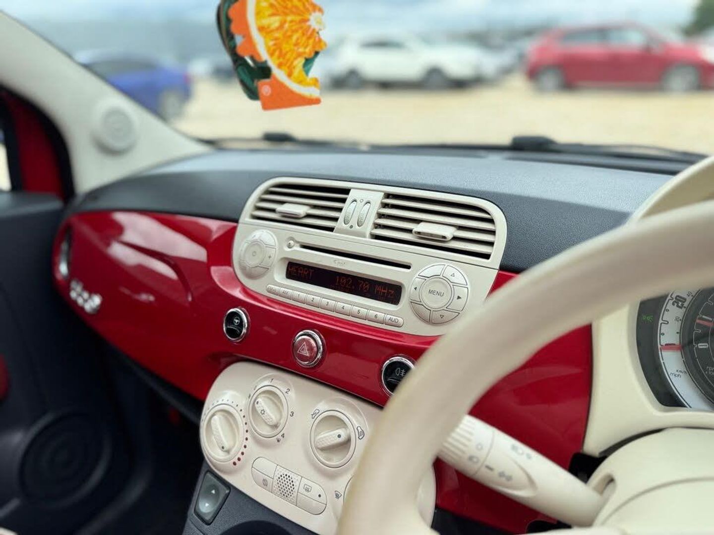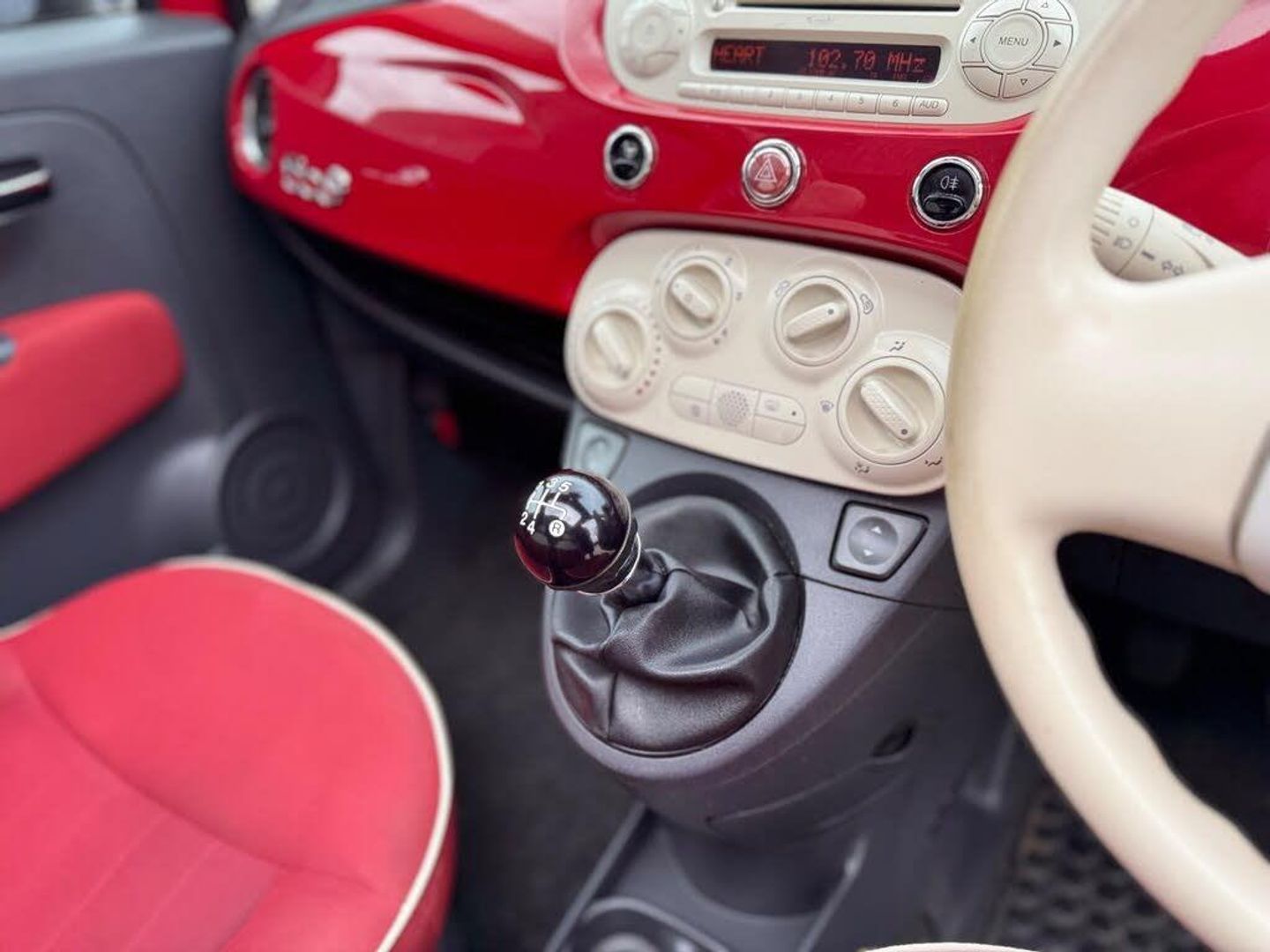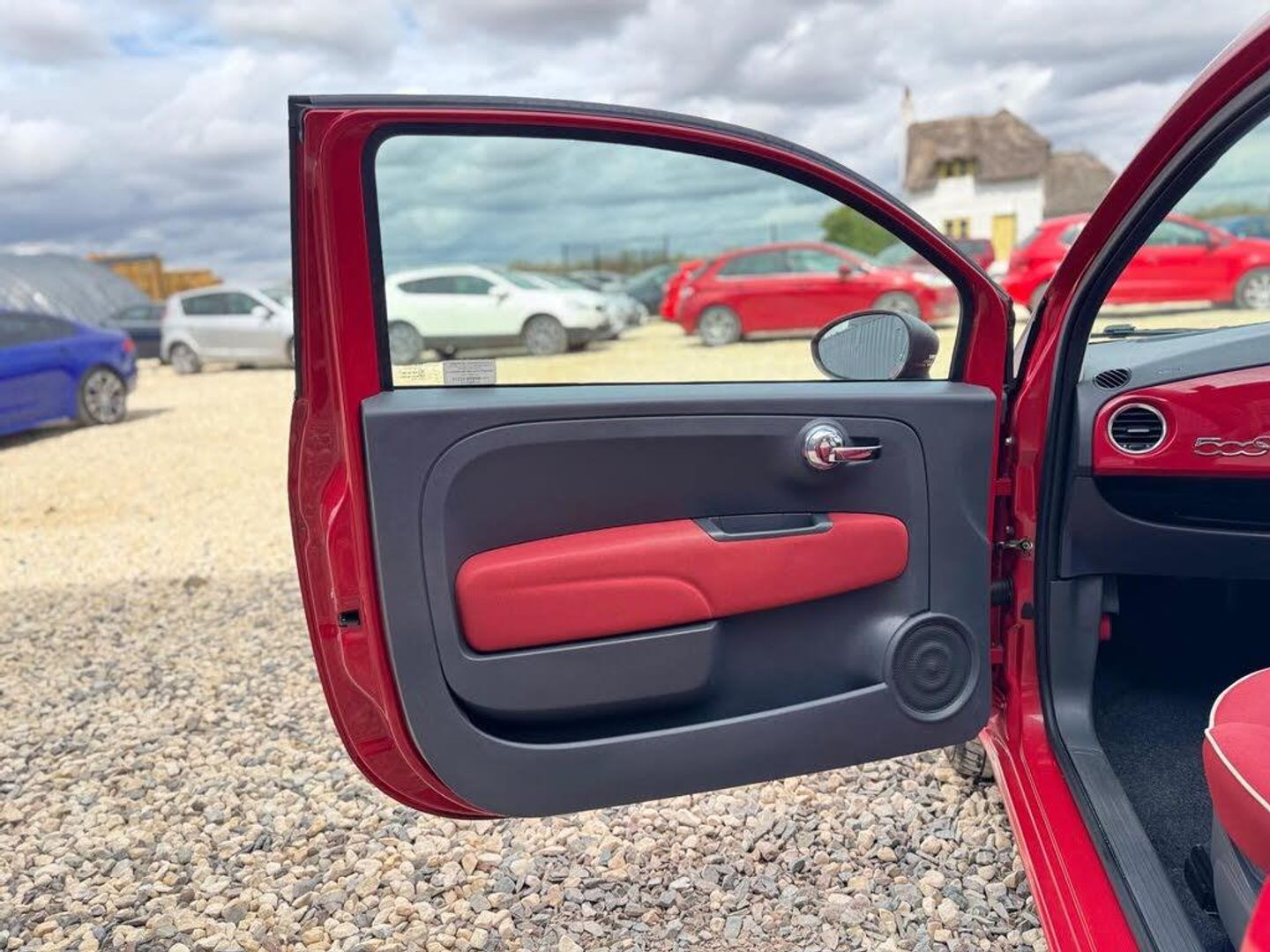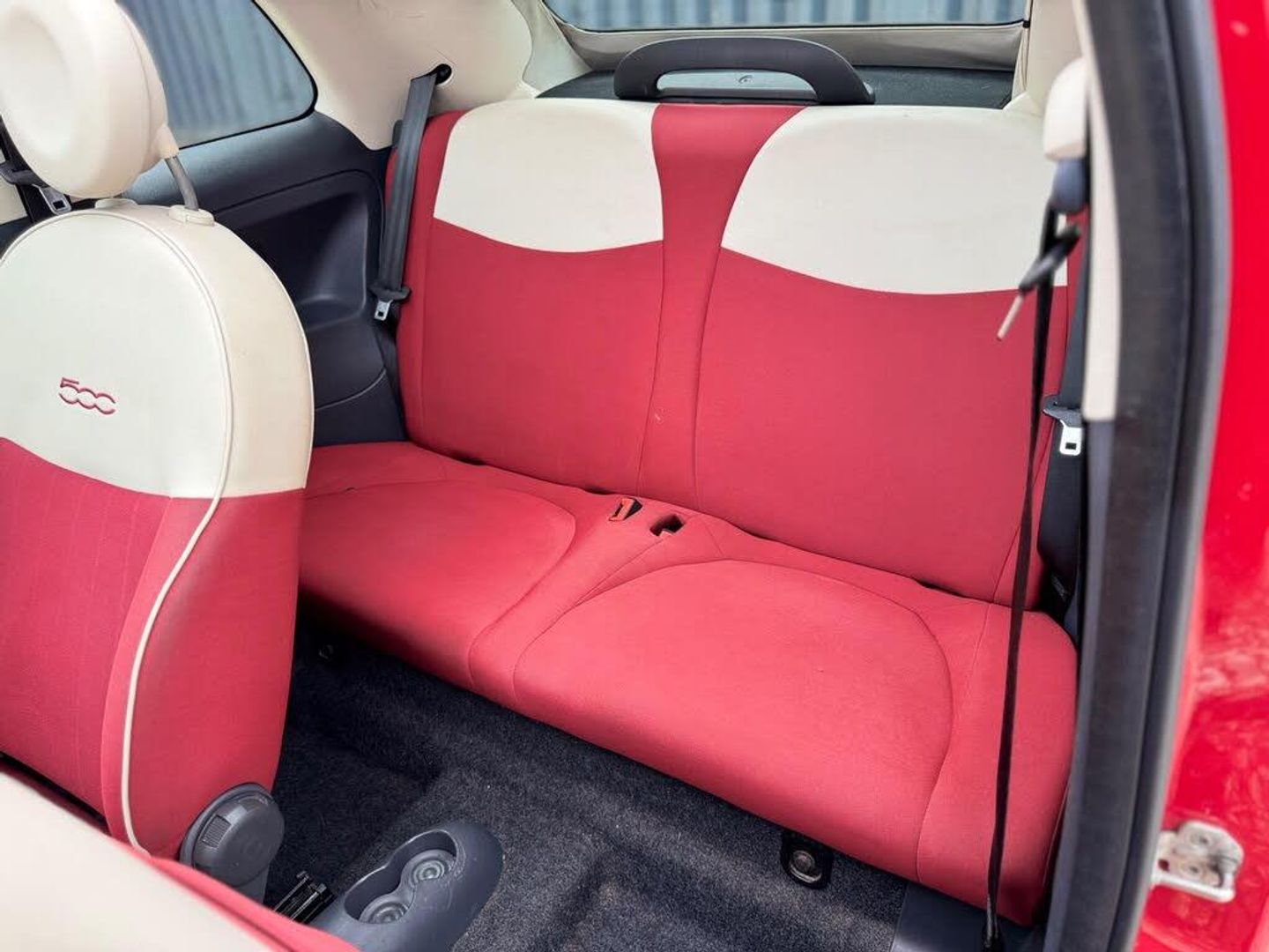 14in Steel Wheels, 14in Vintage Wheel covers, 6 Speakers, Air Conditioning, Black ambience, Black door mirrors, Black soft- top, Folding Rear Seatbacks, Front Passenger underseat box, Ivory ambience, Ivory soft top, Red soft top, Blue & Me with USB port, ESP & ASR & MSR & HBA & Hill holder, Front FogLights, Chrome Pack- 500C, 50:50 Split folding Rear Seats & 2 upholstered Rear headrests, Cloth- Pop- Red with Ivory ambience, Cigar Lighter, Cloth- Pop