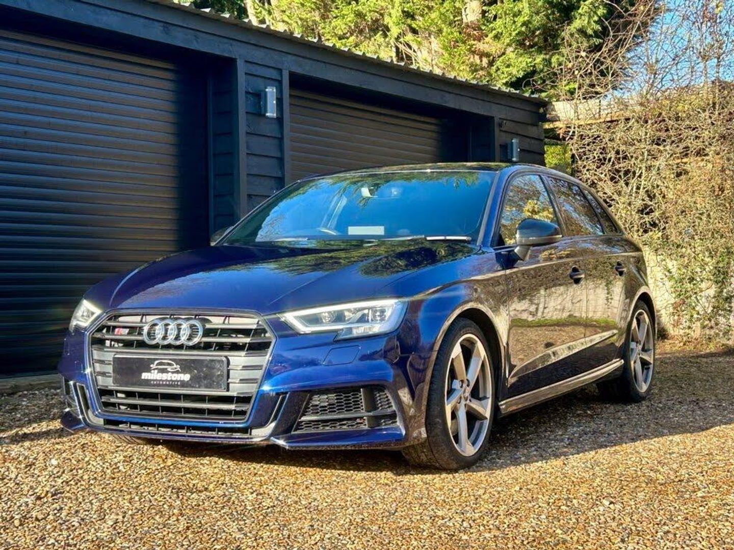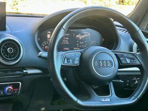 Bang and Olufsen Sound System, Navarra Blue, Fine Nappa Leather - S Embossed Sports Seats - Black with Rock Grey Stitching, Tool Kit and Car Jack, Split Folding Rear Seat Bench, Space Saver Spare Wheel, 18in Alloy Wheels - 5-Arm Trapezoid Design Audi Sport in Gloss Anthracite Black - Diamond Cut Finish, 2 x USB Charging Ports and 1 x AUX-IN, 6-Airbag System with Knee Airbag for Driver, Aluminium Interior Elements, Anti Theft Locking Wheel Bolts, Anti-Theft Alarm, Audi Beam, Audi Connect, Audi Connect Infotainment Services - 3 Month Trial, Audi Drive Select, Audi Smartphone Interface, Auto-Dimming Rear-View Mirror with Light and Rain Sensor, Black Styling Package, Bluetooth Interface, Brake Calipers Painted in Black with S3 Logo at the Front, CD Drive, Cloth Headlining, Colour Drivers Information System - DIS, Cruise Control, DAB Digital Radio, Door Mirrors - Black Housing, Door Mirrors - Electrically Adjustable and Heated with Integrated LED Side Indicators, Dual-Zone Electronic Climate Control, ESC - Electronic Stabilisation Control inc ABS - ASR and EDL, Electric Windows - Front and Rear, Electromechanical Parking Brake, Exhaust Tailpipe - Dual-Branch Oval Twin with Chrome Finish, First Aid Kit and Warning Triangle, Front Centre Armrest, Front and Rear Floor Mats, Headlights Washers, Heated Front Seats, Heated Windscreen Washer Jets, Hill Hold Assist, ISOFIX Child Seat Mounting and Top Tether, Illuminated Door Sill Trims with S Logo, Inlays - Matt Brushed Aluminium, Instrument Dials with S3 Logo, LED Headlights with LED Rear Lights and Dynamic Rear Indicators, LED Interior Light Package, Lashing Points in Luggage Compartment, MMI Navigation - SD Card Based, MMI Radio Plus with 7in Electrically Retractable Colour MMI Screen, Manual Seat Adjustment, Non-Smoking Package, Pedals in Stainless Steel, Privacy Glass, Progressive Steering, Rear Parking Sensors, Remote Central Locking with 2 Fold Away Keys, S Design Body Styling, S Sport Suspension, Seat Belt Monitoring, Split Folding Rear Seat Bench - 60-40 or Fully, Steering Wheel - 3-Spoke Leather-Multifunction-Flat Bottomed-Shift Paddles, Storage Compartments in the Door Side Trims-Centre Console-Under Drivers Seat, Storage Package, Tool Kit, Tyre Pressure Warning Light, Tyre Repair Kit
