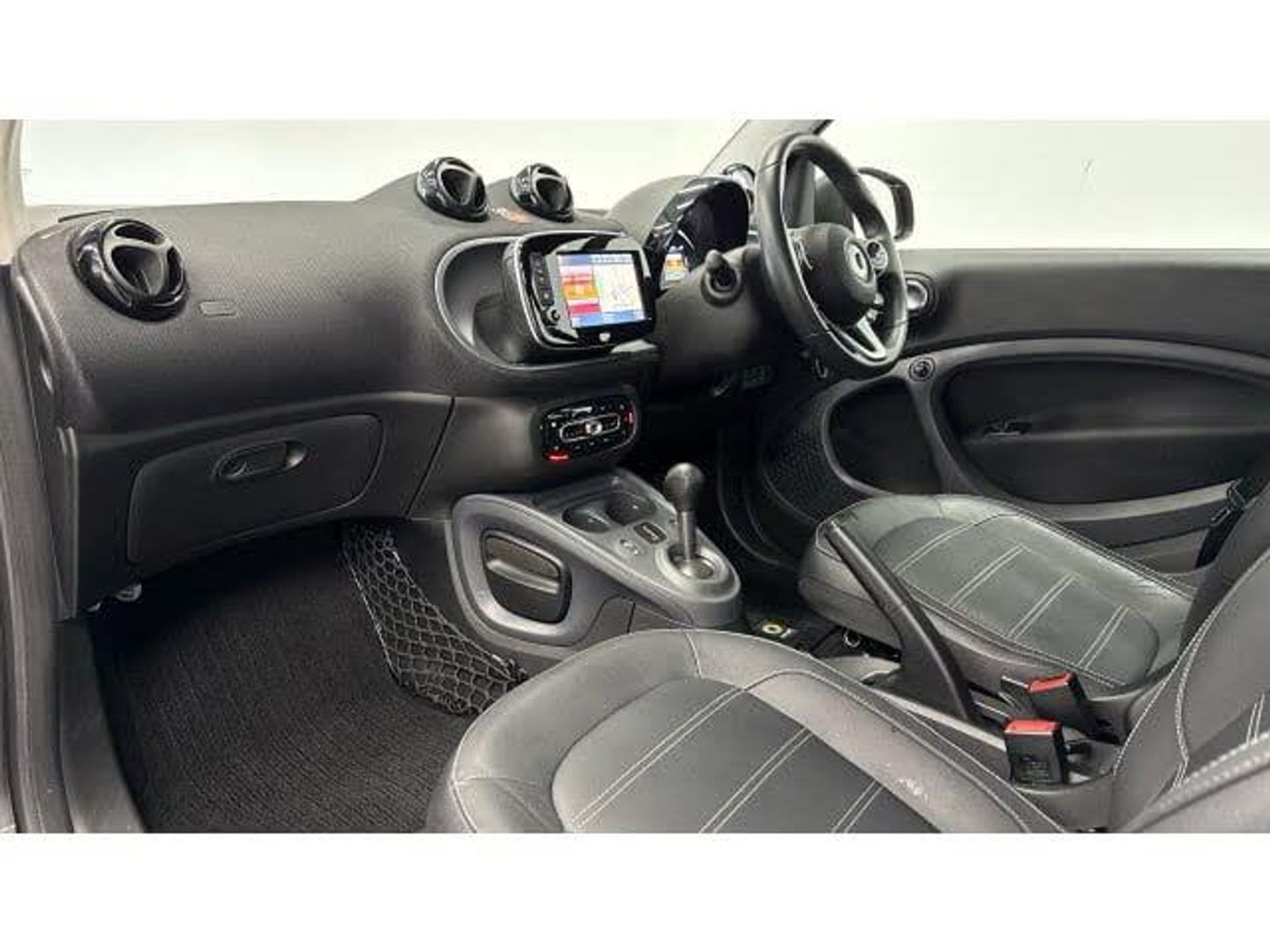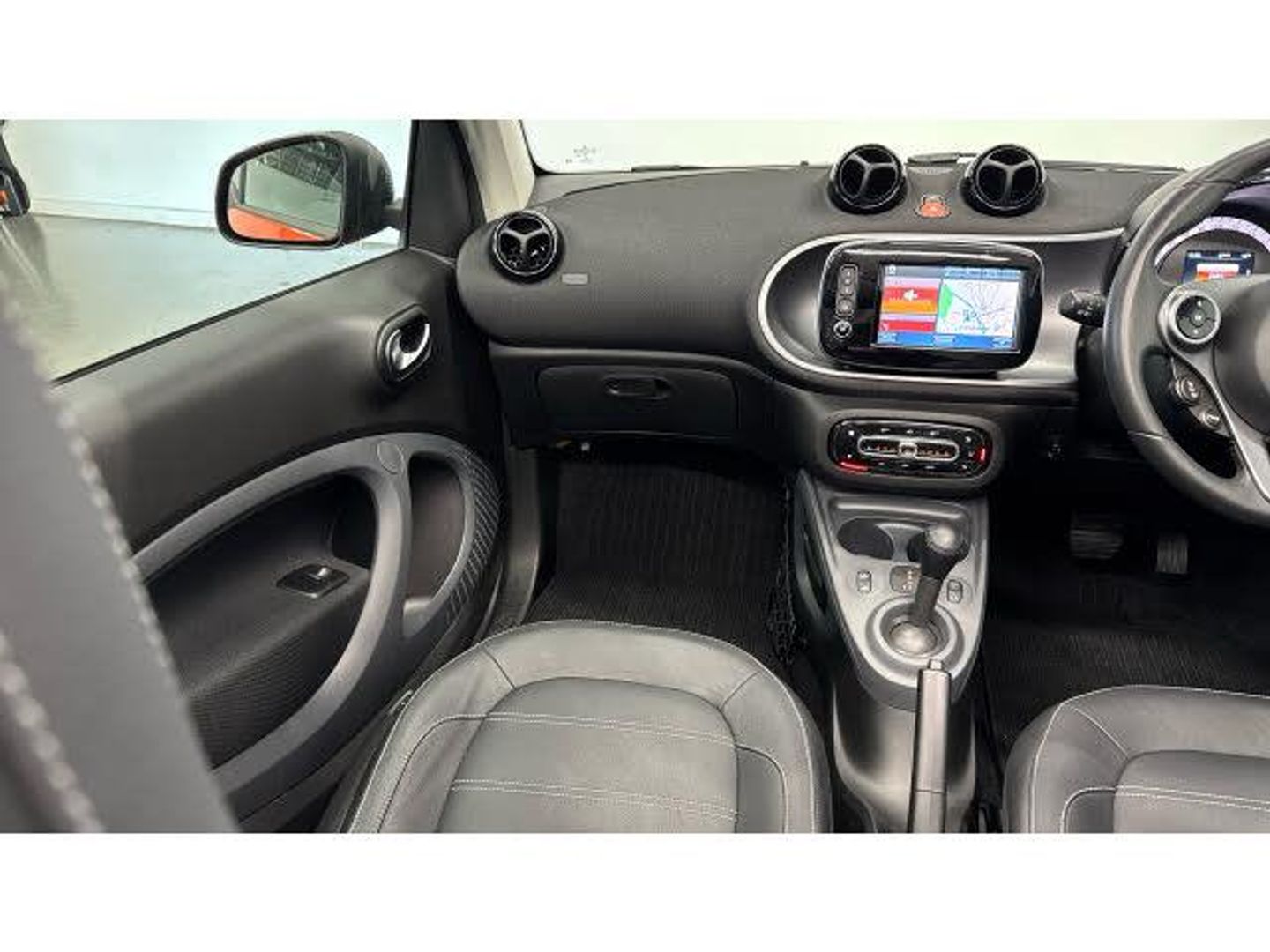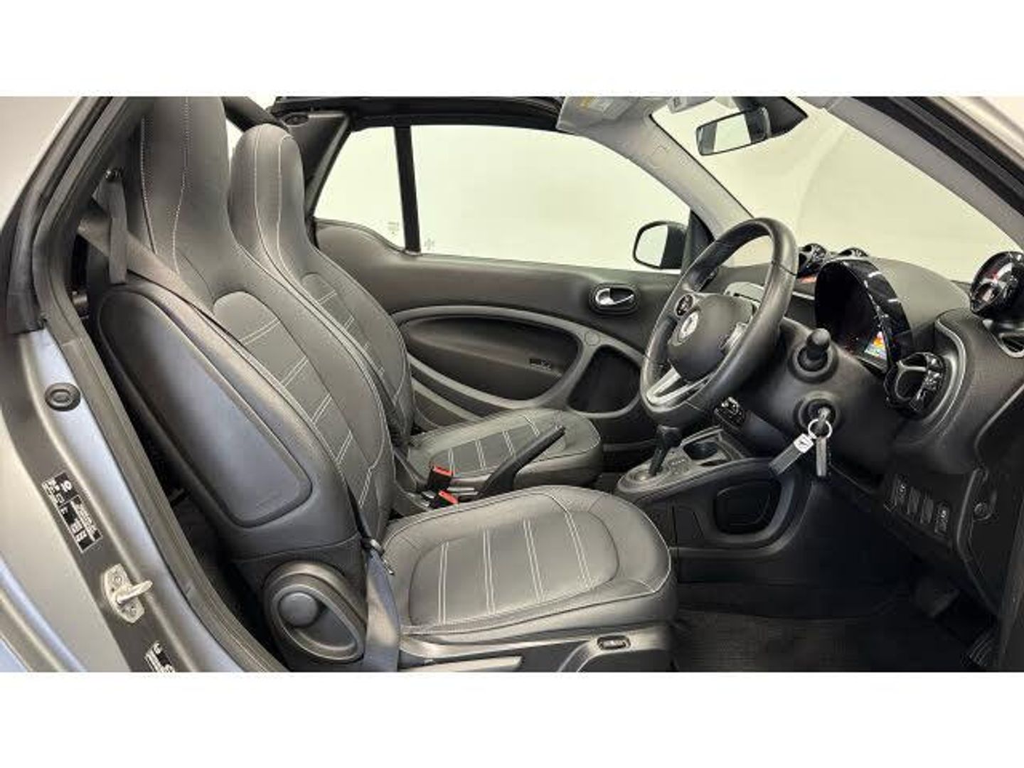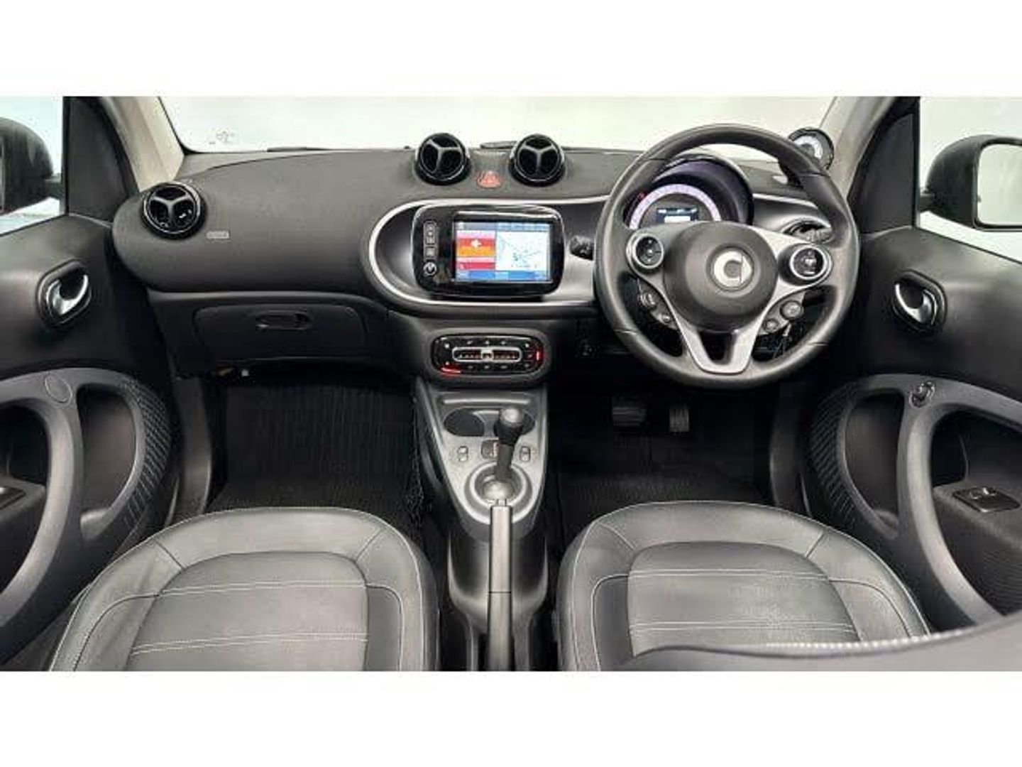 Electric front windows, Electronic Stability Programme, Voice recognition for smartphones, Rear parking sensors, Automatic start/stop system, Seatbelt reminder for driver and front passenger, Door mirror with aspherically curved mirror glass on the driver's side, Smart media system - smartphone, 7" display, FM/AM tuner, AUX/USB, voice control, bluetooth hands free, audio streaming, 3D navigation and 2 speakers, Black front grille, Third brake light, Automatic climate control, 12V socket with cover, Interior lighting incl. reading light for driver and passenger, Stowage space package - ForTwo, Airbags - sidebags for driver and front passenger (combined head/thorax airbags), Map pockets on driver and passenger seatbacks, Remote roof release with 3 button comfort key, Twinamic 6-speed dual clutch automatic transmission, Sunvisors with vanity mirrors, Breakdown kit with air compressor and sealant back