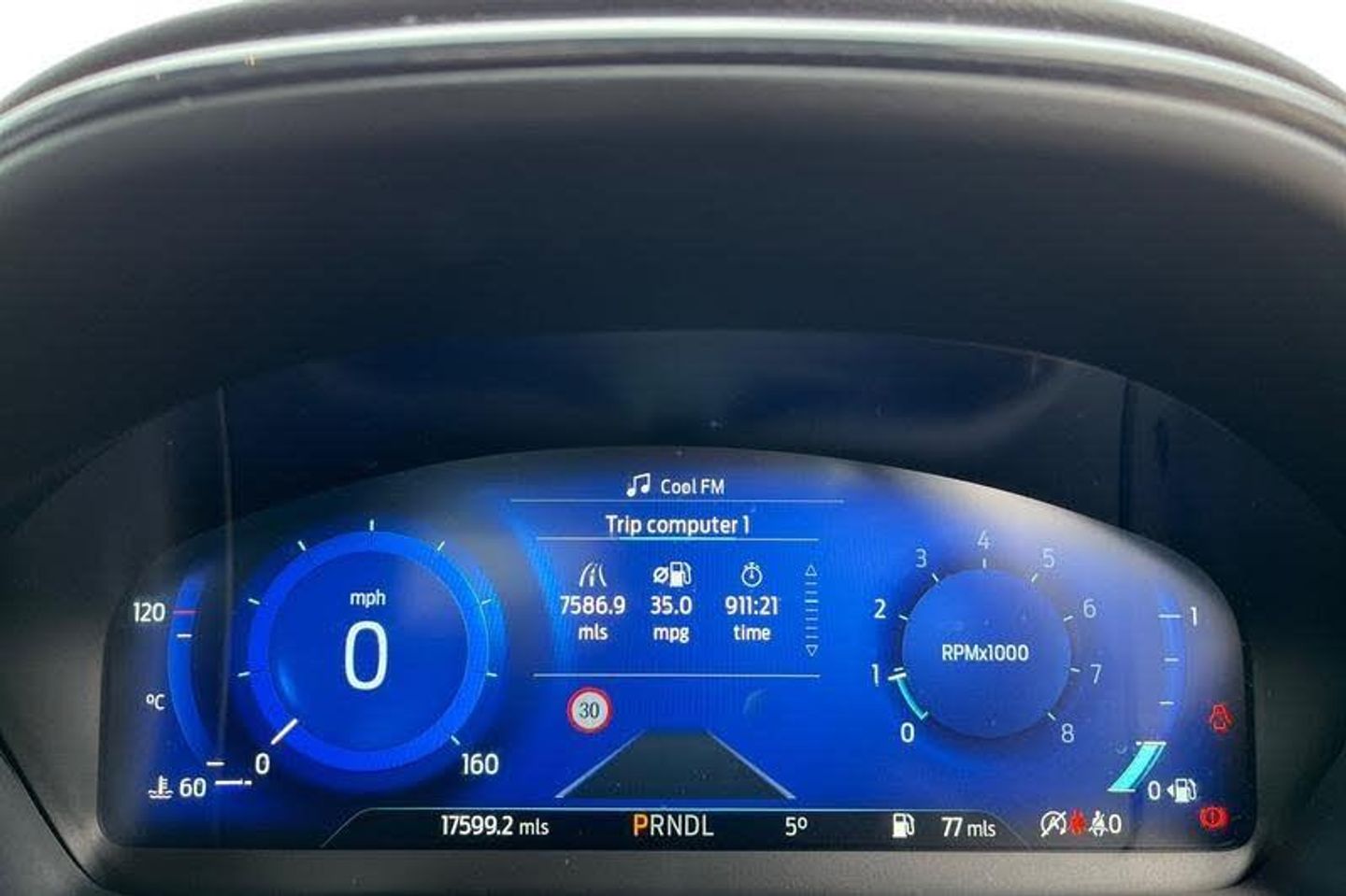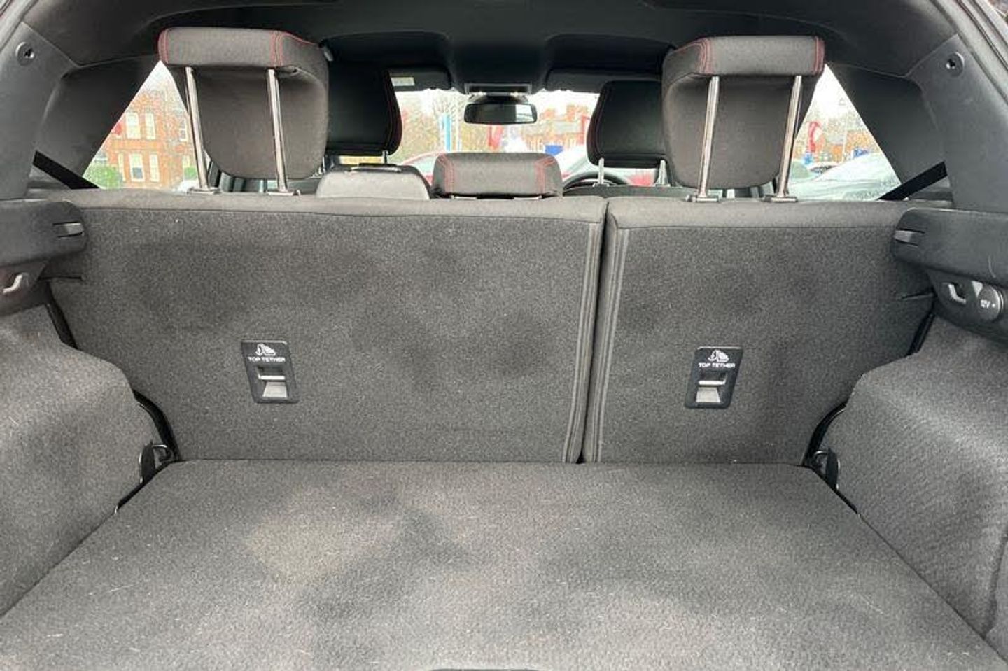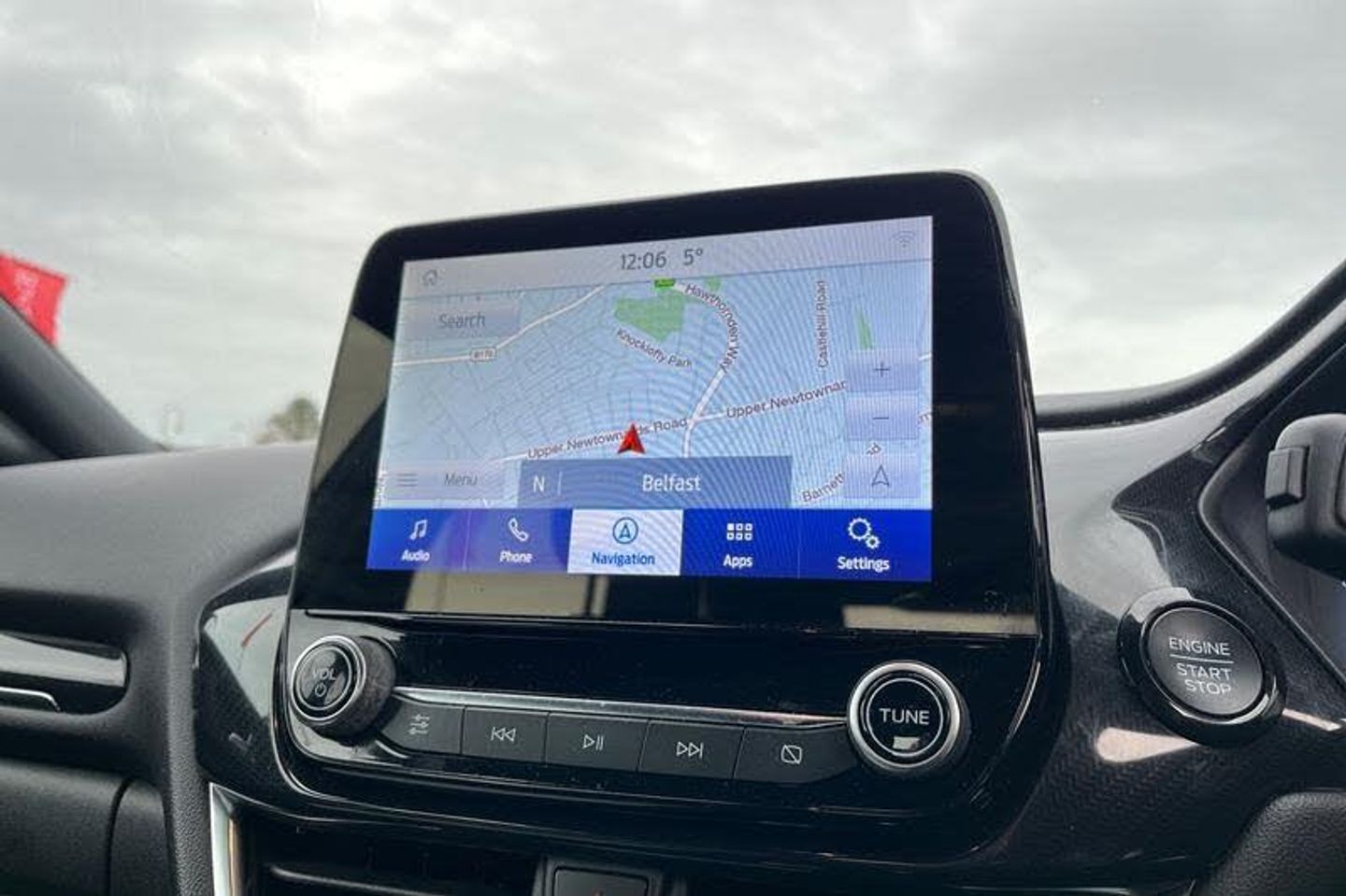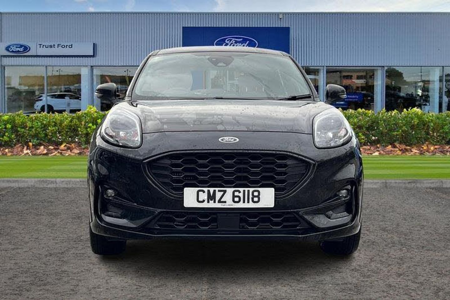 Driver impairment monitor, Emergency call service, Ford easy fuel, Full digital 12.3 instrument cluster, Lane keeping aid with lane departure warning, Power assist steering, Power start button, Rear parking sensor, Selectable drive modes(Normal, Eco, Sport, Slippery and Trail), Speed sign recognition, Automatic headlights with auto high beam, Automatic rain sensing wipers, LED rear lamps, Power foldable heated door mirrors with puddle lamps, Projector headlamps with LED day time running lights and front fog lamps, Quickclear heated windscreen, Rear side wing doors, Rear wiper, ST-Line body styling kit with unique grille, Third brake light, 3 seat bench in 2nd row, Centre console with armrest and stowage, Ford megabox extended bootspace, Front and rear head restraints, Front floor mats, Manual 2 way passenger seat adjustment, Manual 4 way driver seat adjust with lumbar adjustment, Single front passenger seat, ST- Line cloth trim with red stitching, ST-Line flat bottomed sensico leather steering wheel with leather handbrake and aluminium gear knob, 3 rear seatbelts, Child safety lock, Electronic stability control (ESC) and hill start assist, Pedestrian/cyclist detection & post-collision braking, Pre collision assist system, Tyre pressure monitoring system (TPMS)