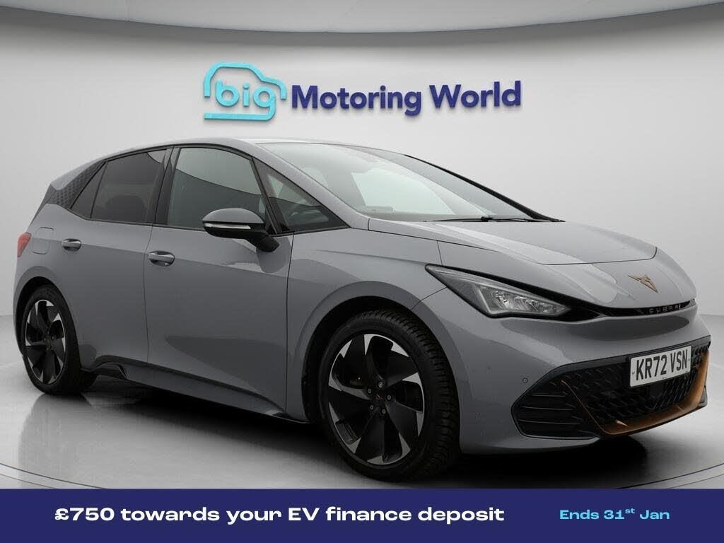 Head up Display,19'' Alloy whee-Our CUPRA Born is finished in Grey. Specification includes a range of fantastic features including Head up Display, 19'' Alloy wheels, Apple CarPlay, Lane Assist, Android Auto, Satellite Navigation, Privacy Glass, Heated Seats, Rear View Camera, Heated Steering Wheel Specification information is supplied by CAPHPI and may vary to the actual car. This data does not form any part of a buying contact. Please check specification prior to purchase in-store. The MOT is valid until December 2026, visit bigmotoringworld.co.uk for more photos, a 360 tour, service history and a free HPI report.Were BIG on peace of mind and this Grey CUPRA Born has completed our comprehensive 200 point inspection and passed all checks. Its ready for you to drive away with immediate collection in-store. We include a 90-day warranty as standard plus an option to extend for up to 3 years.Reserve this car exclusively for you, safely and securely at bigmotoringworld.co.uk, with a fully refundable £99 deposit. Test drive before you buy, with no commitment, no hassle and a completely haggle free experience. Still searching and want to see thousands more cars? We are BIG on choice with over 8000 cars to choose from.Visit our award winning web site bigmotoringworld.co.uk.Were Big Motoring World and were BIG on what matters to you.