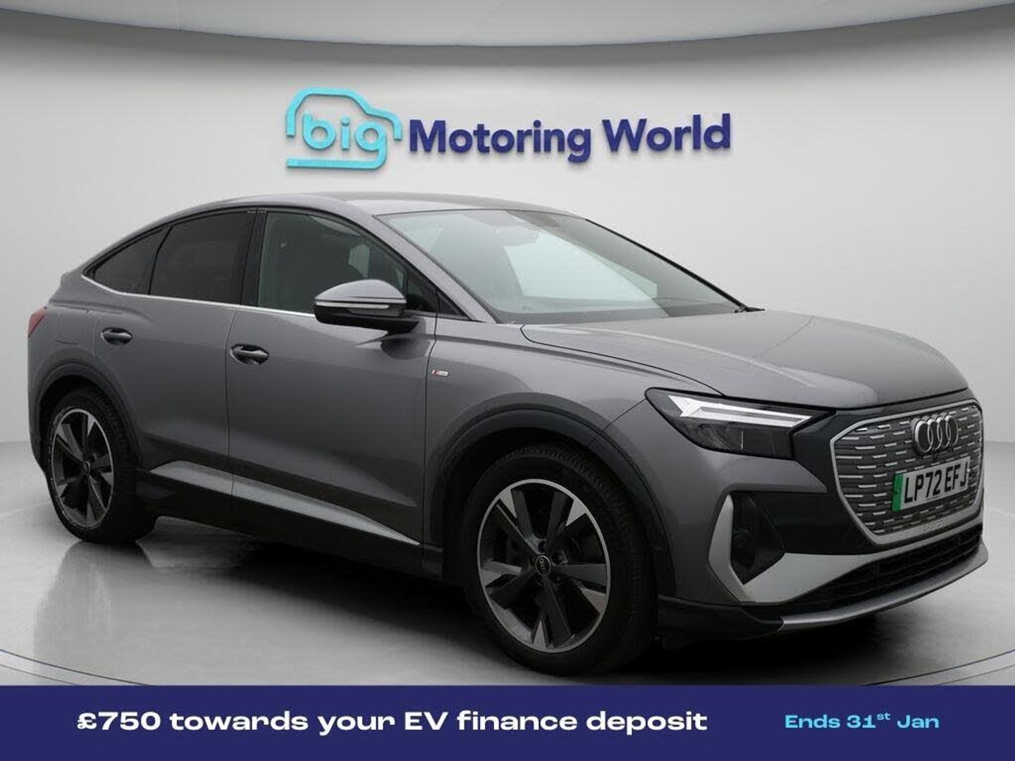 £750 towards your finance depo-Our Audi Q4 e-tron is finished in Grey. Specification includes a range of fantastic features including £750 towards your finance deposit, Digital Cockpit, Privacy Glass, Heated Seats, Virtual Cockpit, Rear View Camera, Bluetooth, Audi Connect, 3 Zone Climate, Keyless Go Specification information is supplied by CAPHPI and may vary to the actual car. This data does not form any part of a buying contact. Please check specification prior to purchase in-store. The MOT is valid until December 2026, visit bigmotoringworld.co.uk for more photos, a 360 tour, service history and a free HPI report.Were BIG on peace of mind and this Grey Audi Q4 e-tron has completed our comprehensive 200 point inspection and passed all checks. Its ready for you to drive away with immediate collection in-store. We include a 90-day warranty as standard plus an option to extend for up to 3 years.Reserve this car exclusively for you, safely and securely at bigmotoringworld.co.uk, with a fully refundable £99 deposit. Test drive before you buy, with no commitment, no hassle and a completely haggle free experience. Still searching and want to see thousands more cars? We are BIG on choice with over 8000 cars to choose from.Visit our award winning web site bigmotoringworld.co.uk.Were Big Motoring World and were BIG on what matters to you.