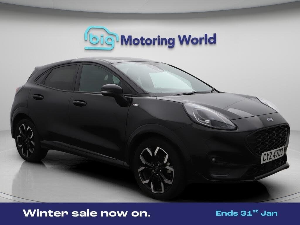 Ford SYNC,Privacy Glass-Our Ford Puma is finished in Black. Specification includes a range of fantastic features including Ford SYNC, Privacy Glass, Parking Sensors, Flat Bottom Steering Wheel, Lumbar Support, LED daytime running lights, Rain Sensing Wipers, Rear Spoiler, Front fog lights, Rear Wiper Specification information is supplied by CAPHPI and may vary to the actual car. This data does not form any part of a buying contact. Please check specification prior to purchase in-store. The MOT is valid until March 2028, visit bigmotoringworld.co.uk for more photos, a 360 tour, service history and a free HPI report.Were BIG on peace of mind and this Black Ford Puma has completed our comprehensive 200 point inspection and passed all checks. Its ready for you to drive away with immediate collection in-store. We include a 90-day warranty as standard plus an option to extend for up to 3 years.Reserve this car exclusively for you, safely and securely at bigmotoringworld.co.uk, with a fully refundable £99 deposit. Test drive before you buy, with no commitment, no hassle and a completely haggle free experience. Still searching and want to see thousands more cars? We are BIG on choice with over 8000 cars to choose from.Visit our award winning web site bigmotoringworld.co.uk.Were Big Motoring World and were BIG on what matters to you.-Multi Award Winning Website & Car Supermarket of the year WINNER 2018. Call now.