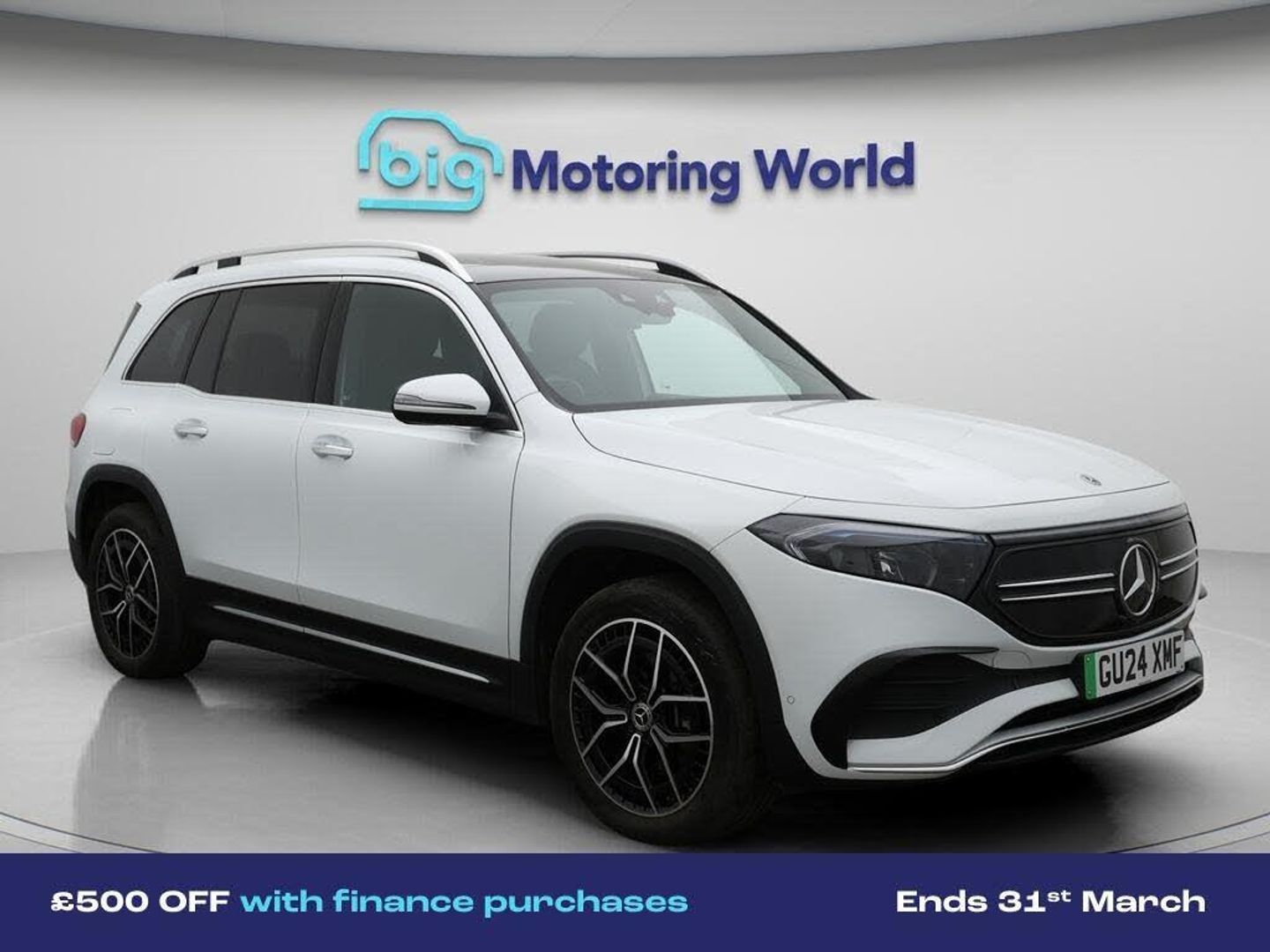 £500 towards your finance depo-Our Mercedes-Benz EQB is finished in White. Specification includes a range of fantastic features including £500 towards your finance deposit, Comfort Pack, AMG Night Pack, All Wheel Drive, 19'' Alloy wheels, Part Leather Seats, Apple CarPlay, Burmester Speakers, AMG body styling, Parking Pack Specification information is supplied by CAPHPI and may vary to the actual car. This data does not form any part of a buying contact. Please check specification prior to purchase in-store. The MOT is valid until April 2027, visit bigmotoringworld.co.uk for more photos, a 360 tour, service history and a free HPI report.Were BIG on peace of mind and this White Mercedes-Benz EQB has completed our comprehensive 200 point inspection and passed all checks. Its ready for you to drive away with immediate collection in-store. We include a 90-day warranty as standard plus an option to extend for up to 3 years.Reserve this car exclusively for you, safely and securely at bigmotoringworld.co.uk, with a fully refundable £99 deposit. Test drive before you buy, with no commitment, no hassle and a completely haggle free experience. Still searching and want to see thousands more cars? We are BIG on choice with over 8000 cars to choose from.Visit our award winning web site bigmotoringworld.co.uk.Were Big Motoring World and were BIG on what matters to you.