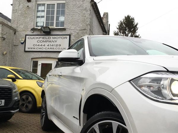 Cuckfield Motor Company are delighted to offer for sale this very well presented and highly specified BMX X6 3.0d M Sport Ed X Drive. This car has recorded Services at 17873, 34406 and 45911 miles. Specification includes Carbon Fibre Trim---Sun Protection Glass---Electric Glass Roof---Heated Front & Outer Rear Seats---Heated Steering Wheel---Heads Up Display---Memory Drivers Seat---Tow Bar---Sat Nav---Bluetooth Phone & Audio---21'' Alloy Wheels---Harmon Kardon---Rear View Camera with Surround View---Front & Rear Parking Sensors---Paddle Shift---Electric Tailgate---CD & DAB---USB & AUX and more.