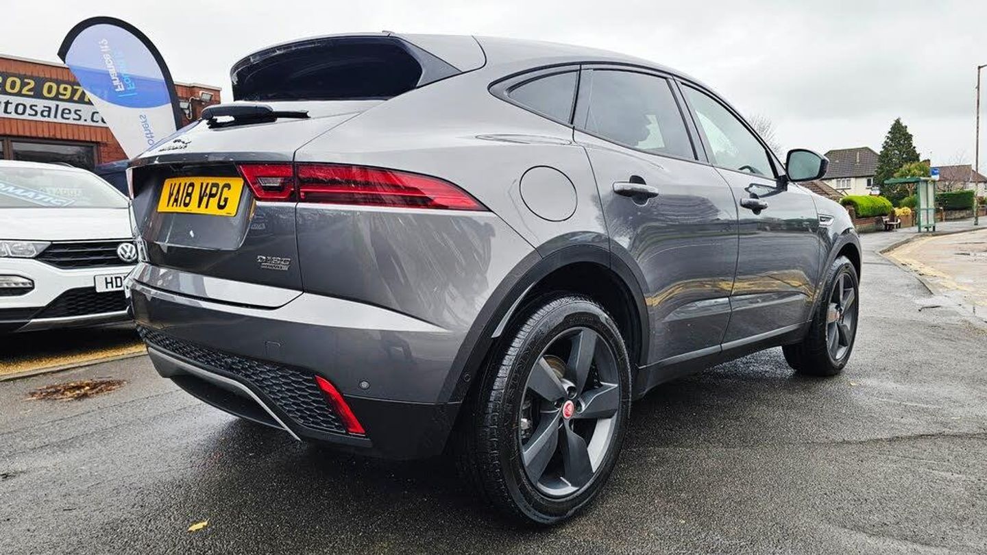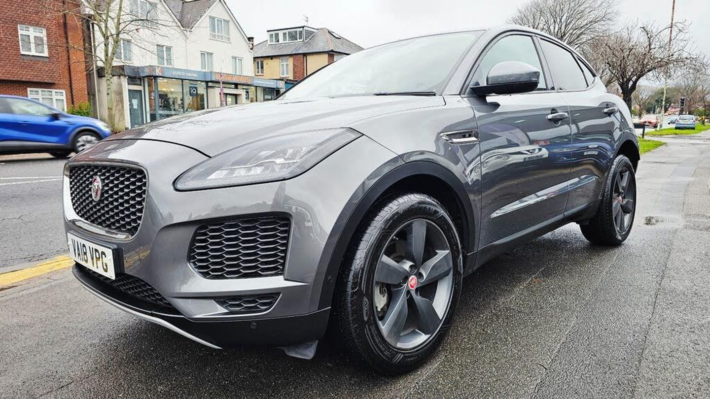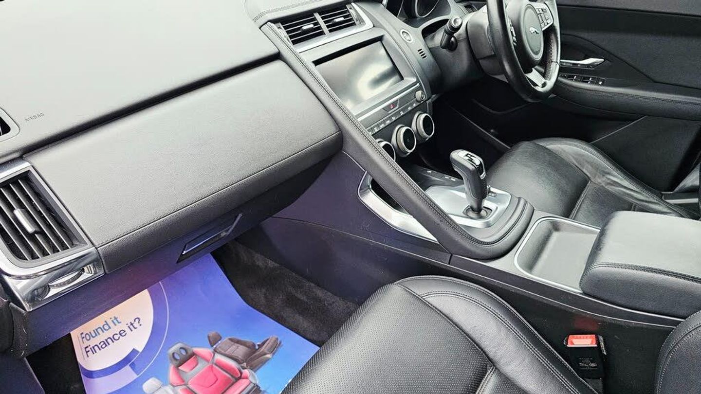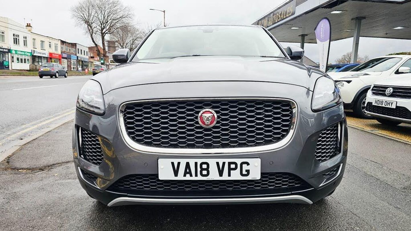 SPEC TO INCLUDE 2 KEYS, REMOTE CENTRAL LOCKING, ELECTRIC WINDOWS AND MIRRORS, POWERFOLD MIRRORS, AUTO LIGHTS, MULTI FUNCTION STEERING WHEEL, ON BOARD TRIP COMPUTER, CRUISE CONTROL, VOICE COMMAND, START/STOP, 12V CHARGE PORT, CUP HOLDERS, LARGE MEDIA TOUCHSCREEN, DAB RADIO, USB, AUX, BLUETOOTH, AUDIO, REVERSE CAMERA, SATELLITE NAVIGATION, APPLE AND ANDROID CONNECTION, DRIVE SELECT, HEATED SCREENS, FULL LEATHER INTERIOR, ELECTRIC SEATS, ISOFIX SEATS, PRIVACY GLASS, FRONT AND REAR PARKING SENSORS, LARGE BOOT AND ALLOY WHEELS. PART EXCHANGE WELCOME AND FINANCE AVAILABLE. This 2018 Jaguar E-Pace 2.0 D180 S SUV is a sturdy diesel-powered vehicle with only 32378 miles on the clock. It boasts a 5-door, 5-seat configuration and is ULEZ compliant, making it suitable for urban driving. With an MOT that doesn't expire until 22/08/2026, this SUV offers peace of mind for the future. It also comes equipped with AWD and a Euro 6 (s/s) engine with 180 ps, ensuring reliable performance and efficiency. This stylish and practical SUV is perfect for those in search of a spacious and capable vehicle for all their driving needs.