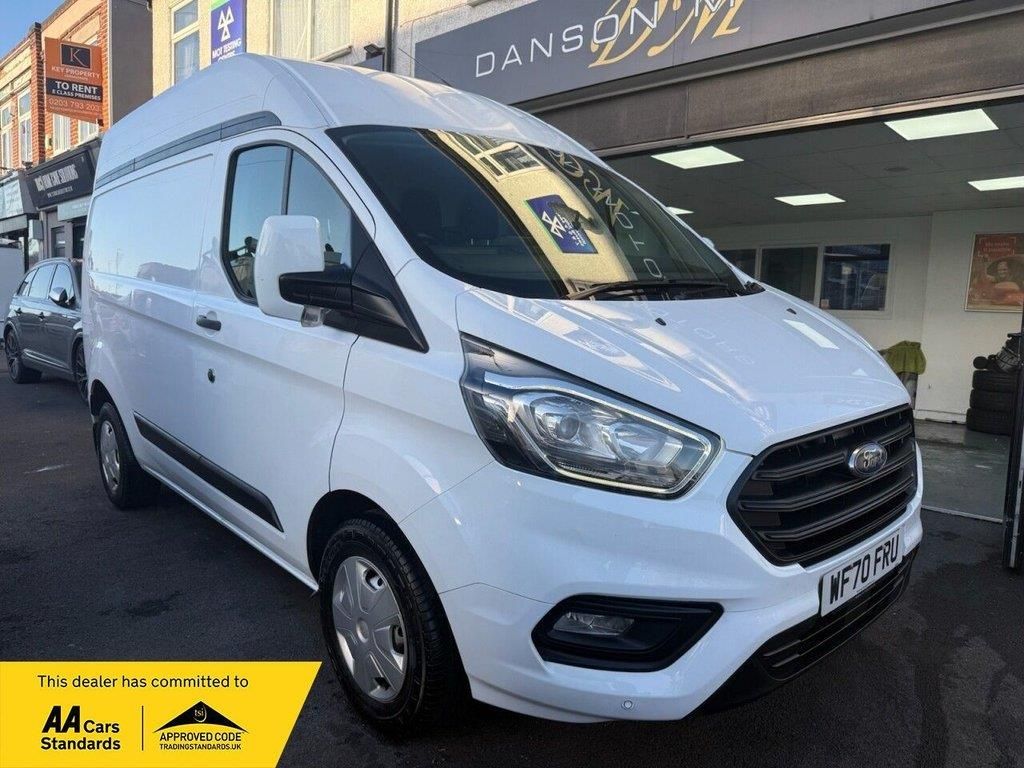 This 2020 Ford Transit Custom presents an exceptional opportunity with its remarkably low mileage of just 26,736 miles, a significant advantage for a vehicle of its age. This one owner van, a 2.0 300 EcoBlue Trend L1 H2 Euro 6 model, boasts a clear vehicle history check and an MOT valid until October 2026, offering peace of mind. The Trend trim level includes practical features such as front and rear parking aid, front fog lamps, and automatic headlights with a follow me home function, enhancing both convenience and safety during your journeys. With a generous cargo volume of 6,600 litres, this Transit Custom is perfectly suited for a wide range of commercial needs. Its Euro 6 compliant 2.0 litre diesel engine not only meets stringent emission standards but also contributes to low CO2 emissions, making it an environmentally conscious choice. The combination of its low mileage, single owner history, and comprehensive features clearly sets this Ford Transit Custom apart from other similar vehicles on the market.. 15in Steel Wheels with Half Caps,2nd Remote Key Fob,8 Way Adjustable Drivers Seat with Armrest,ABS - Anti-lock Braking System,Auto Headlamps and Rain Sensitive Wipers,Automatic Headlights - Follow Me Home,Automatic Headlights with Rain Sensing Wipers,Body Colour Front Bumper and Mirror Housing,Bulkhead - Full Steel with Load Through Hatch,Complete Rear Trim Board - Half Height,Cruise Control,Drivers Airbag,Easy Clean Load Floor,EBA - Emergency Brake Assist,Electrically-Operated Front Windows with One Touch Drivers,ESC - Electronic Stability Programme,Ford Eco Mode - Driver Information System,Halogen Projector Headlights with LED Daytime Running Lights and Adaptive Cornering Front Fog Lights,Heavy Duty Alternator,Hill Start Assist,ICE Pack 21 - SYNC3 Audio,Light Tinted Glass - ilo Privacy Glass,Load Compartment Light,Lockable Glovebox,Mini Overhead Console,Moulded Load Floor Liner,Parking Aid - Front and Rear with Front Fog Lamps,Partial Body Colour Rear Bumper,Passenger Side Sliding Load Door with Track Cover