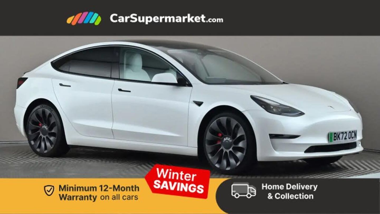 Cruise Control, Adaptive Cruise Control, Blind Spot Monitoring, Lane Departure Warning, Sat Nav, Traffic Sign Recognition, 15" Touchscreen, Digital Radio, Bluetooth, Heated Front Seats, Heated Steering Wheel, Keyless Entry, Wireless Phone Charging, 20" Alloy Wheels;This 2022 Tesla Model 3 Performance has been meticulously maintained by its single owner, with its last service completed on 10th October 2025 at 29,667 miles, and benefits from an MOT valid until September 2026. This electric vehicle boasts a substantial 82 kWh battery, offering a maximum range of 340 miles when new, and features a responsive Four Wheel Drive system. Inside, you'll find a stylish Black and White Premium Engineered Material interior, complemented by LED headlights for excellent visibility. For convenience and safety, it includes both front and rear parking sensors with parking assistance, alongside adaptive cruise control to make journeys more relaxed. The Model 3 Performance truly excels with its exhilarating acceleration, achieving 0-60mph in a remarkable 3.1 seconds, demonstrating its superior performance capabilities compared to other vehicles in its class. Charging is efficient, with a full charge at home taking approximately 12 hours using a 7kW charger, and a rapid charge to 80% possible in just 26 minutes at a public charging station. This model also offers generous boot space, making it a practical choice for everyday use and longer trips.