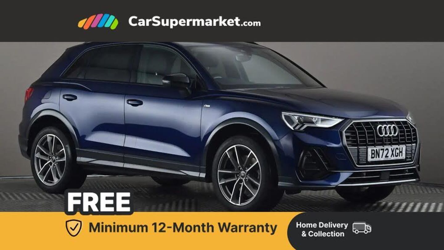 Amazon alexa Integration,Audi drive select,Audi lane departure warning,Audi Virtual Cockpit - 10.25" display,Bluetooth interface,Camera based traffic sign recognition,Legal emergency call,MMI Navigation Plus with high resolution 10.1 inch touchscreen colour display,Power operated tailgate,Progressive steering,Service interval indicator,Smartphone interface includes wireless Apple carplay/Android Auto,Start stop system with recuperation,Voice control system with natural language interaction,3 pin 10 amp domestic charging cable,3.6 kw On-board charger,Type 2 mode 3 32 amp charging cable,Type 2 socket for AC charging,2 USB-C ports with charge and data functions,6 passive loudspeakers,DAB digital radio module,Acoustic windscreen,Auto dimming frameless rear view mirror,Black roof rails,Electrically folding, adjustable and heated door mirrors with integrated LED side indicators and kerb view function for passenger side,Front and rear electric windows,Front fog lights,Grille vertical bars in aluminium silver/Matt,High gloss black finish B and C pillars,LED headlights with LED daytime running lights,LED rear lights,LED third brake light,Privacy glass dark tinted rear and rear-side windows (from B-pillar backwards),Rain and light sensors,Rear diffuser grille in grained matt black,Rear diffuser strip in matt titanium black,Rear side wing doors,Rear wiper,S line bumpers in contrasting Manhattan grey,Variable front intermittent wipers,12V socket in rear centre console,3 seat bench in 2nd row,40:20:40 folding with manual adjustment for 60:40 forwards/backwards position and backrest angle,Adjustable rear seat bench/backrest with centre armrest and cupholder,Black cloth headlining,Dual zone electronic climate control,Front and rear headrests,Front and rear roof module including reading lights,Front centre armrest,Glove compartment lighting,Height and reach adjustable steering wheel,Illuminated door sill trims with S logo,ISOFIX child seat mounting for front passenger with airbag deactivation and outer rear seat including top tether attachment point for outer rear seats,Luggage compartment light,Manual front seats with height adjustment,Perforated leather gearknob,Single front passenger seat,Stainless steel luggage compartment sill finisher,Stainless steel pedals,Black styling pack - Q3,Non smoking pack - Q3,3x3 point rear seatbelts,6 airbags - Driver, front passenger, curtain and side windows,Audi pre-sense front with pedestrain and cyclist recognition,Electromechanical parking brake,Electronic stabilisation control including ABS, ASR and EDL,Front seatbelt reminder,Hill descent control,Hill hold assist,Manual child lock in rear doors,Pre sense basic,Seatbelt monitoring,Tyre pressure warning,Warning triangle and first aid kit,Anti theft alarm,Anti theft wheel bolts,Immobiliser,Remote central locking,Detail dashboard around MMI touch colour display in glass look, black with surround in aluminium look,Leatherette door armrest,Piano black inlay,Tool kit,Tyre repair kit