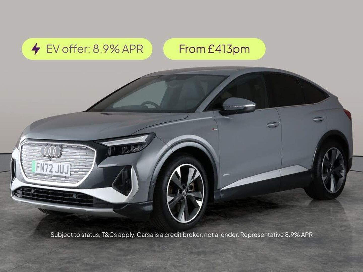 Experience the thrill of electric driving with this stylish grey Audi Q4 E-tron Sportback. Enjoy the immersive upgraded sound system, crisp LED headlights, and a suite of high-tech features including MMI Navigation Plus, Audi Virtual Cockpit, and a reversing camera for effortless parking. Sink into heated, S-Line embossed sport seats, connect seamlessly with Apple CarPlay, and drive with confidence thanks to adaptive cruise control and lane departure warning. A sophisticated, sporty SUV ready for your next adventure. 1 service recorded, last serviced on 25/09/2024 at 25,084 miles. MOT to 12/10/2026. Visit our website for service history, online valuation, full vehicle specification plus multiple images. Certain features listed may be available via subscription packages at extra costs, please consult with Audi for details. This vehicle is VAT qualifying. Any feature/option specified here is from 3rd party data. We cannot guarantee the accuracy of any specification supplied by a 3rd party. We recommend that you physically check the specification of the vehicle on site prior to purchase. This information does not form part of the buying contract. Terms & Conditions apply. We have over 2,000 cars available from our 10 national branches, check our website to see all our stock. Our Trustpilot rating is 4.4/5 with over 9,000 reviews.