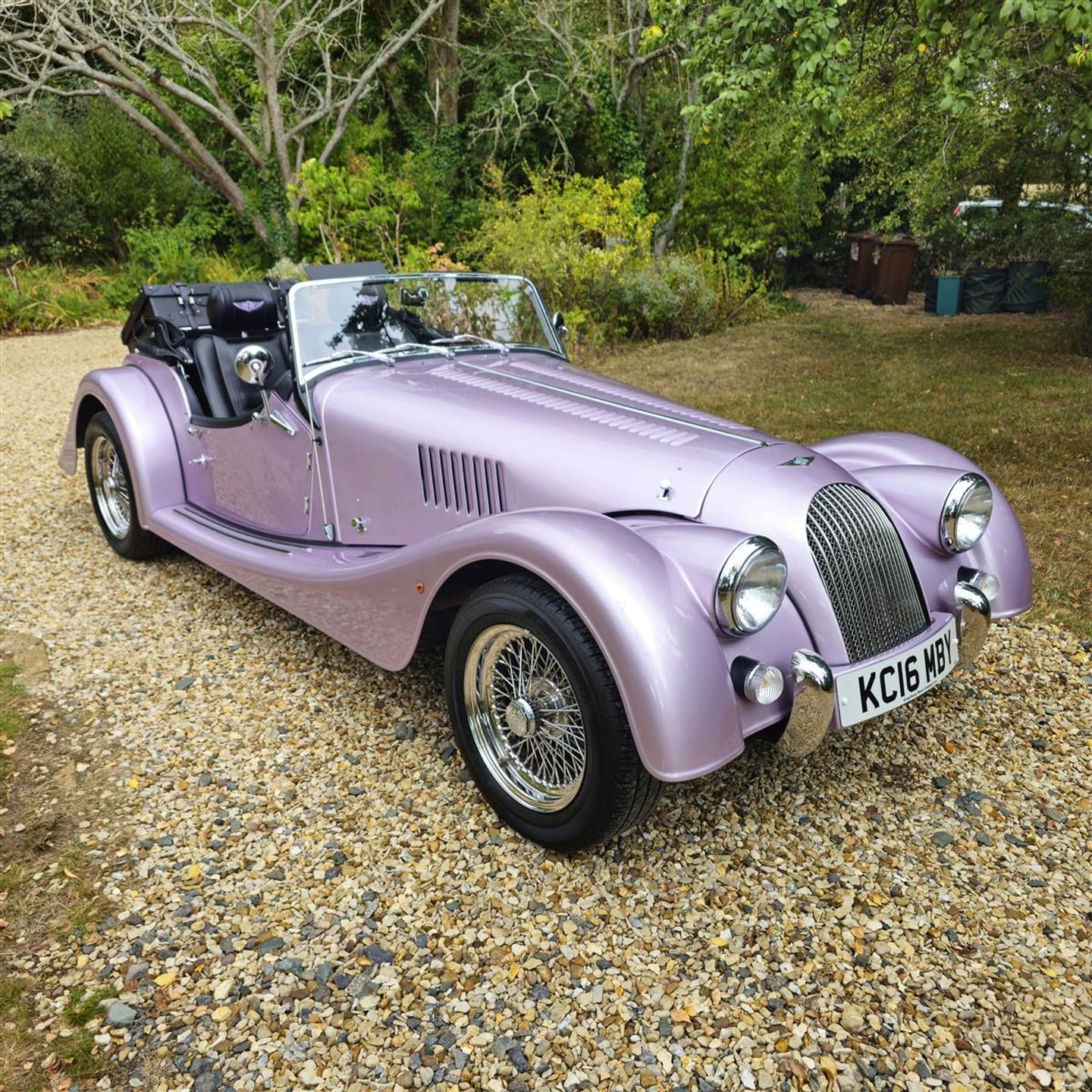 Power steering, chrome wire wheels, chrome over riders, Morgan supplied luggage , black mohair hood and tonneau cover, side screens, sports exhaust, Performance black leather seats, colour matched Morgan logo embossed head restraints, leather sports steering wheel, colour coded dashboard, black carpets, elasticated door pockets, heated windscreen and radio CD player.