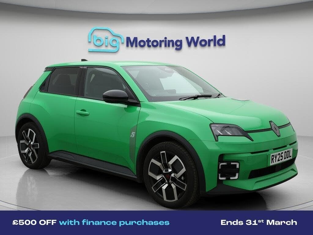 18'' alloy wheels,Apple CarPlay-Our Renault 5 E-Tech electric is finished in Green. Specification includes a range of fantastic features including 18'' alloy wheels, Apple CarPlay, Adaptive Cruise Control, Lane Assist, Android Auto, Privacy Glass, Rear View Camera, Internet, Bluetooth, Parking Sensors Specification information is supplied by CAPHPI and may vary to the actual car. This data does not form any part of a buying contact. Please check specification prior to purchase in-store. The MOT is valid until August 2028, visit bigmotoringworld.co.uk for more photos, a 360 tour, service history and a free HPI report.Were BIG on peace of mind and this Green Renault 5 E-Tech electric has completed our comprehensive 200 point inspection and passed all checks. Its ready for you to drive away with immediate collection in-store. We include a 90-day warranty as standard plus an option to extend for up to 3 years.Reserve this car exclusively for you, safely and securely at bigmotoringworld.co.uk, with a fully refundable £99 deposit. Test drive before you buy, with no commitment, no hassle and a completely haggle free experience. Still searching and want to see thousands more cars? We are BIG on choice with over 8000 cars to choose from.Visit our award winning web site bigmotoringworld.co.uk.Were Big Motoring World and were BIG on what matters to you.