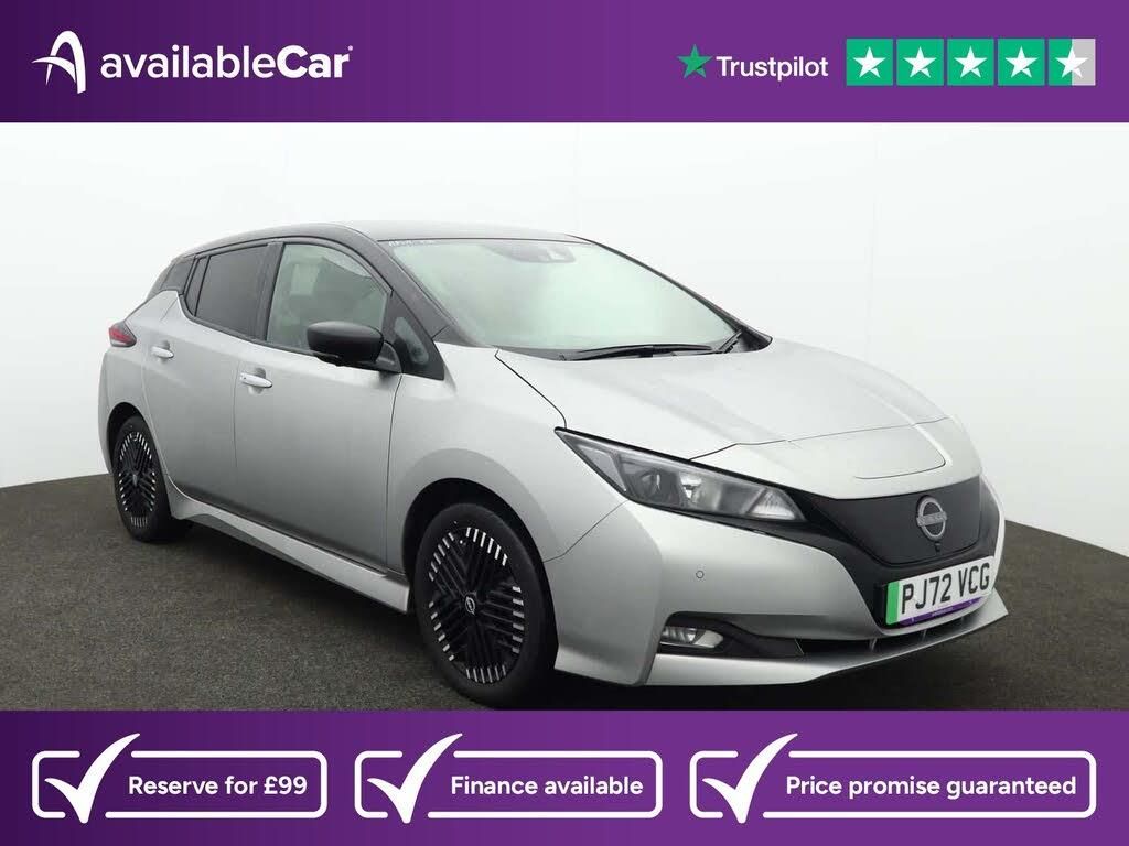 17in Alloy Wheels - Black Diamond Cut,50kW CHAdeMO Quick Charger,6 Airbags,6.6kW AC On Board Charger,6m Type 2 Cable,7in Combimeter,8in Colour Display with Touch Screen,ABS with EBD and Brake Assist,Alarm - Thatcham,Android Auto and Apple CarPlay,Audio System with 6 Speakers,Auto Dimming Rear View Mirror,Auto Hazard Lights,Automatic Climate Control with Pollen Filter and Timer,Blind Spot Intervention,Bluetooth with Audio Streaming,Body Coloured Door Mirrors,Charging Port Remote Opening,Digital Radio - DAB,Door Handles - Chrome,E-Pedal,ESP - Electronic Stability Programme,EV Connect Telematics System,Electric Power Steering,Electrically Driven Intelligent Braking System,Energy-Saving Cabin Heating System with Heat Pump,Front Electric Windows,Front Fog Lights,Headlights - Follow Me Home Function,Headlights - High Beam Assist,Heat Pack,Hill Start Assist,ISOFIX on Rear,Illuminated Charge Port,Immobiliser,Integrated Turn Signals in Mirrors,Intelligent Auto Headlights,Intelligent Cruise Control,Intelligent Emergency Braking with Pedestrian Recognition,Intelligent Key with Start Push Button,Intelligent Lane Intervention,Intelligent Ride Control,Intelligent Trace Control,LED Signature Daytime Running Lights,LED Signature Tail Lights,Lane Departure Warning,Leather Steering Wheel,MacPherson Strut Front Suspension and Twist Beam Axle Rear Suspension,Multifunctional Steering Wheel,Navigation System with Voice Control,NissanConnect Services App,Rain Sensing Windscreen Wipers,Rear Bumper Finisher - Grey,Rear Cross Traffic Alert,Rear Door Child Locks,Rear Privacy Glass,Rear USB Ports,Remote Central Locking with Deadlocking,Roof Spoiler - Aero,Shark Fin Antenna,Speed Limiter,TPMS - Tyre Pressure Monitoring System,Tech Pack,Telescopic Steering Wheel Adjustment,USB Port