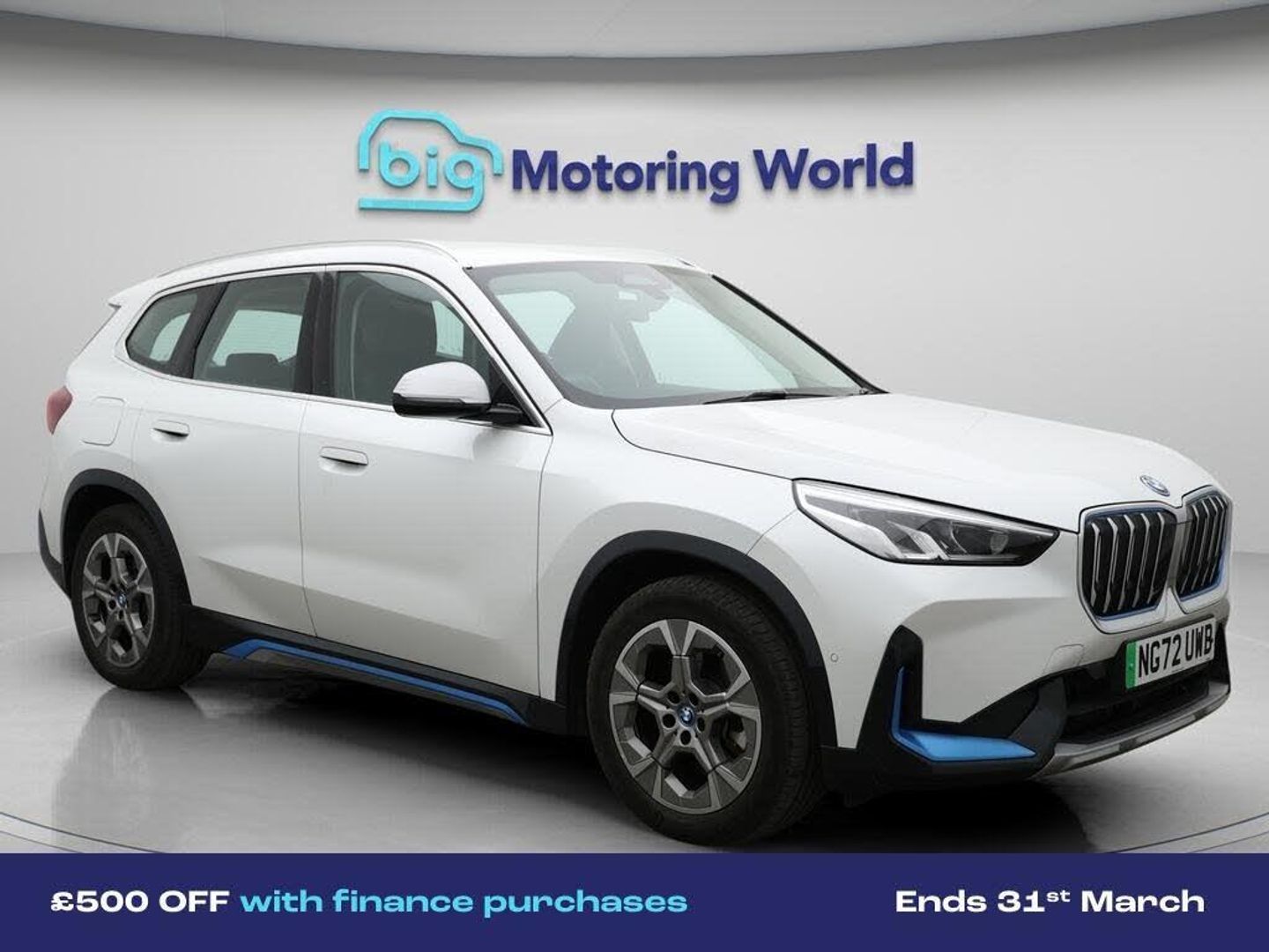 £500 towards your finance depo-Our BMW iX1 is finished in White. Specification includes a range of fantastic features including £500 towards your finance deposit, All Wheel Drive, Leather Seats, Apple CarPlay, Android Auto, Satellite Navigation, Heated Seats, Rear View Camera, Bluetooth, Parking Sensors Specification information is supplied by CAPHPI and may vary to the actual car. This data does not form any part of a buying contact. Please check specification prior to purchase in-store. The MOT is valid until December 2026, visit bigmotoringworld.co.uk for more photos, a 360 tour, service history and a free HPI report.Were BIG on peace of mind and this White BMW iX1 has completed our comprehensive 200 point inspection and passed all checks. Its ready for you to drive away with immediate collection in-store. We include a 90-day warranty as standard plus an option to extend for up to 3 years.Reserve this car exclusively for you, safely and securely at bigmotoringworld.co.uk, with a fully refundable £99 deposit. Test drive before you buy, with no commitment, no hassle and a completely haggle free experience. Still searching and want to see thousands more cars? We are BIG on choice with over 8000 cars to choose from.Visit our award winning web site bigmotoringworld.co.uk.Were Big Motoring World and were BIG on what matters to you.